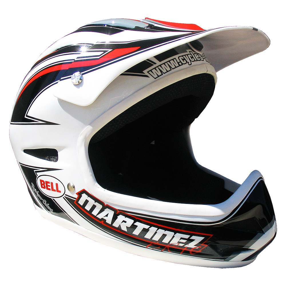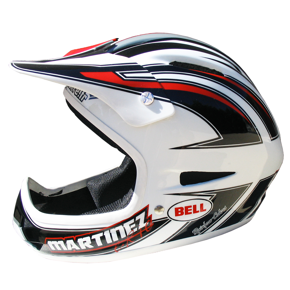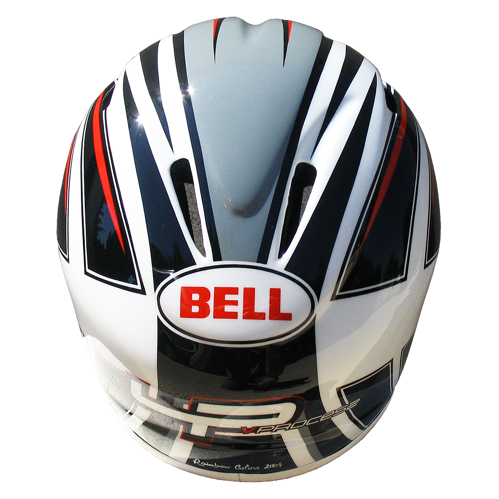 Descente VTT 2004 Eric MARTINEZ Casque de descente Bell bellistic, peint par Christian Roux / Rainbow Colors en 2004 pour Eric Martinez Team Lapierre. Précédent Suivant