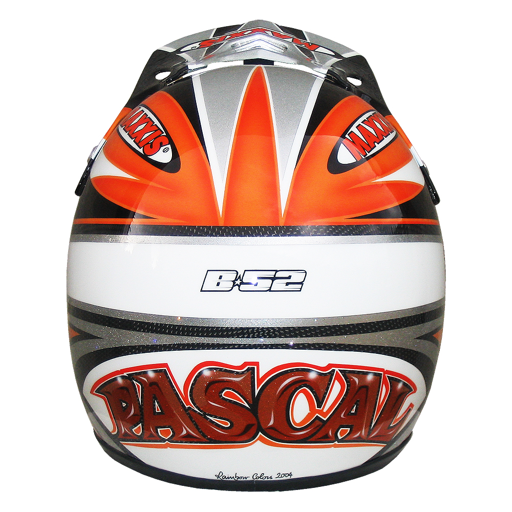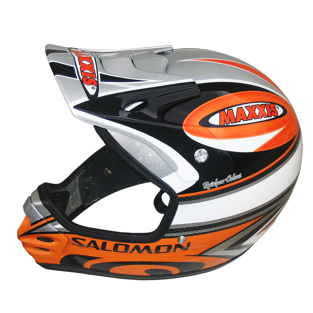 Descente VTT 2004 Mickaël PASCAL Casque de descente B 52 DH, crée et peint par Christian Roux / Rainbow Colors en 2004 pour Mickaël Pascal Team Salomon Maxxis MSC. Précédent Suivant