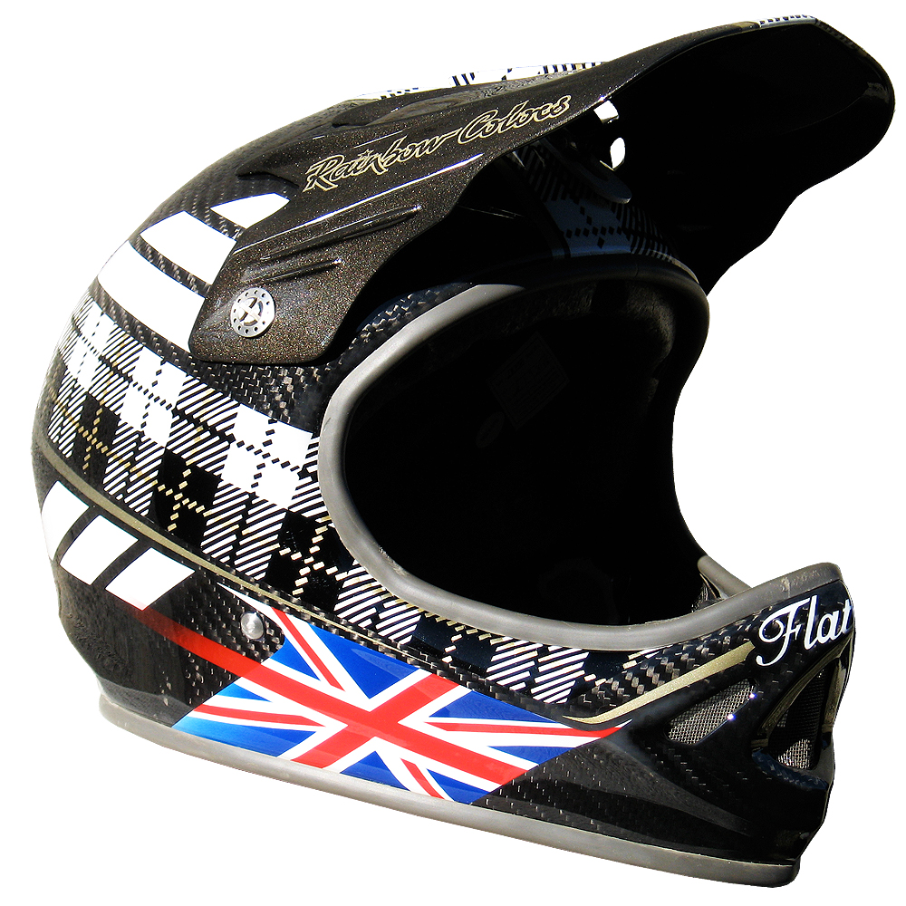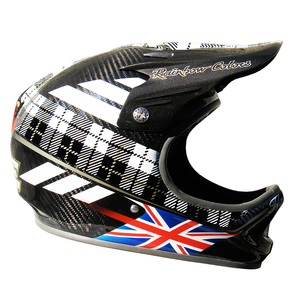 Descente VTT 2008 Jules GRIMALDI Casque de descente VTT D2 Troy Lee designs, crée et peint par Christian Roux / Rainbow Colors en 2008 pour Jules Grimaldi. Précédent Suivant