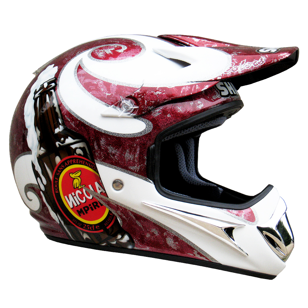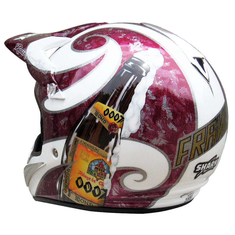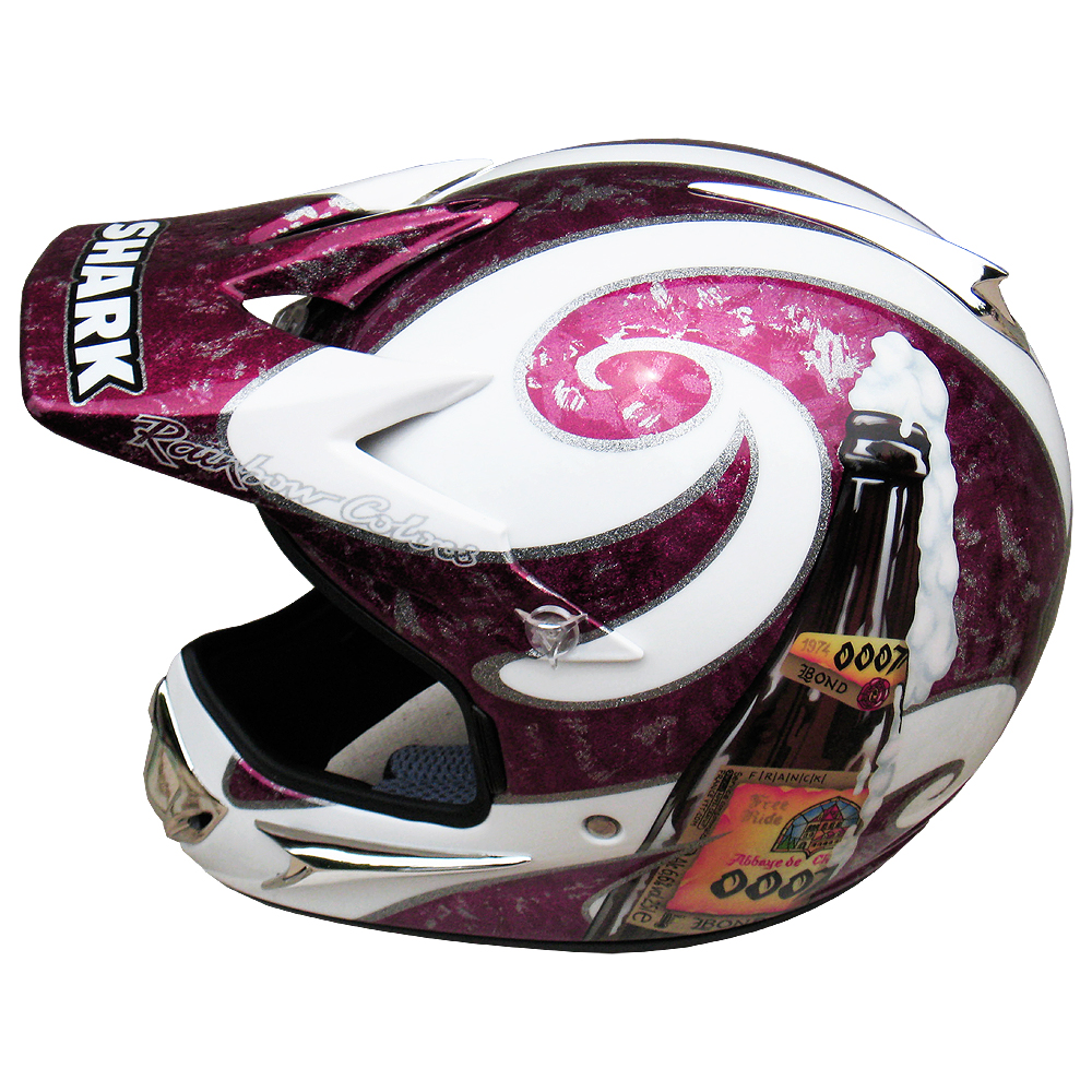 Descente VTT 2008 Franck LEGALL Casque de moto cross Shark MXR, crée et peint par Christian Roux / Rainbow Colors en 2008 pour Franck Legall. Précédent Suivant