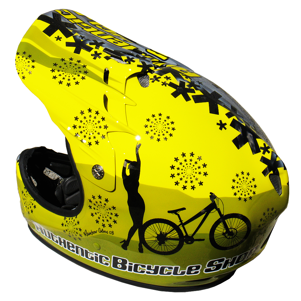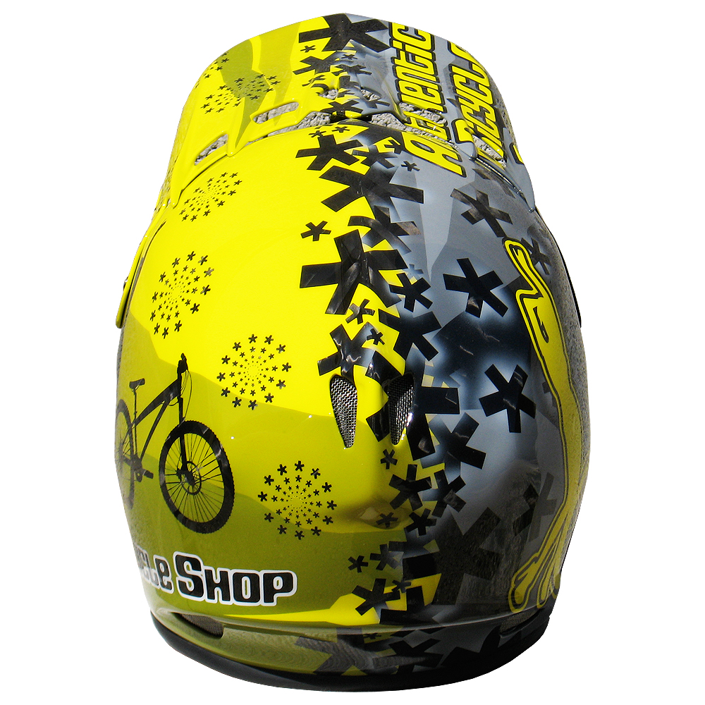 Descente VTT 2008 Romain LILLAZ Casque de descente VTT D2 Troy Lee designs,crée et peint par Christian Roux / Rainbow Colors en 2008 pour Romain Lillaz Authentic Bicycle shop. Précédent Suivant