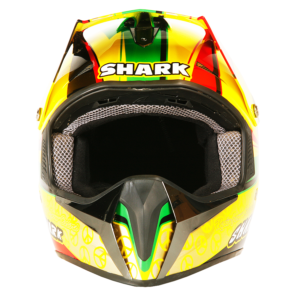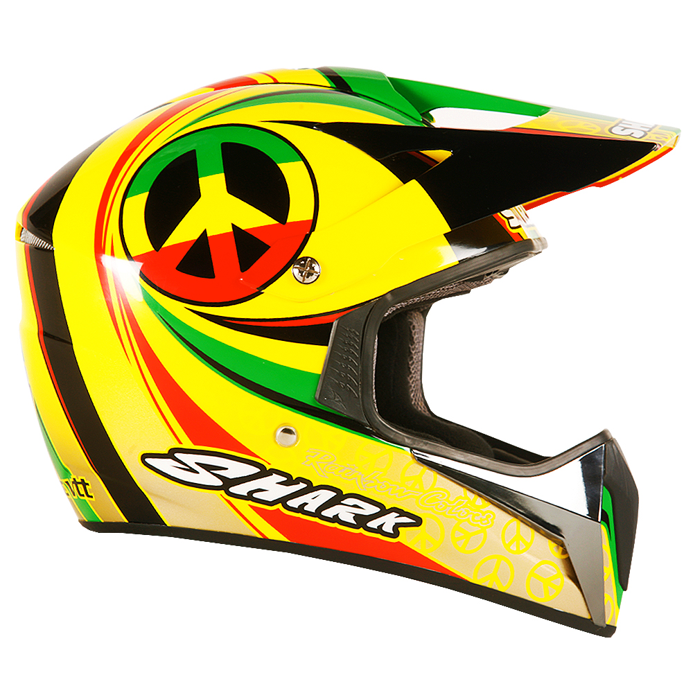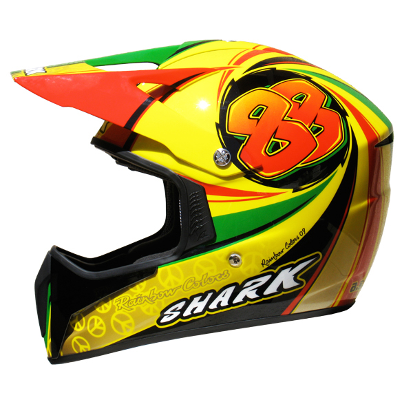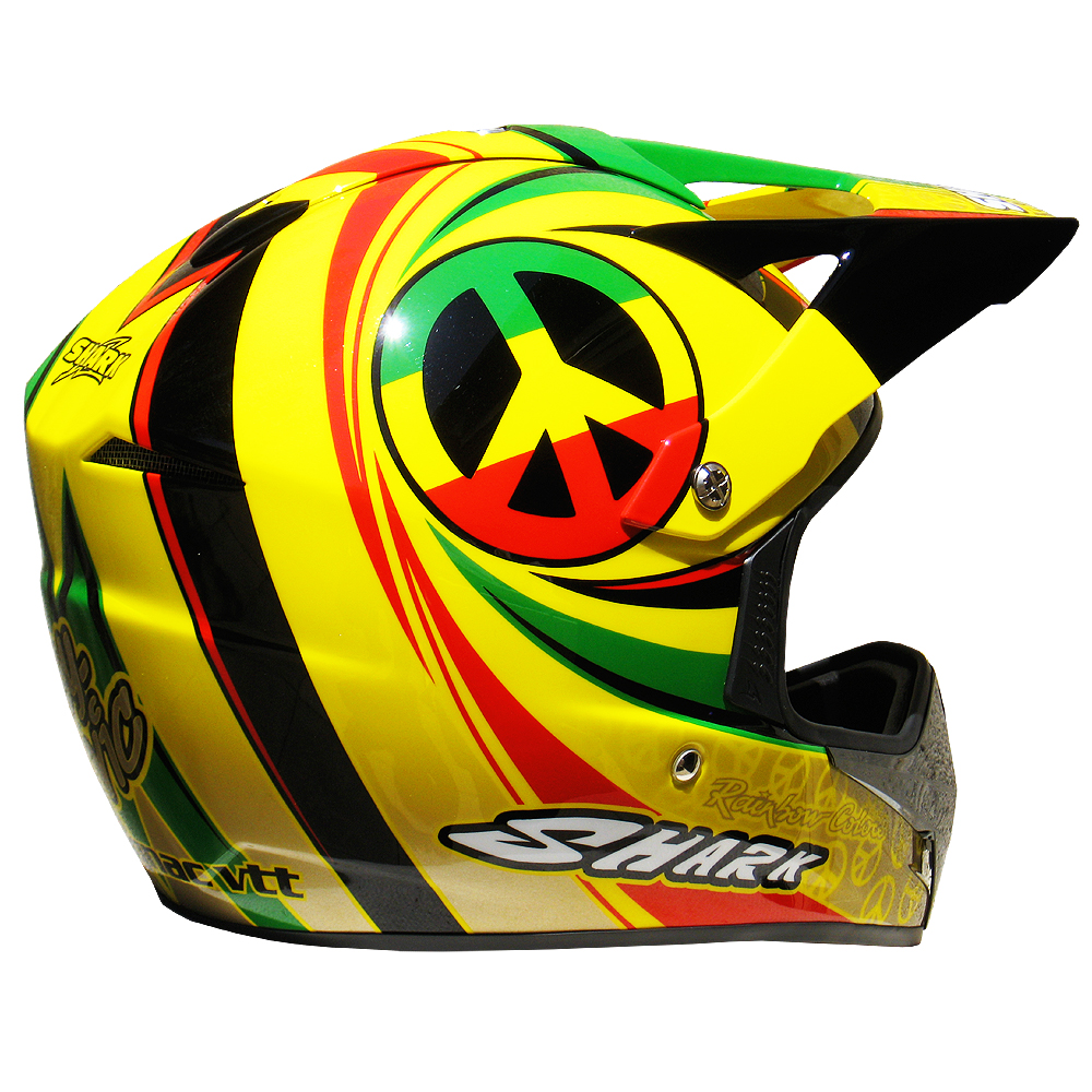 Descente VTT 2009 Victor ROUX Casque de moto cross Shark SXR, crée et peint par Christian Roux / Rainbow Colors en 2009 pour Victor Roux / Fly-vic. Précédent Suivant