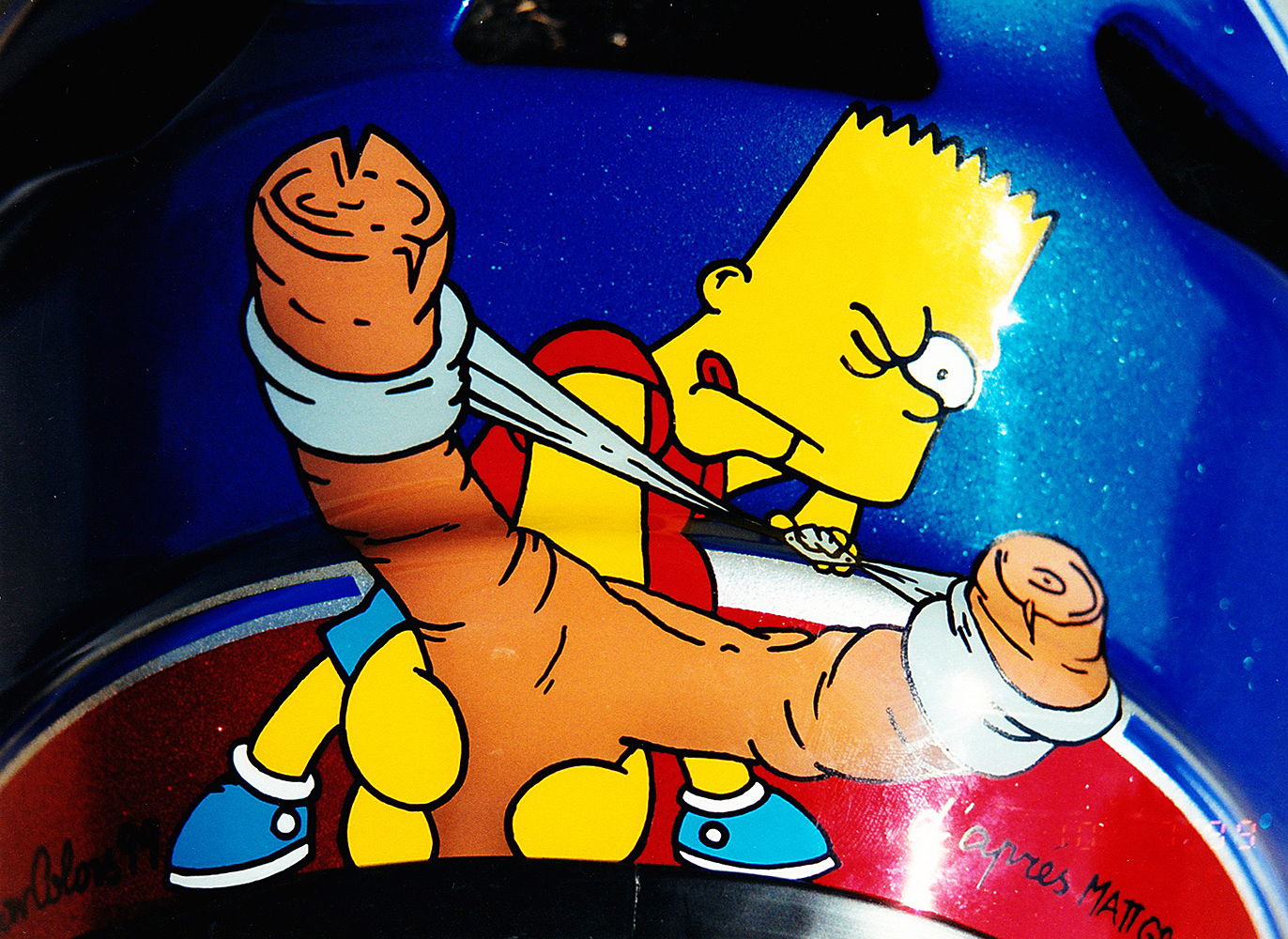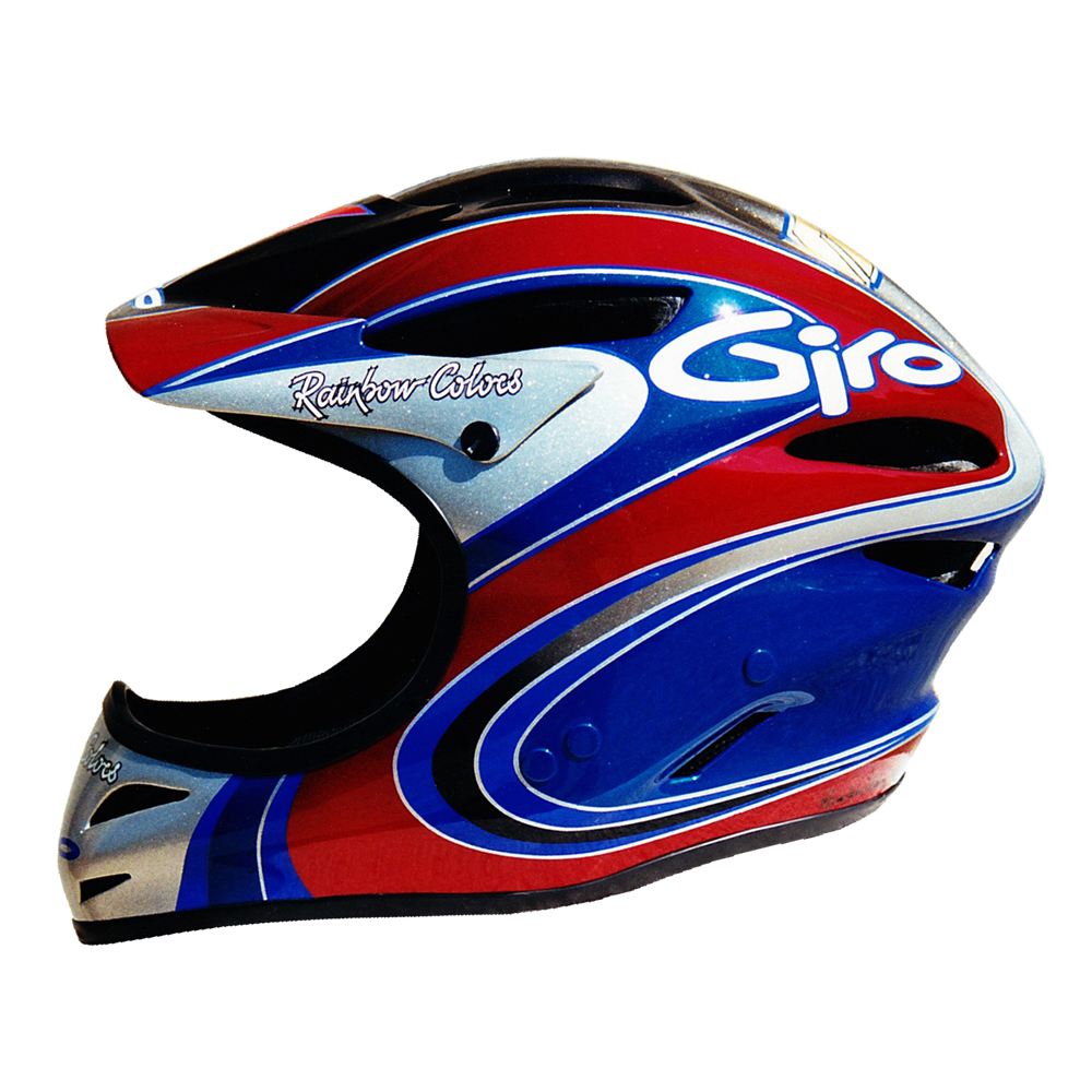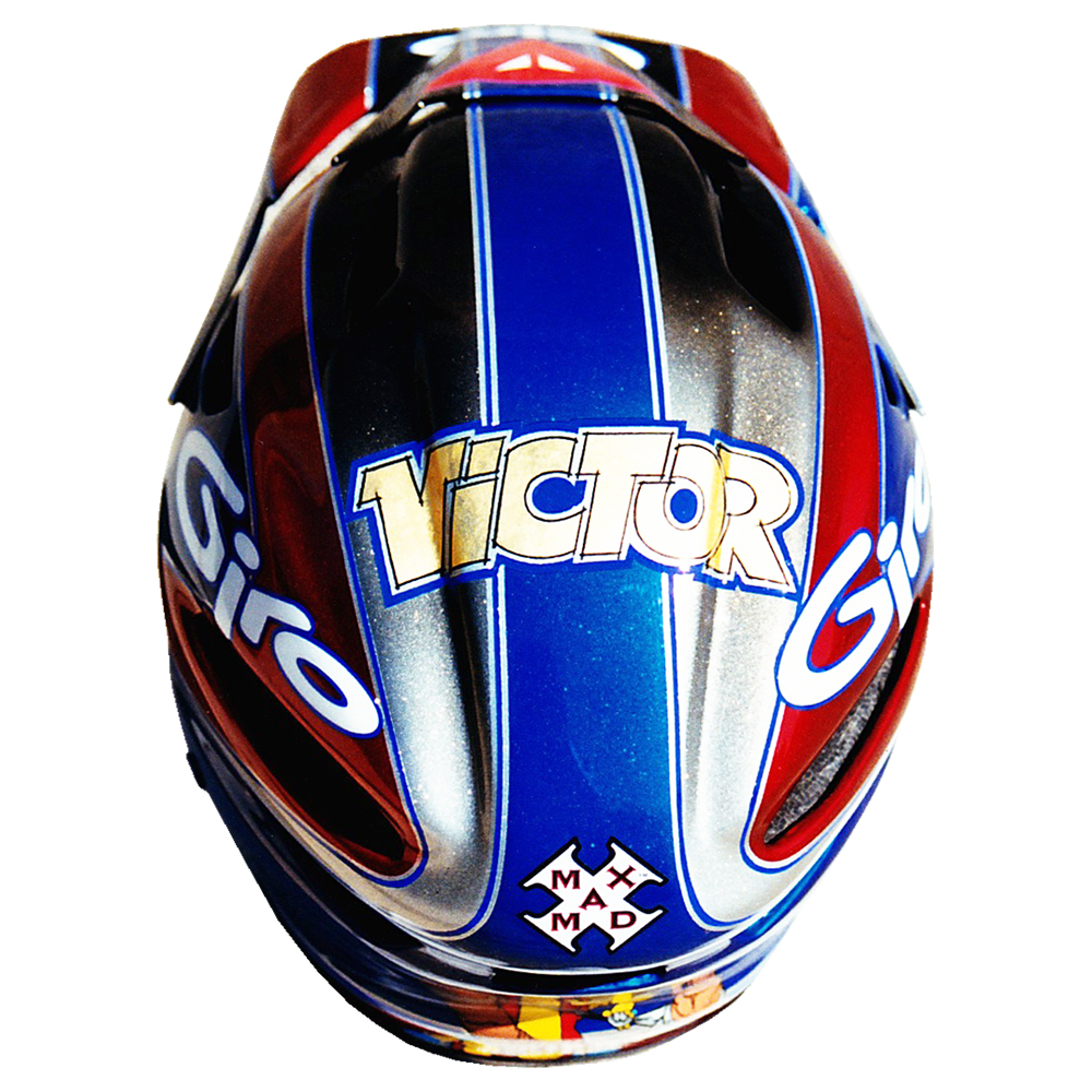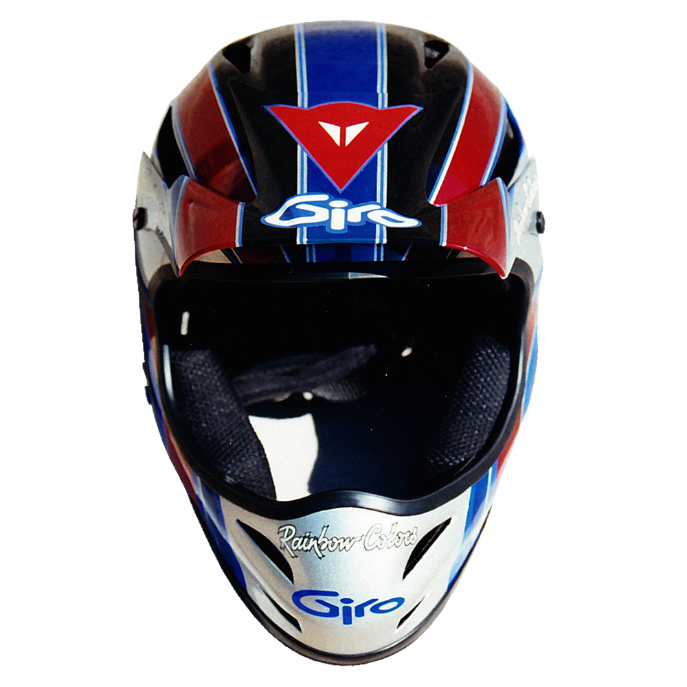 Descente VTT 1999 Victor ROUX Casque de descente VTT Giro Mad Max, crée et peint par Christian Roux / Rainbow Colors en 1999 pour Victor Roux / Fly-vic. Précédent Suivant