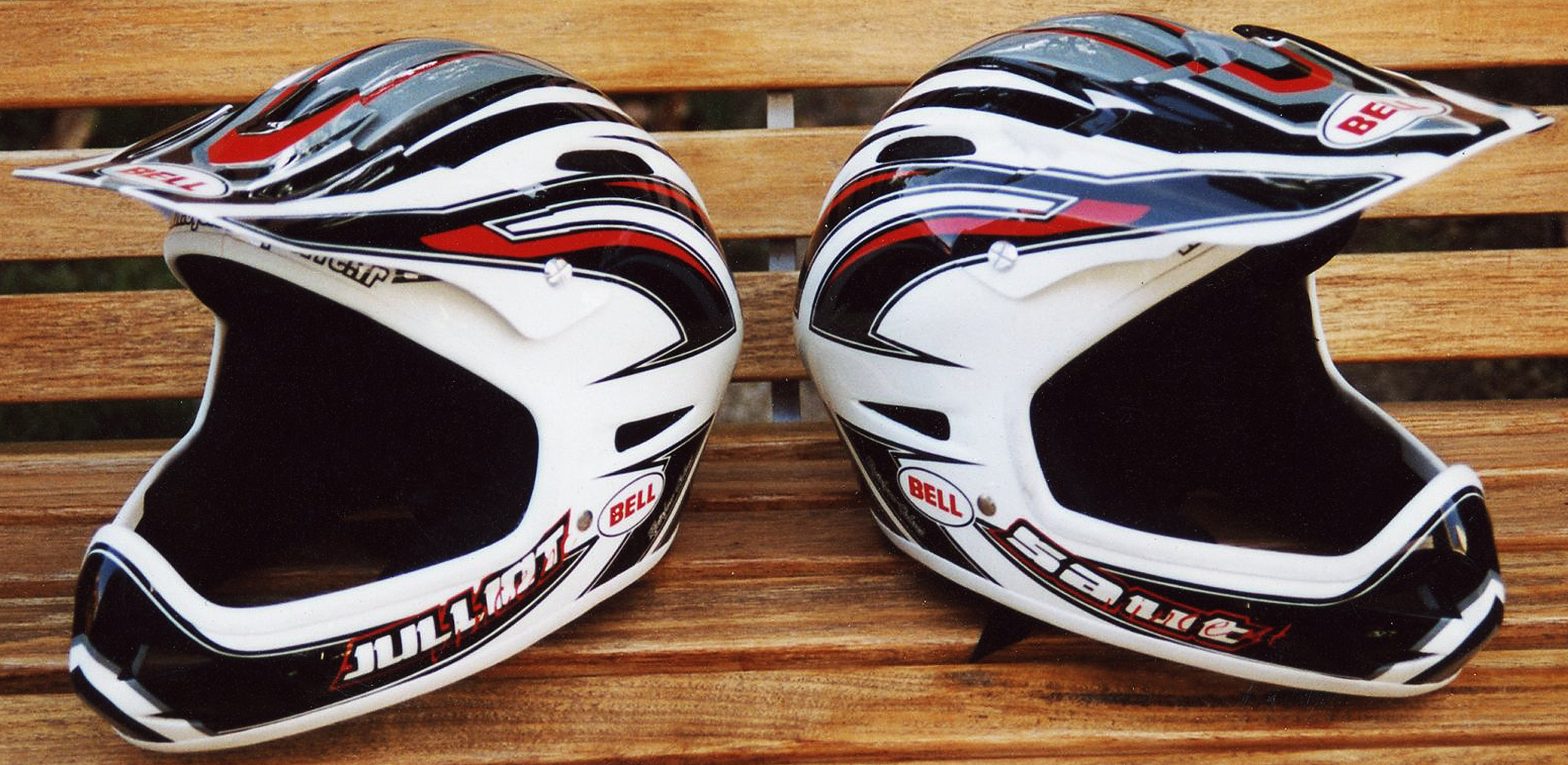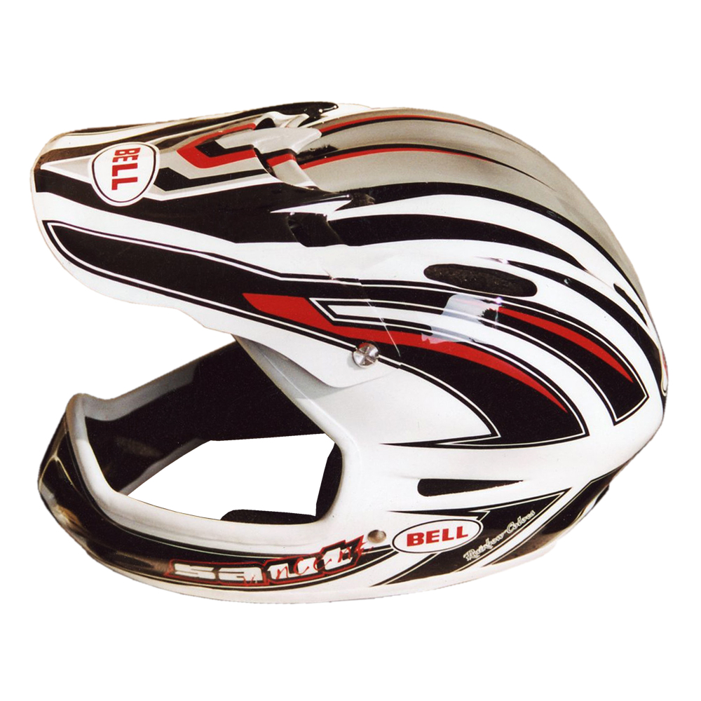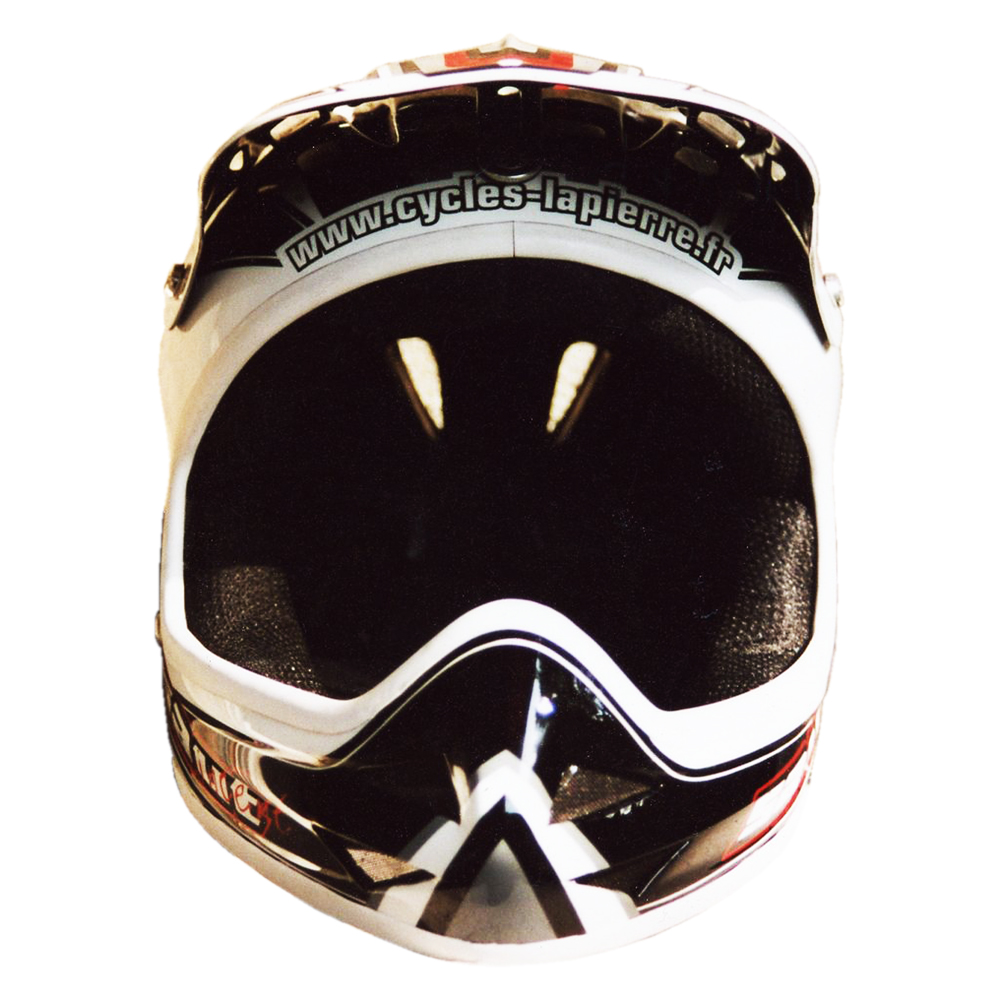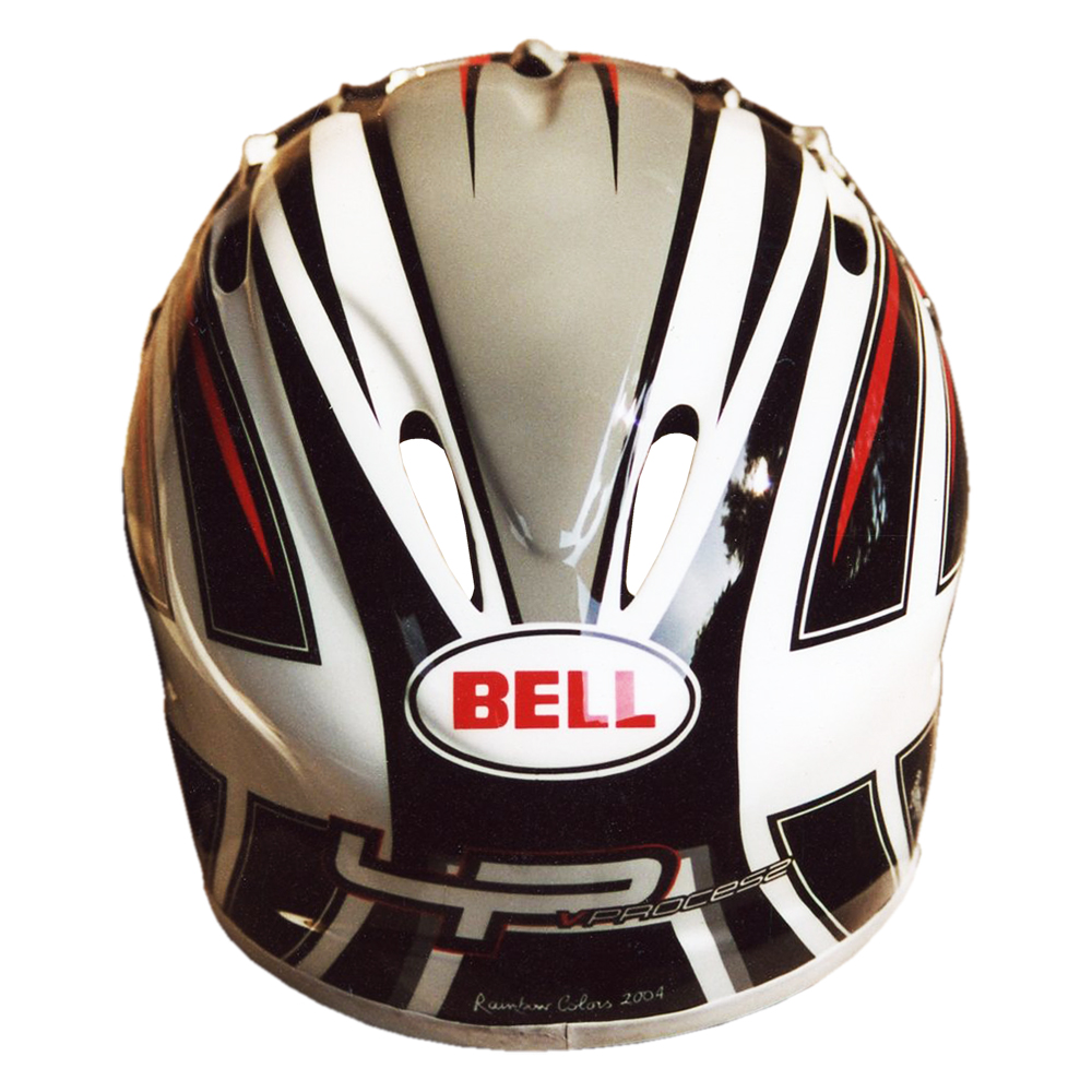 Descente VTT 2004 Vincent SAUT Casque de descente Bell Bellistic, peint par Christian Roux / Rainbow Colors en 2004 pour Vincent Saut Team Lapierre. Précédent Suivant