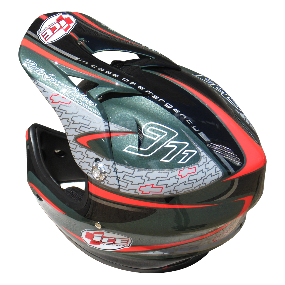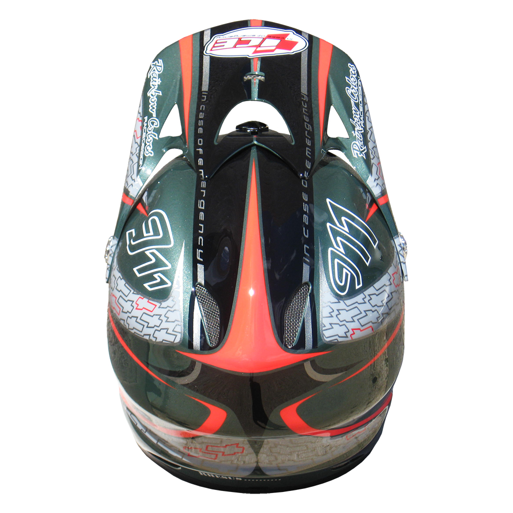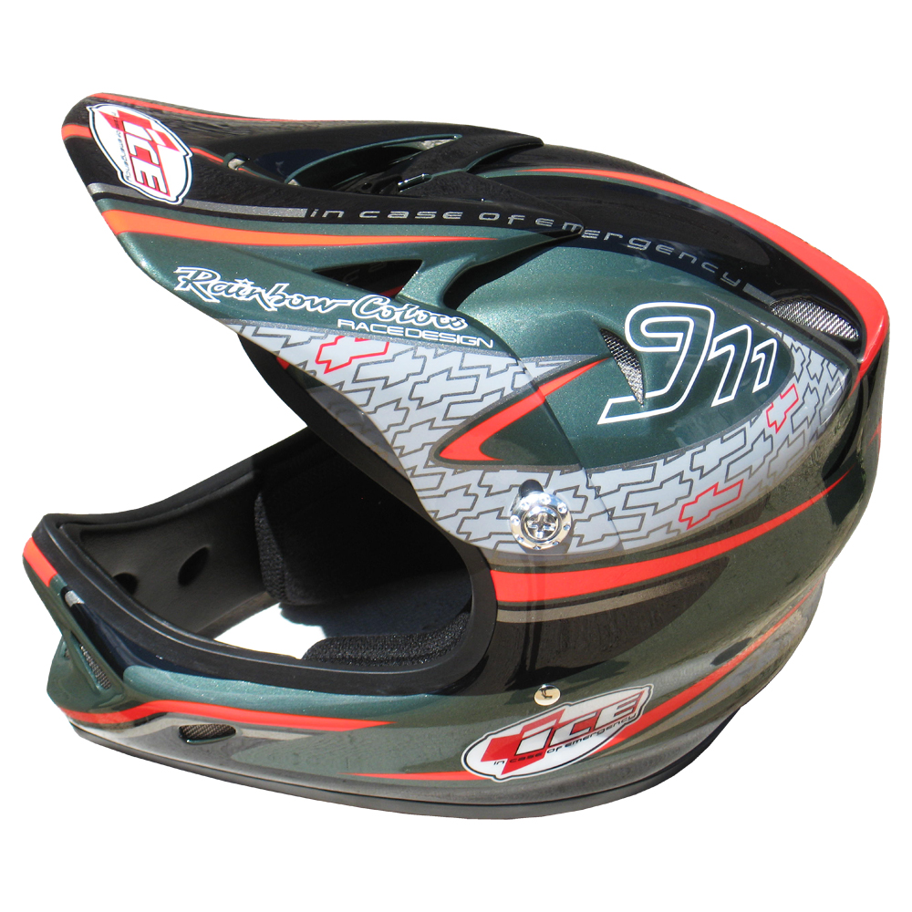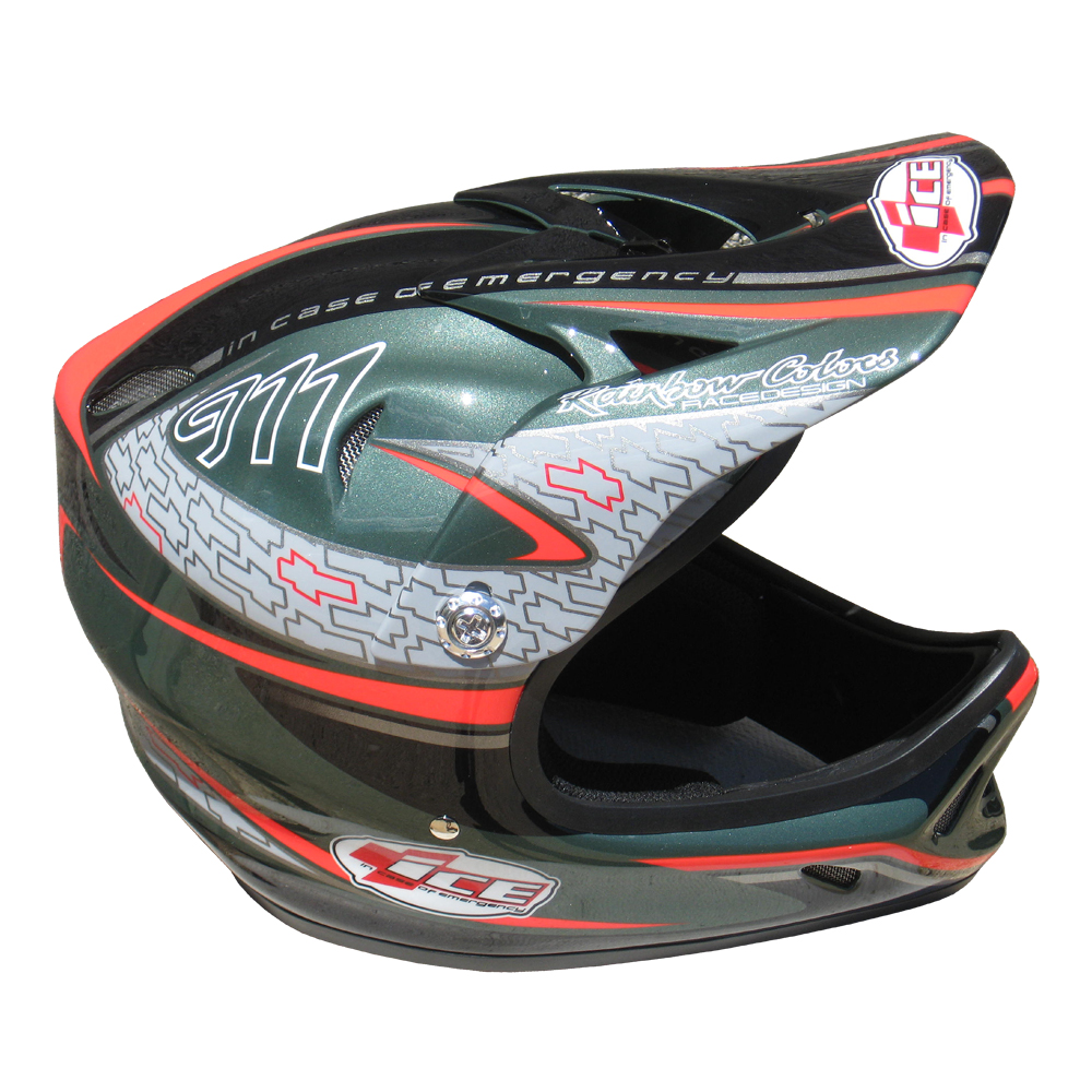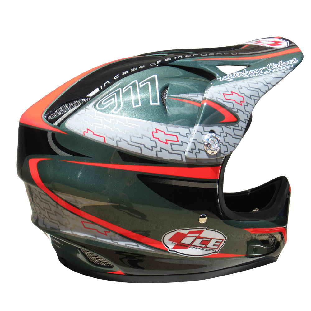 Descente VTT 2010 ICE 911 Casque de descente VTT ICE 911 prototype vert, crée et peint par Christian Roux / Rainbow Colors en 2010 pour MTBL parts. Précédent Suivant