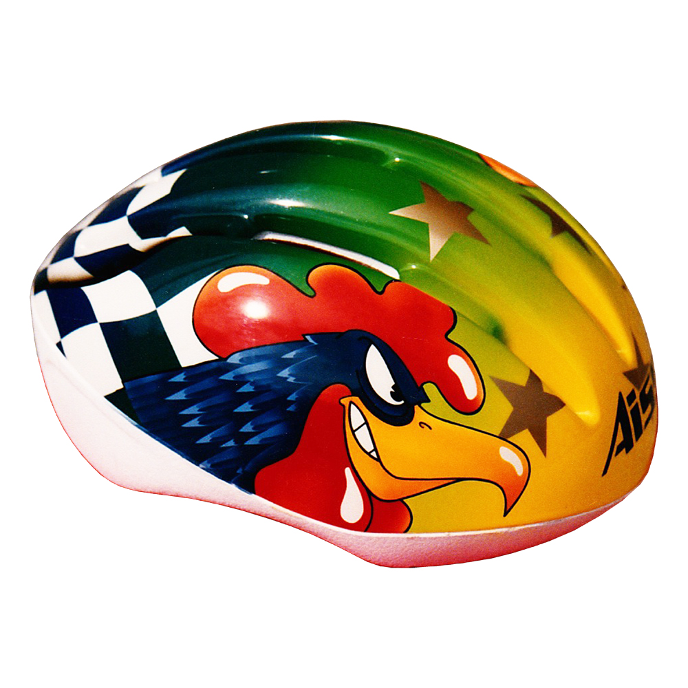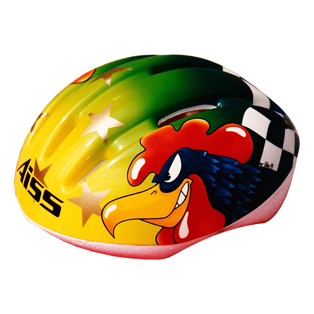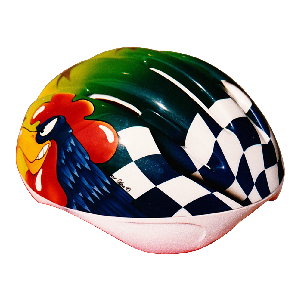 Route et X-Country 1993 Projet AISS Coq #1 Casque vélo AISS, crée et peint par Christian Roux / Rainbow Colors en 1993, projet pour Jacques Marques. Précédent Suivant