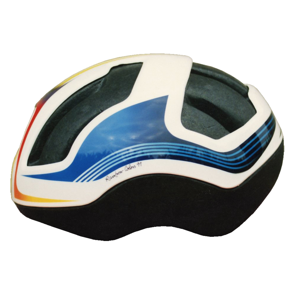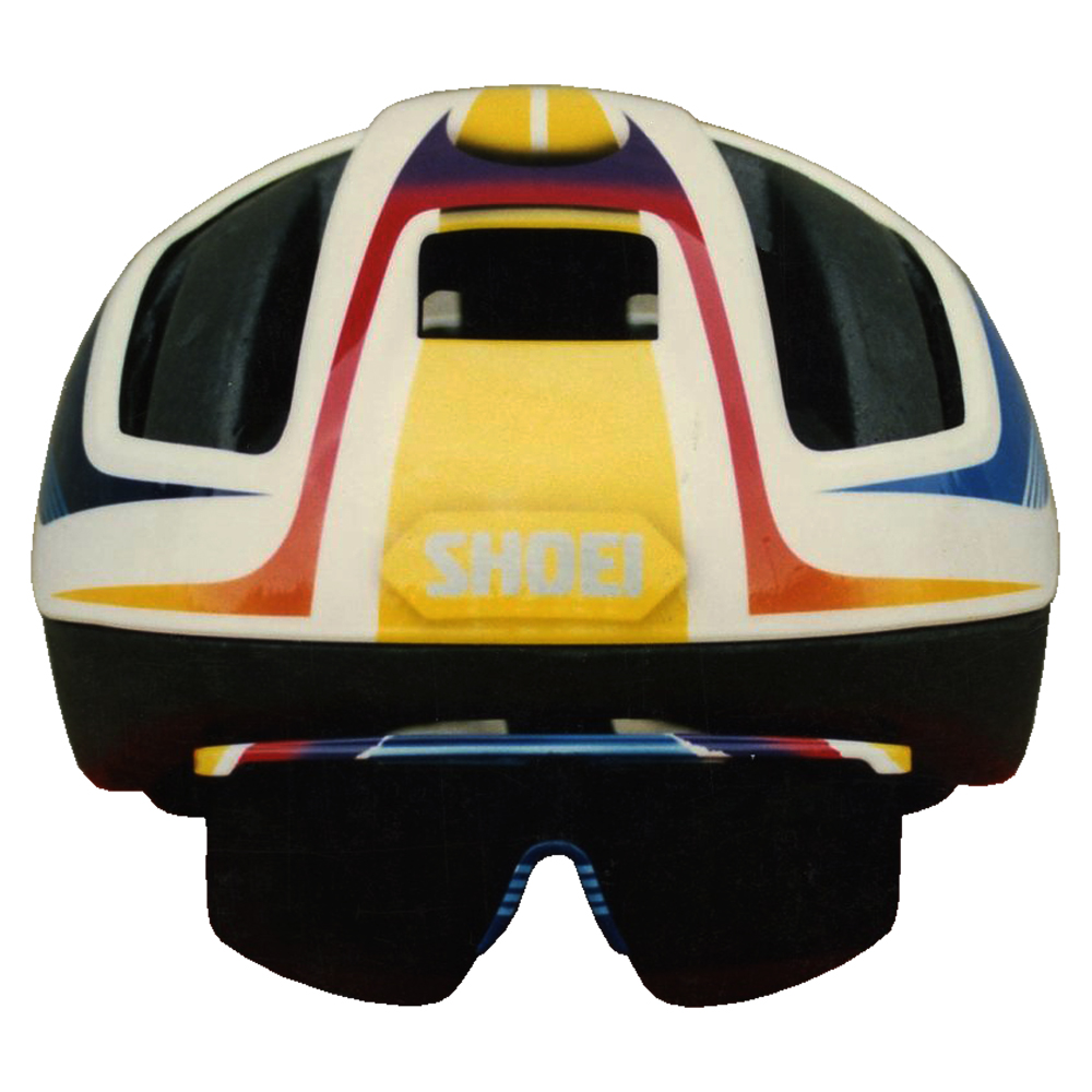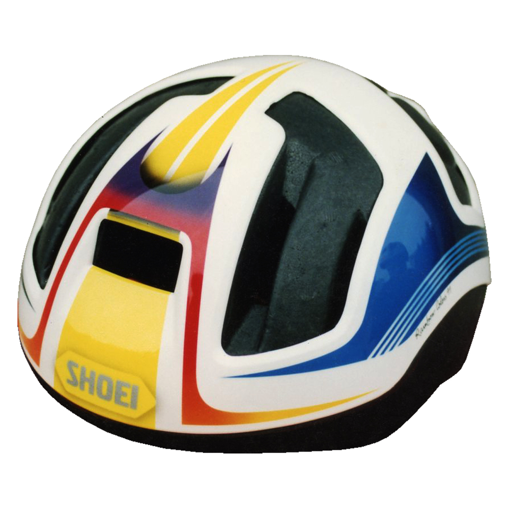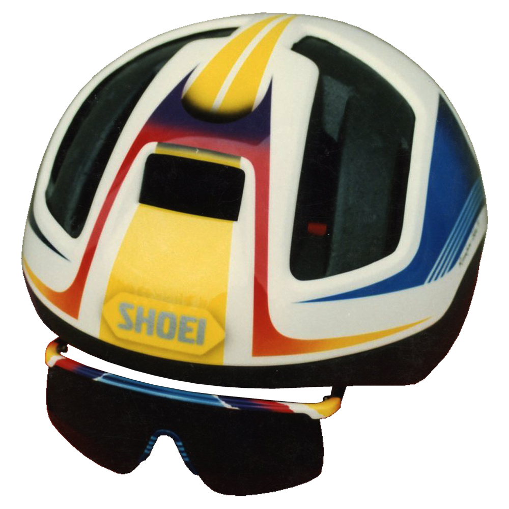 Route et X-Country 1991 Baptiste Roux Casque Shoei RC 5, crée et peint par Christian Roux / Rainbow Colors en 1991 pour Baptiste Roux, Team Rainbow Colors. Précédent
