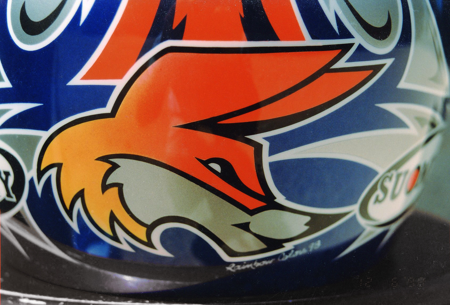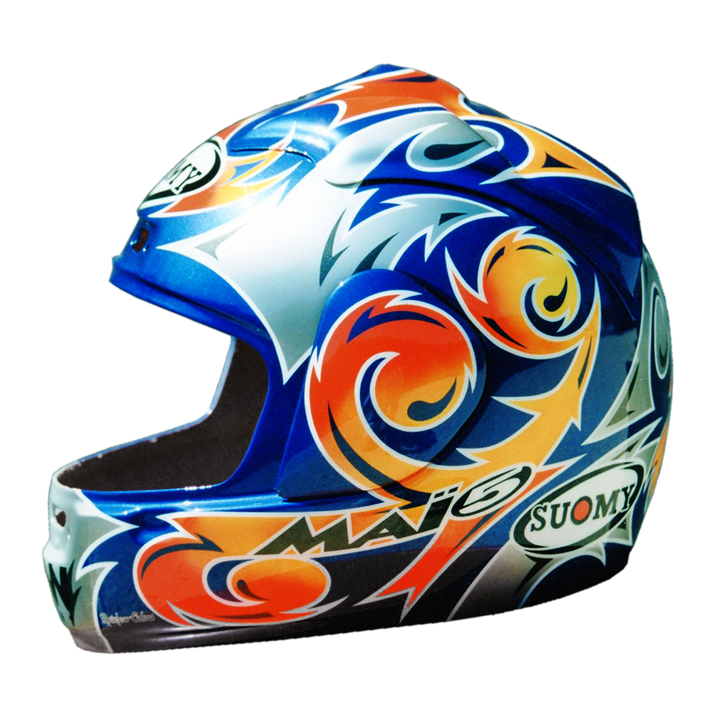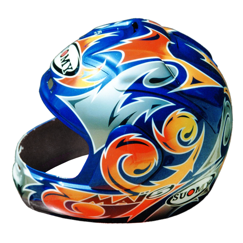 Circuit 1998 Massimo “Maio“ MEREGALLI #4 Casque Suomy, peint par Christian Roux / Rainbow Colors en 1998 pour Maio Meregalli, Team Belgarda Yamaha, 5ème Championnat du Monde Supersport. Précédent Suivant