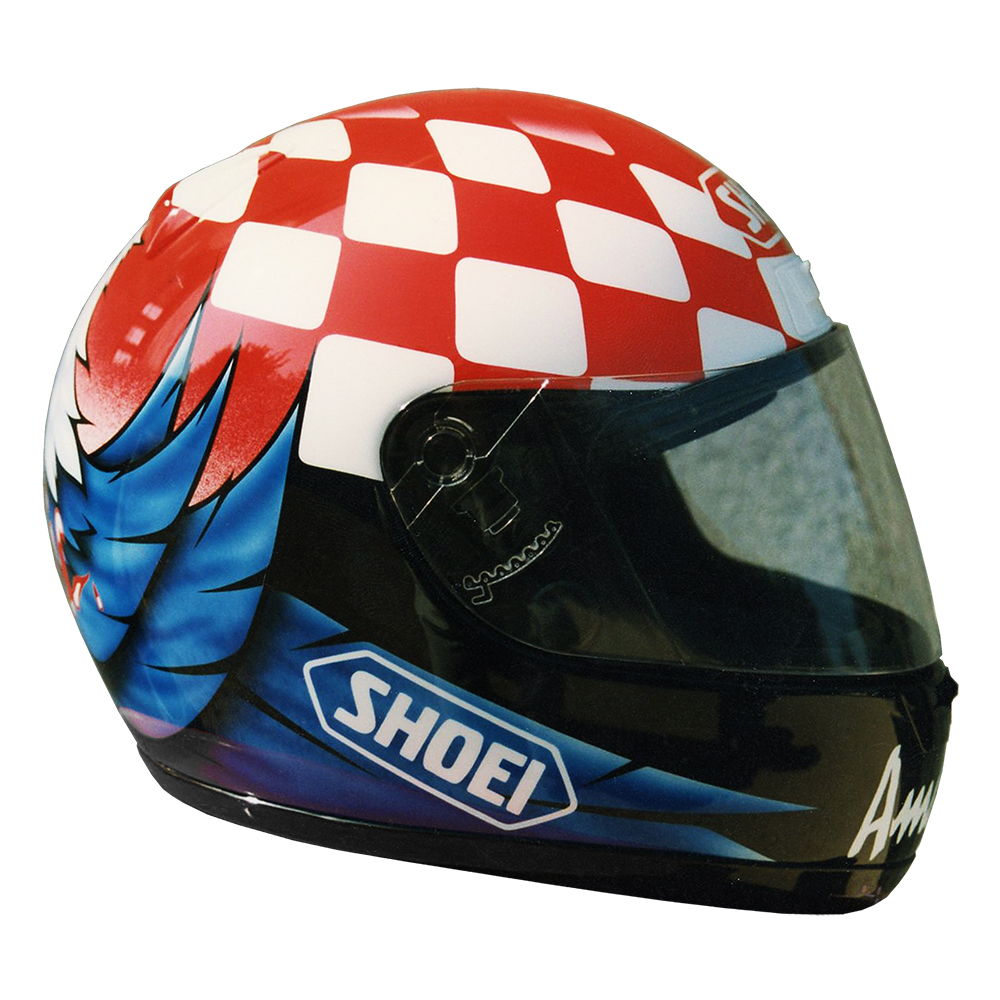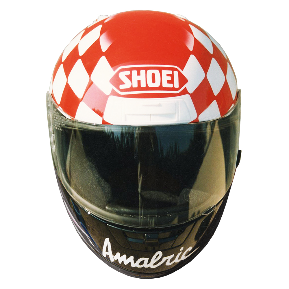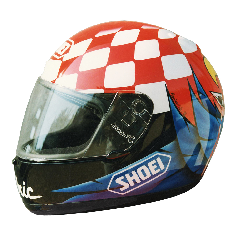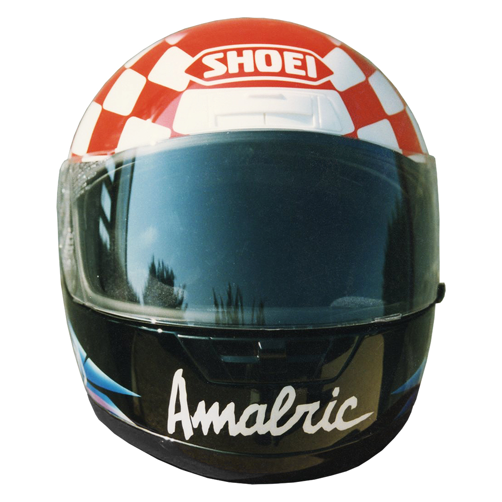 Circuit 1996 Michel AMALRIC #1 Casque Shoei X8 R, crée et peint par Christian Roux / Rainbow Colors en 1995 pour Michel Amalric, Honda, Championnat du Monde d'Endurance. Précédent Suivant