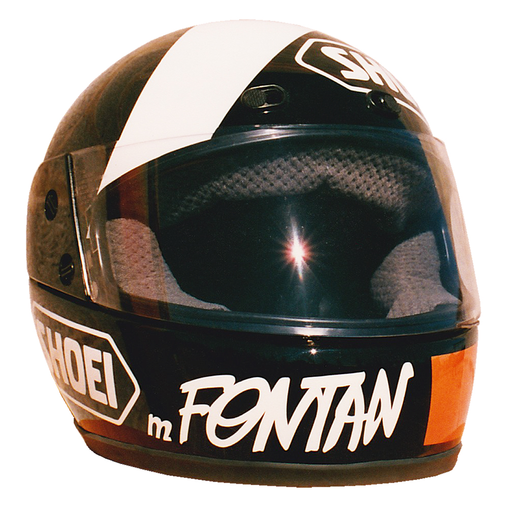 Circuit 1987 Marc FONTAN #2 Casque Shoei RF 100, peint par Christian Roux / Rainbow Colors pour Marc Fontan. Précédent Suivant