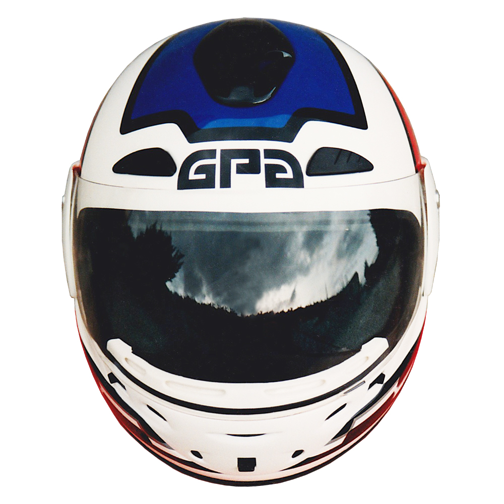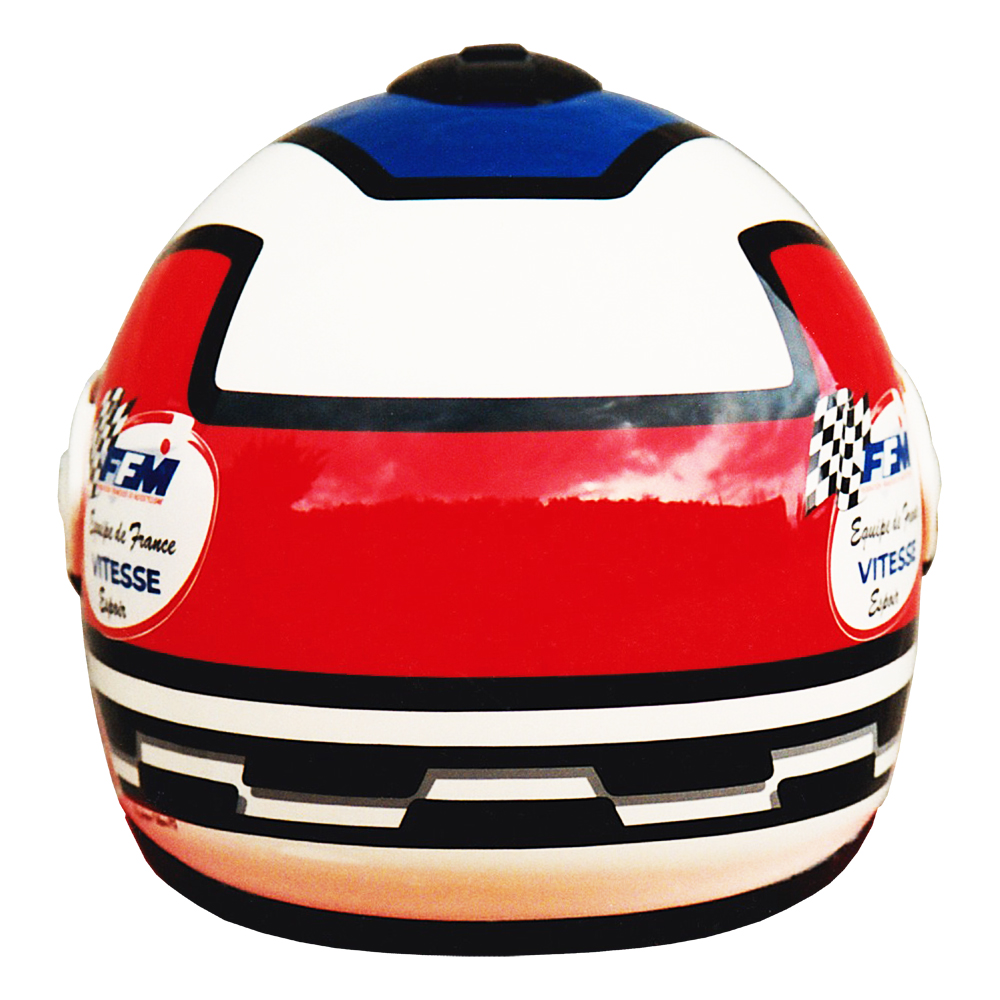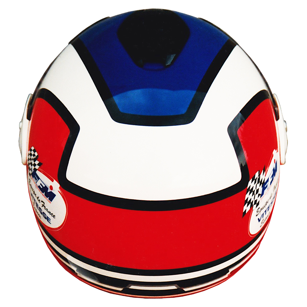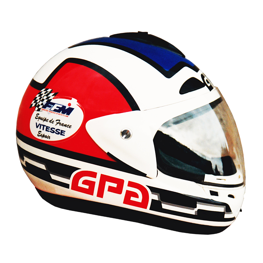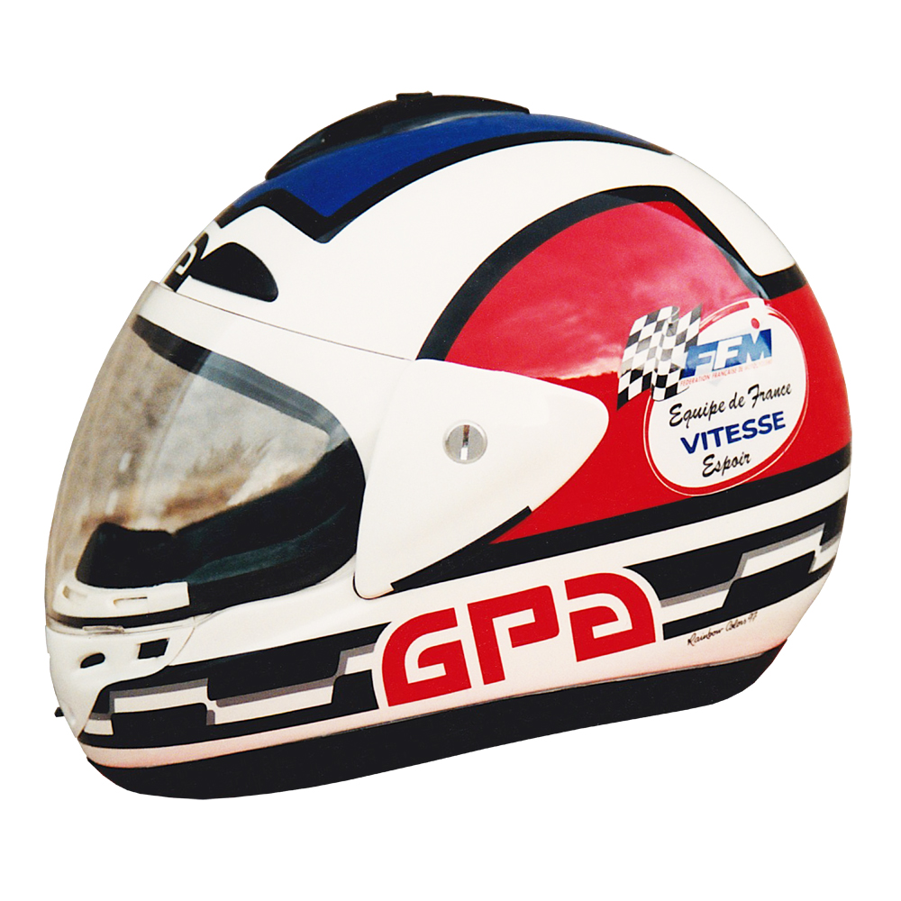 Circuit 1997 Équipe de FRANCE de Vitesse Espoirs Casque GPA, peint par Christian Roux / Rainbow Colors en 1997 pour l'équipe de France de Vitesse Espoir. Précédent Suivant