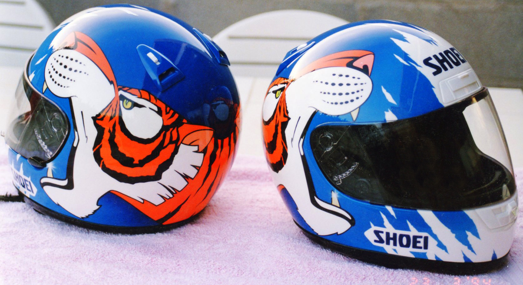 Circuit 1994 Philippe MONNERET #1 & #2 Casques Shoei X8 R, crées et peints par Christian Roux / Rainbow Colors en 1994 pour Philippe Monneret, Team Suzuki, Vice Champion du Monde d'Endurance. Précédent Suivant