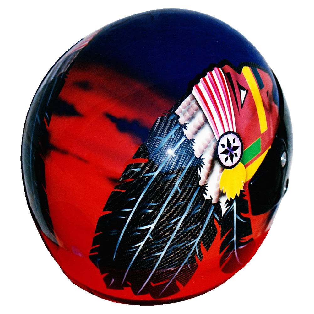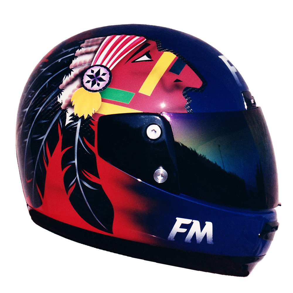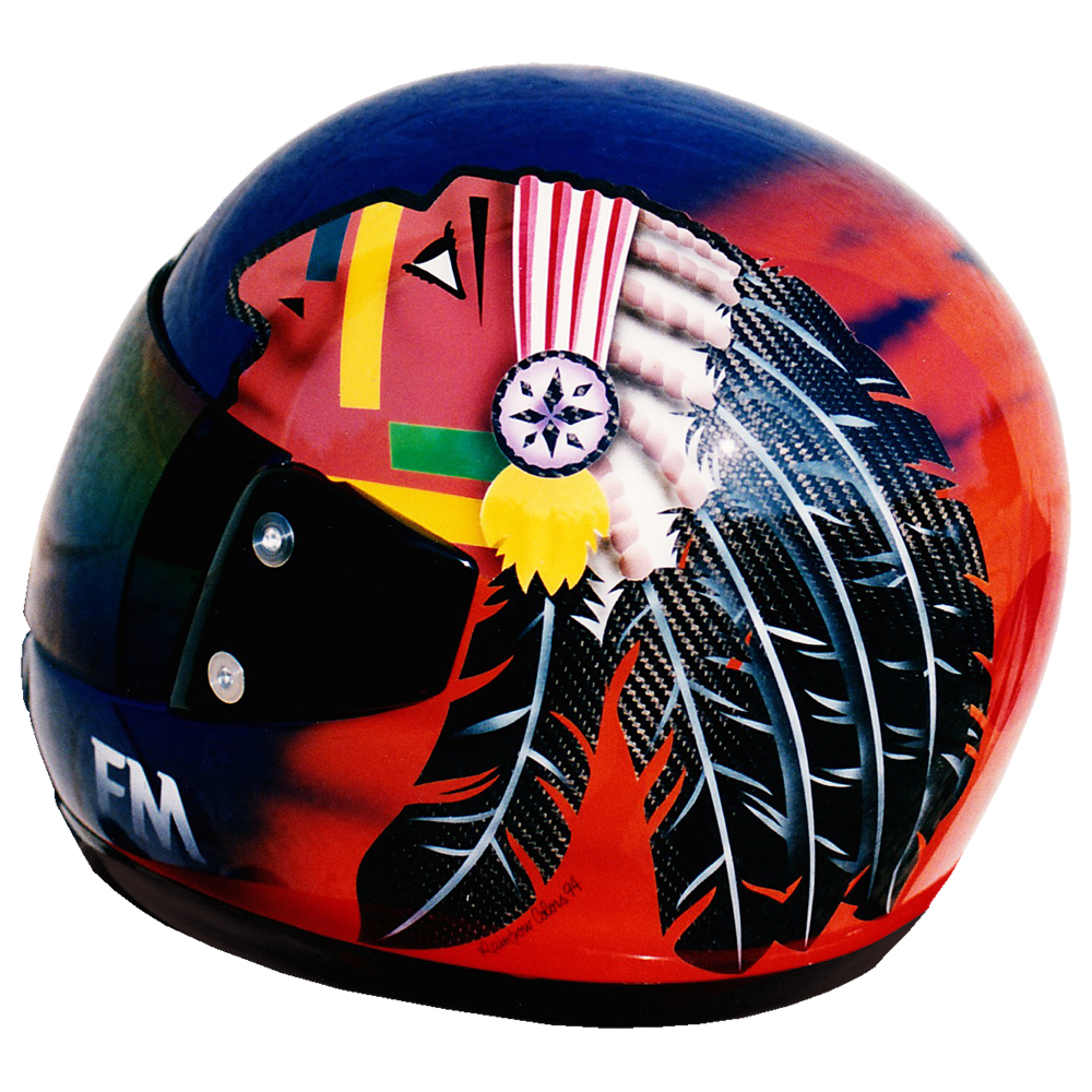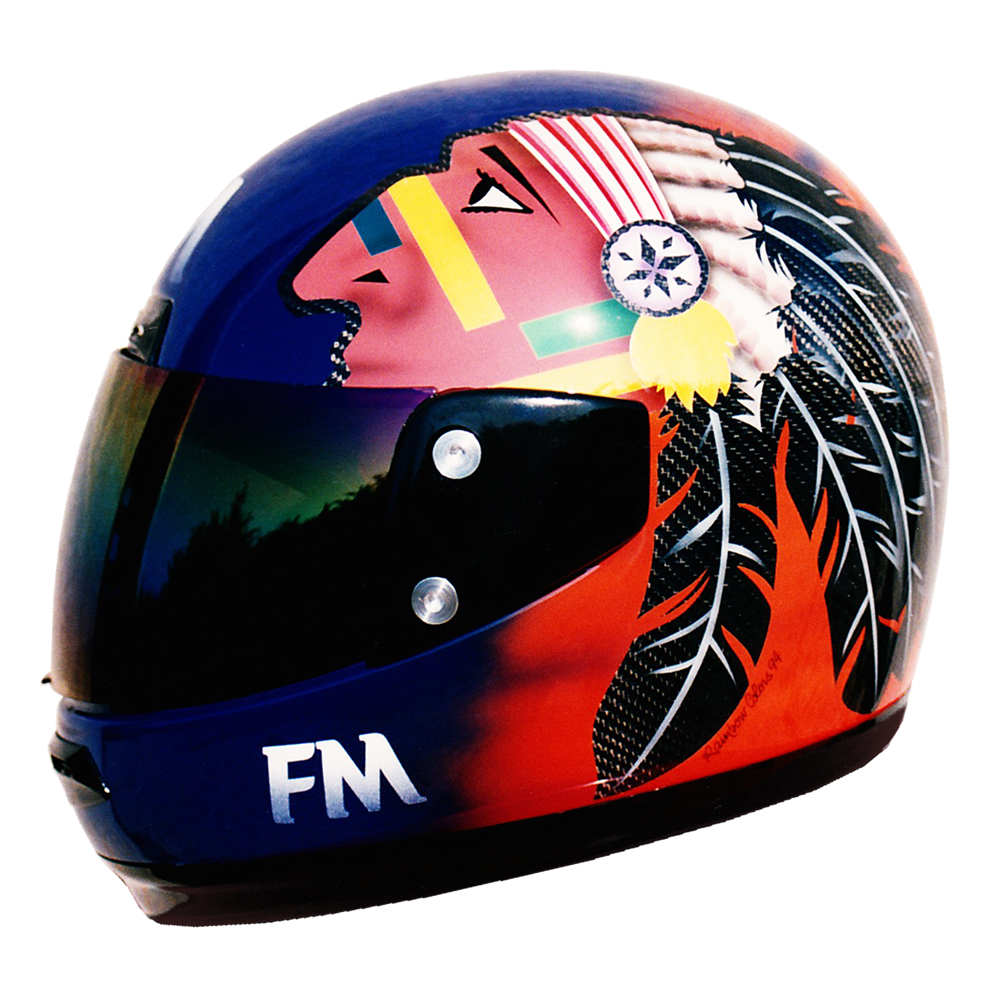 Circuit 1994 Alain LELAN #1 Casque FM Force One Carbone, crée et peint par Christian Roux / Rainbow Colors en 1994 pour Alain Lelan, Écurie Asnières Moto, Championnat de France De Superbike. Précédent Suivant