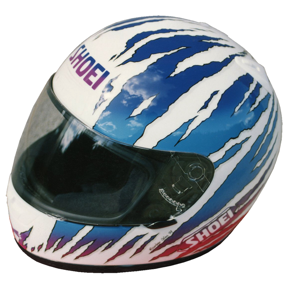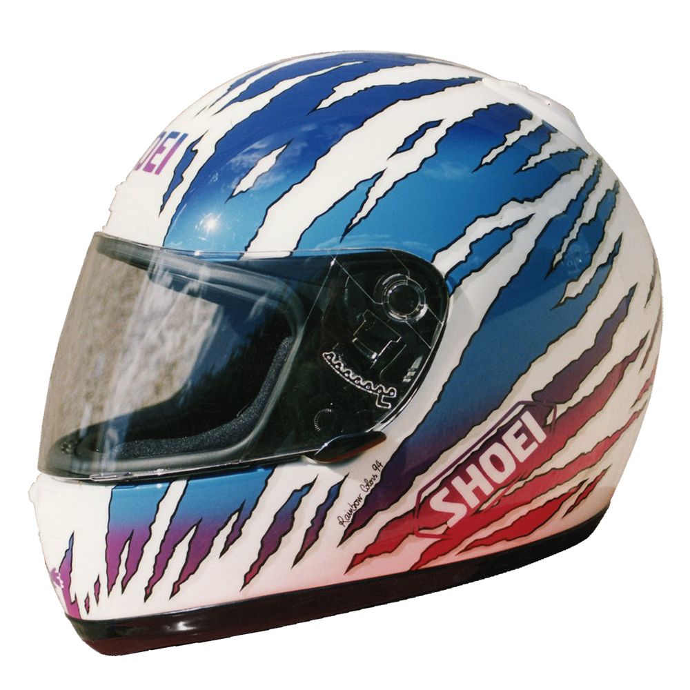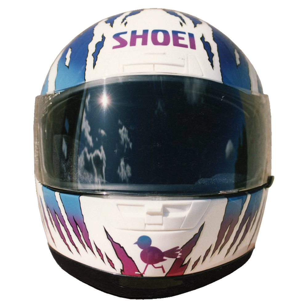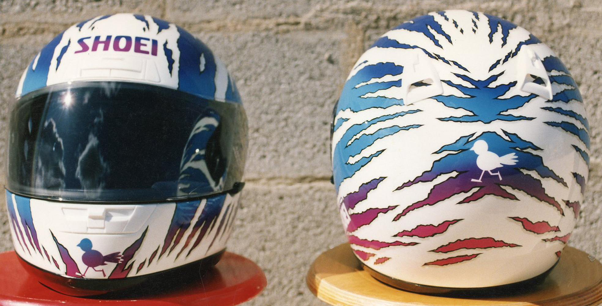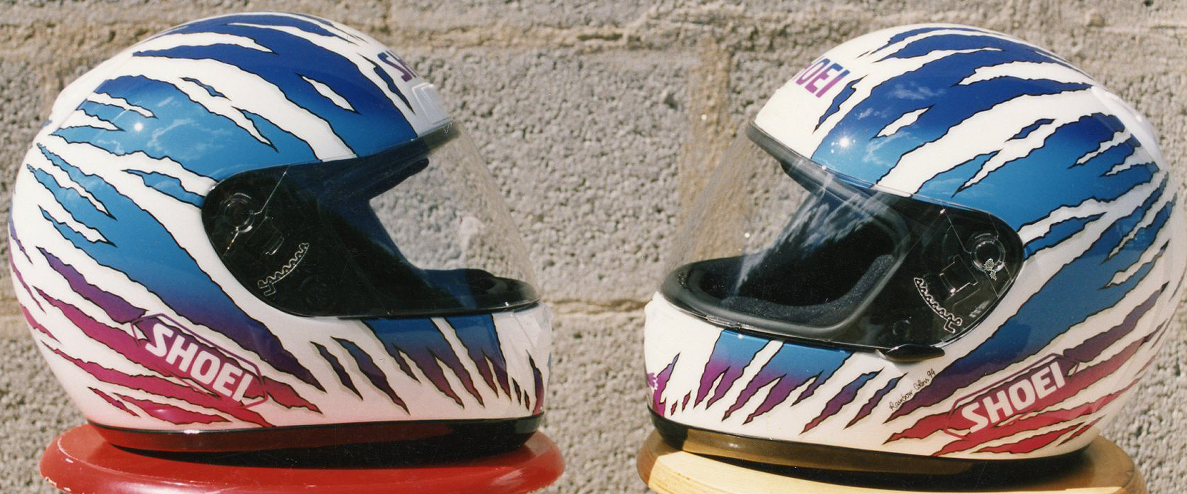 Circuit 1994 Hervé MOINEAU #1 & #2 Casques Shoei X8 R, peints par Christian Roux / Rainbow Colors en 1994 pour Hervé Moineau, Team Suzuki, Championnat du Monde d'Endurance. Précédent Suivant