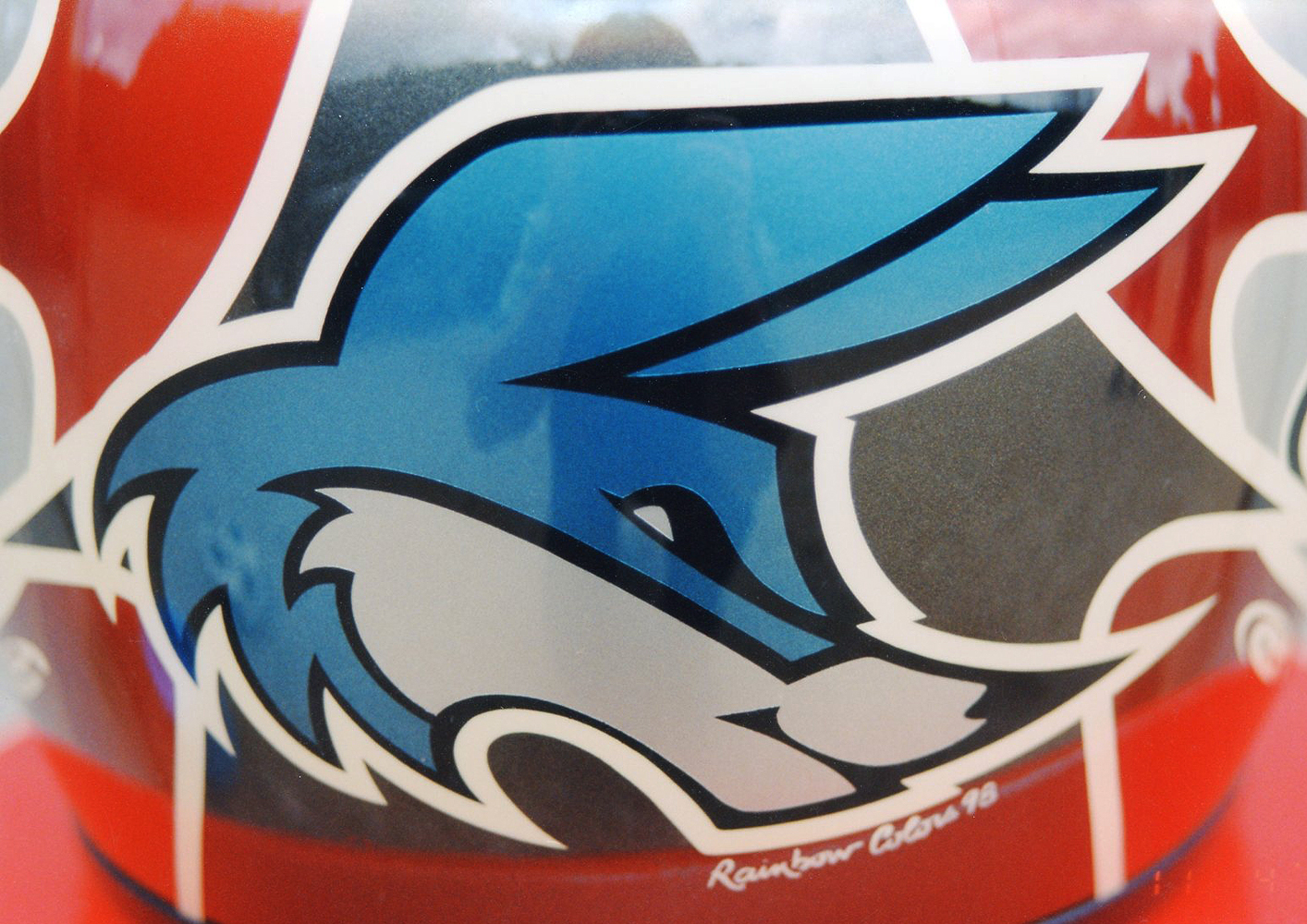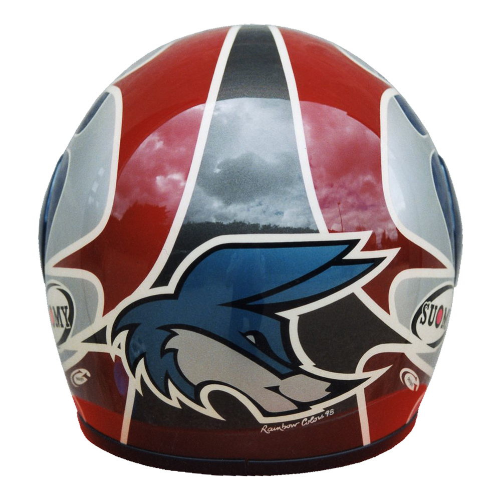 Circuit 1998 Massimo “Maio“ MEREGALLI #3 Casque Suomy, peint par Christian Roux / Rainbow Colors en 1998 pour Maio Meregalli, Team Belgarda Yamaha, 5ème Championnat du Monde Supersport. Précédent Suivant