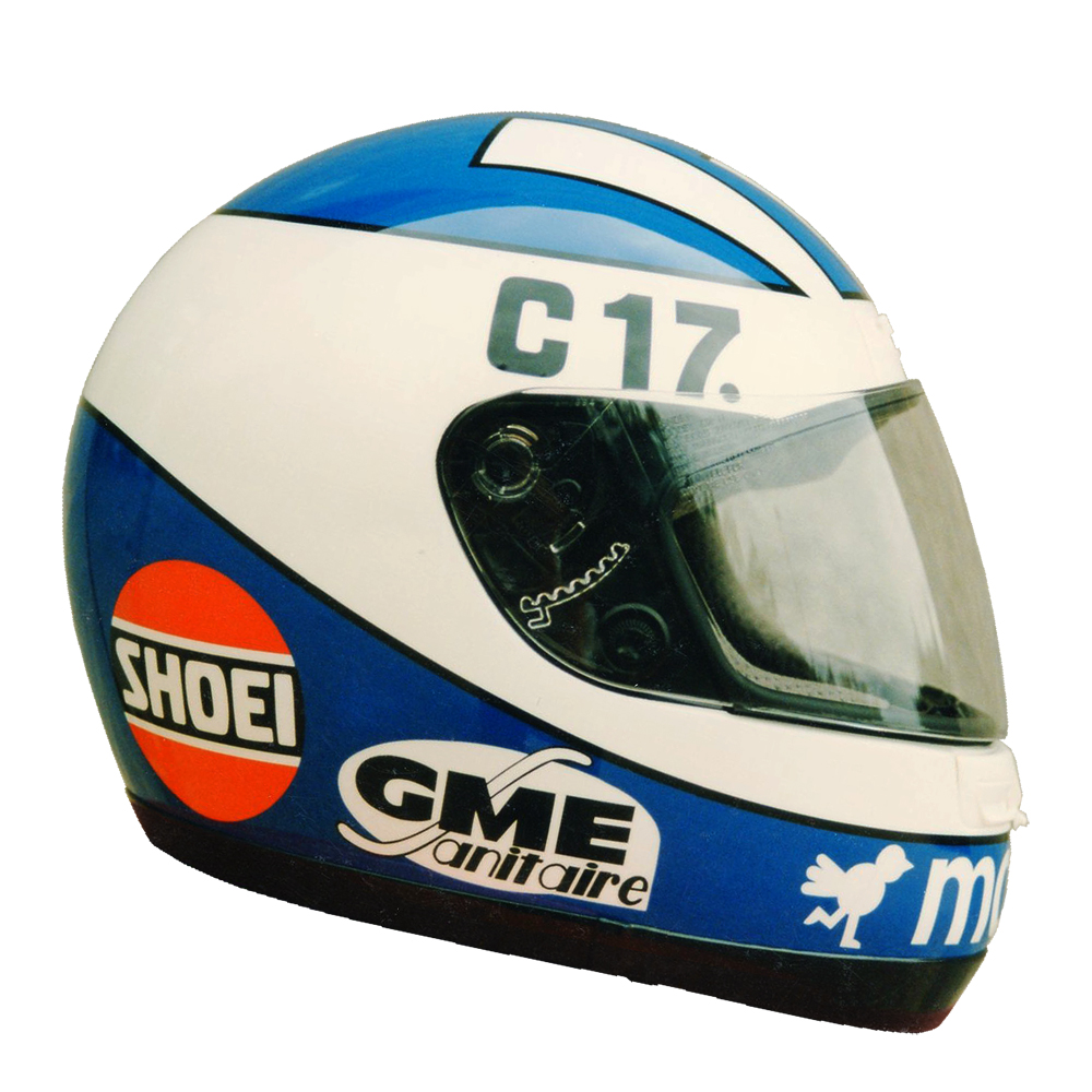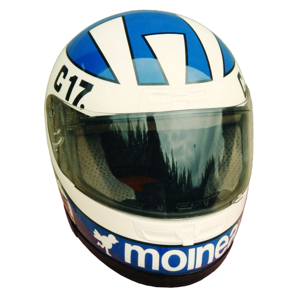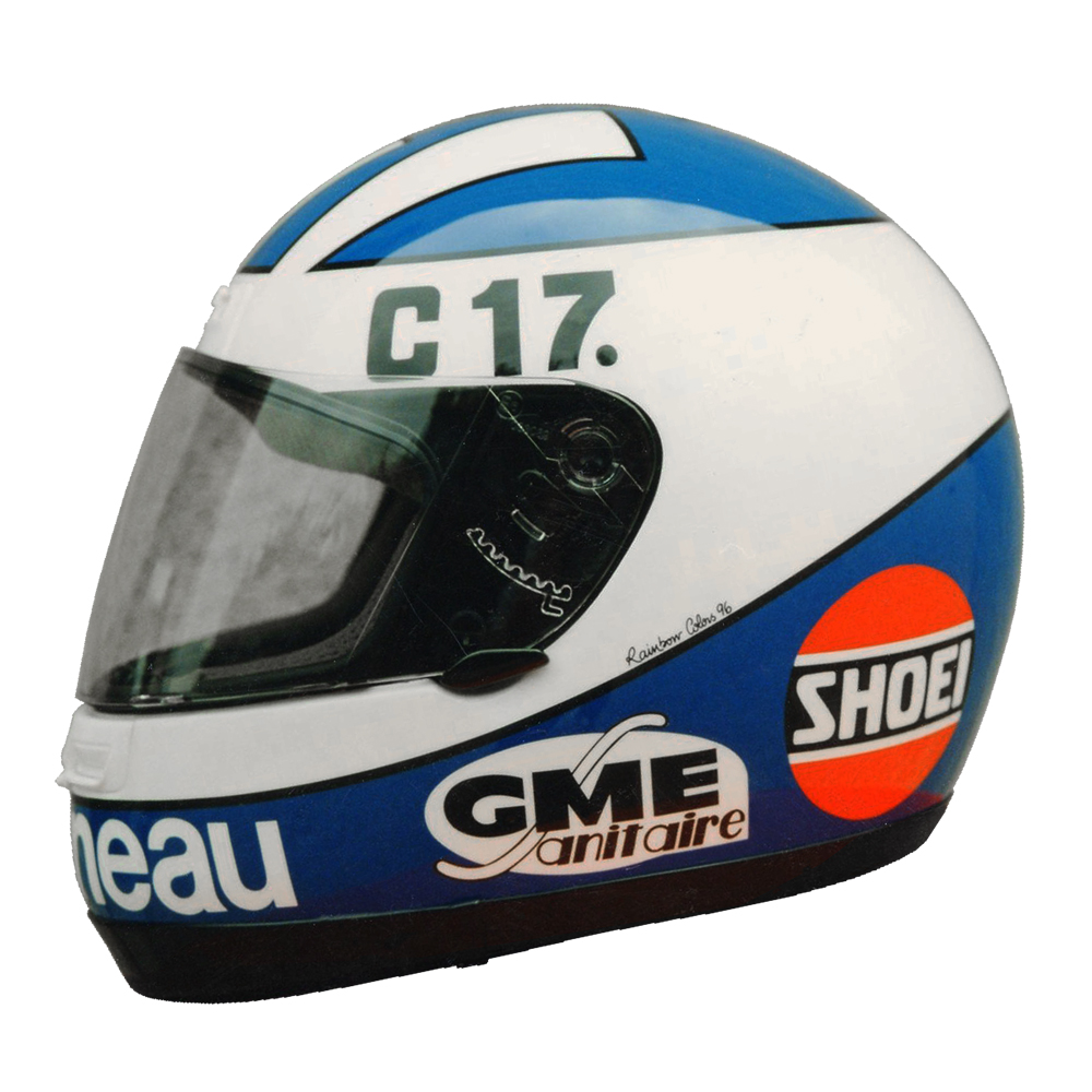 Circuit 1996 Hervé MOINEAU Casque Shoei XV, peint par Christian Roux / Rainbow Colors en 1996 pour Hervé Moineau, Team Suzuki, Championnat du Monde d'Endurance. Précédent Suivant