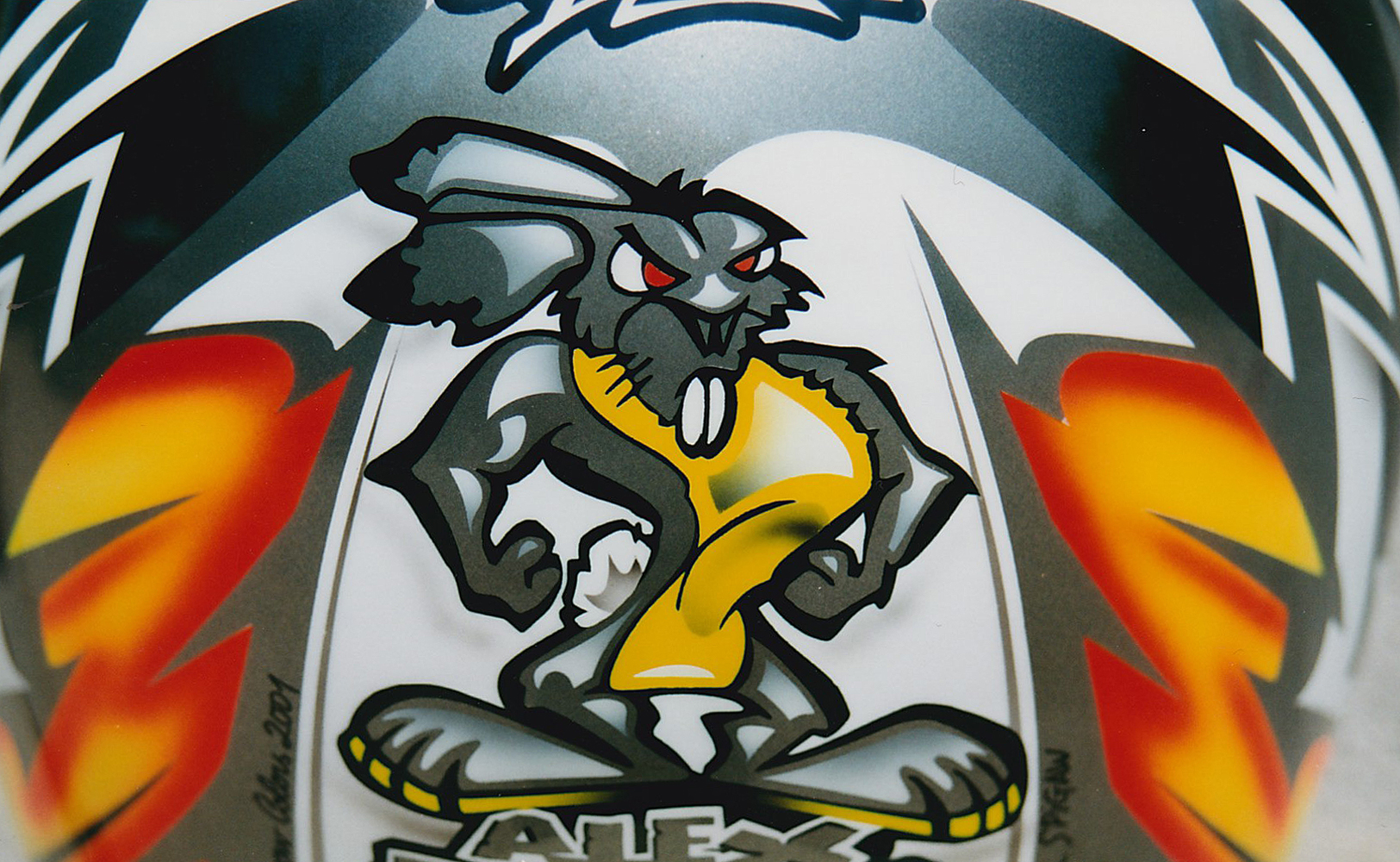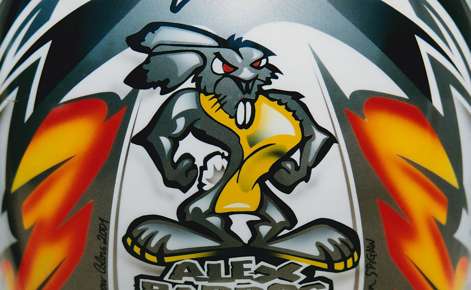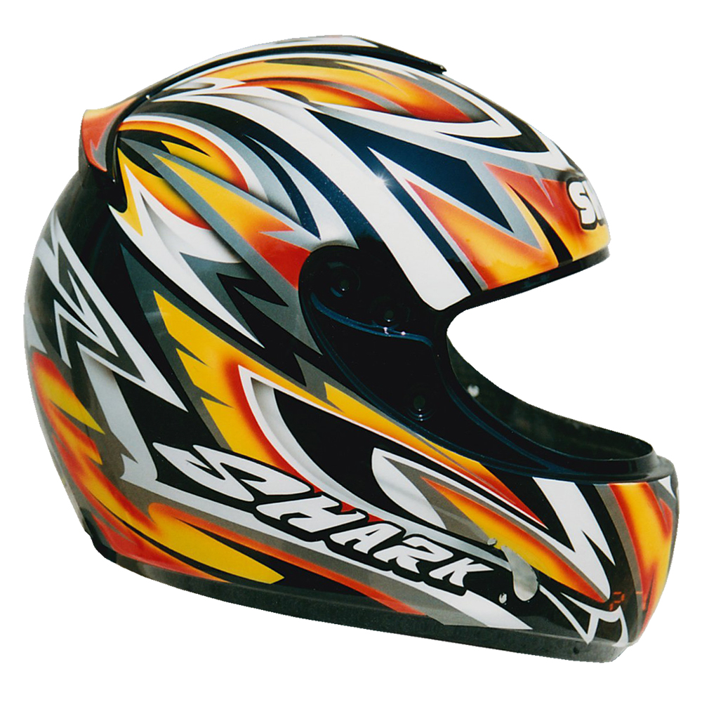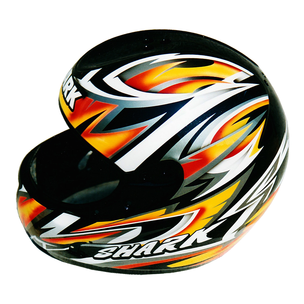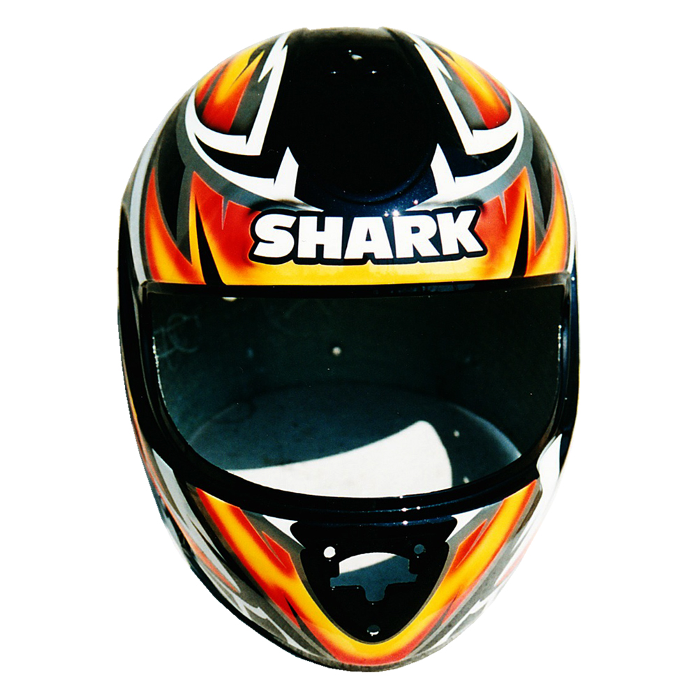 Circuit 2001 Alex BARROS #1 & #2 Casques Shark RSR 2, peints par Christian Roux / Rainbow Colors en 2001 pour Alex Barros, Team Honda Racing West, 4ème du Championnat du Monde 500. Précédent Suivant