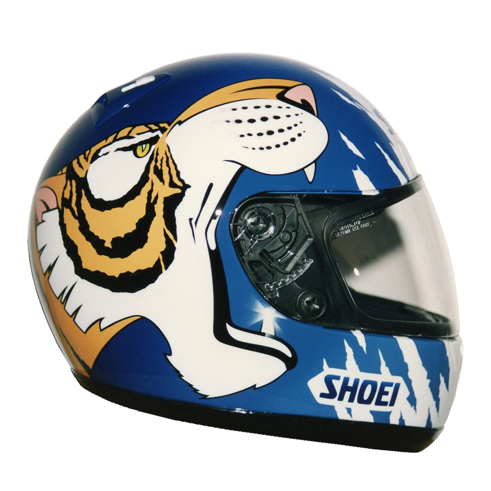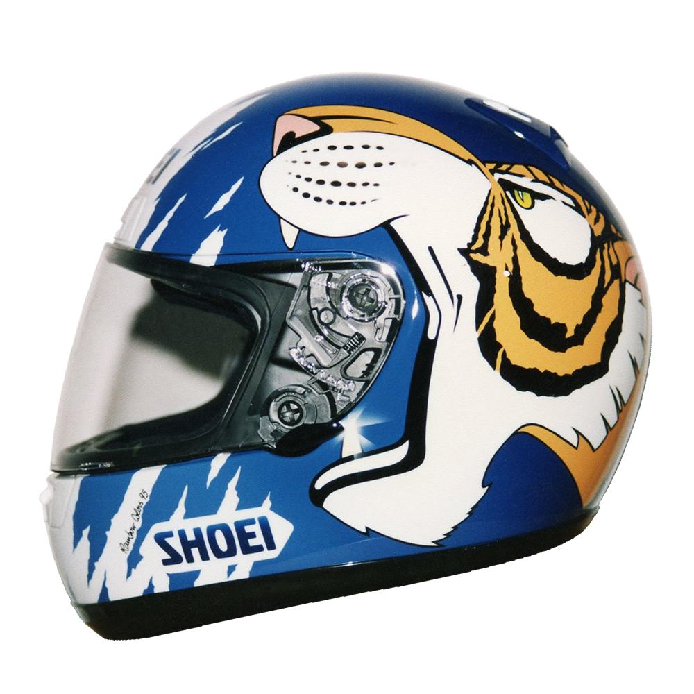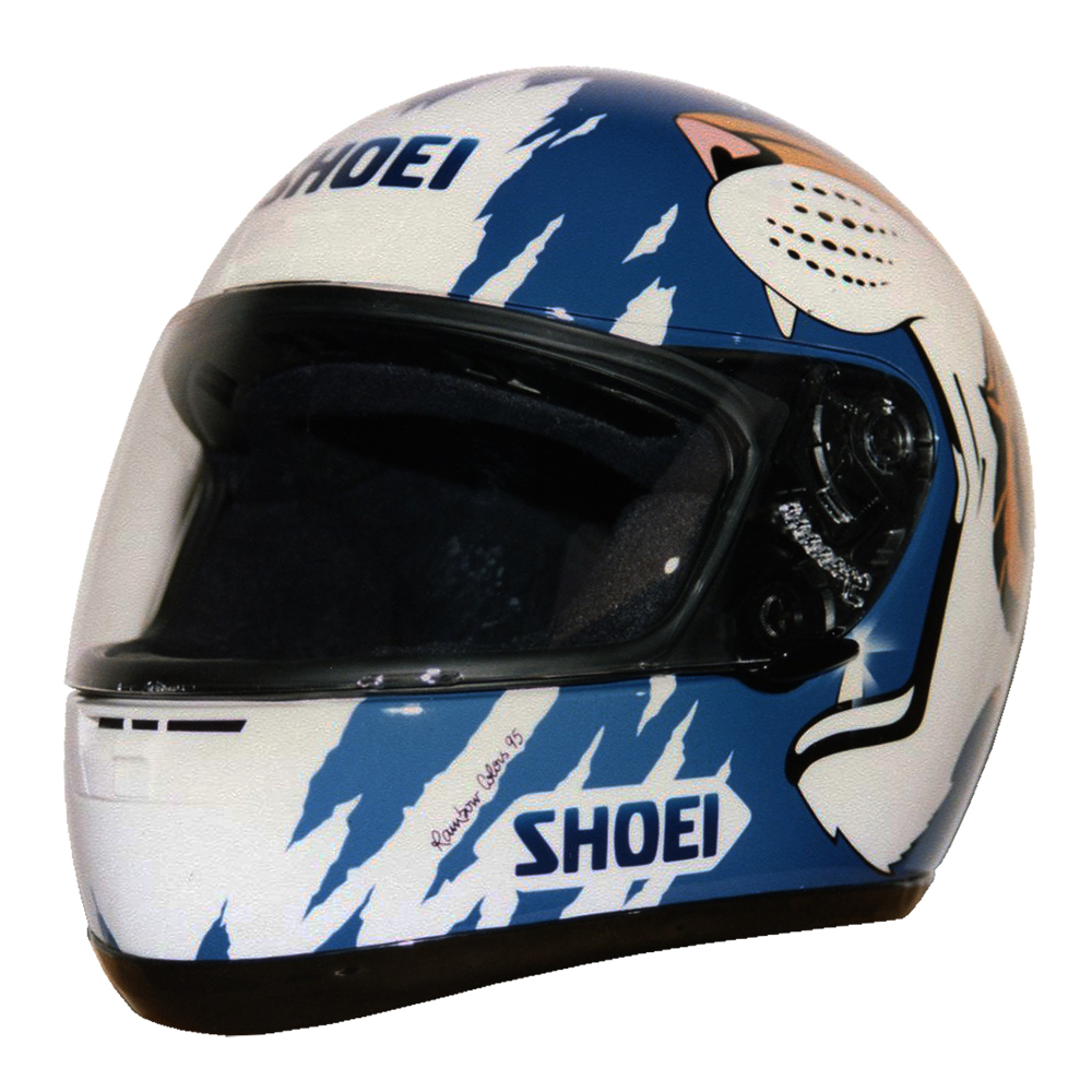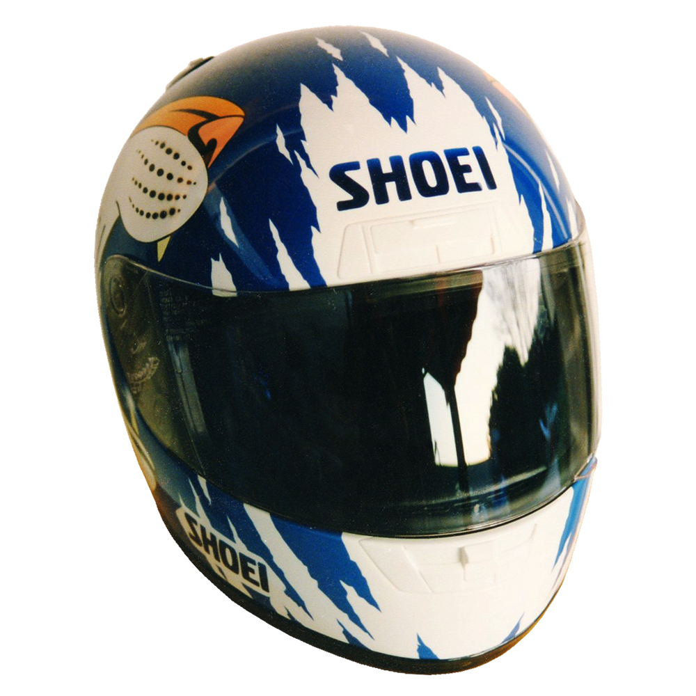 Circuit 1995 Philippe MONNERET #1 Casque Shoei X8 R, crée et peint par Christian Roux / Rainbow Colors en 1995 pour Philippe Monneret, Team Yamaha Roc, Moto GP 500. Précédent Suivant