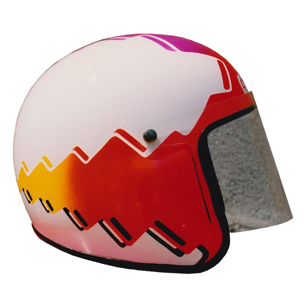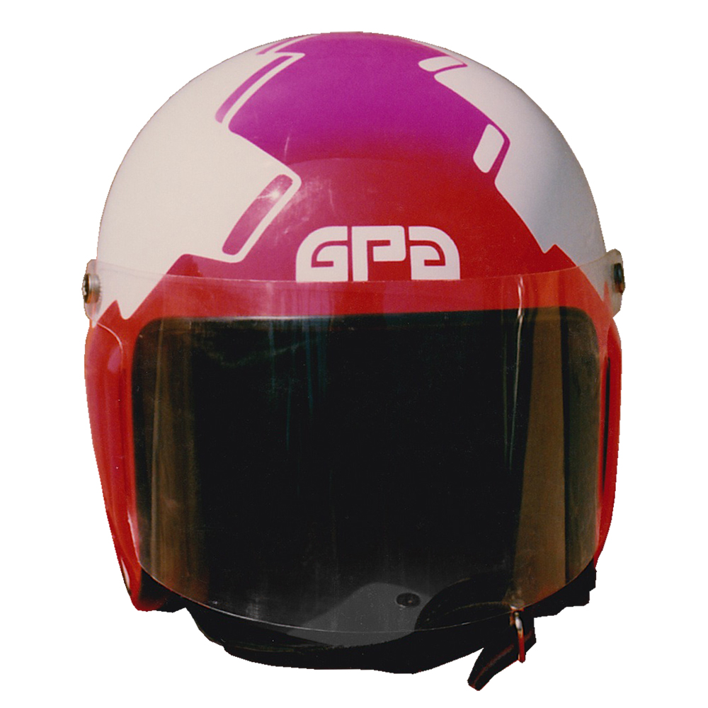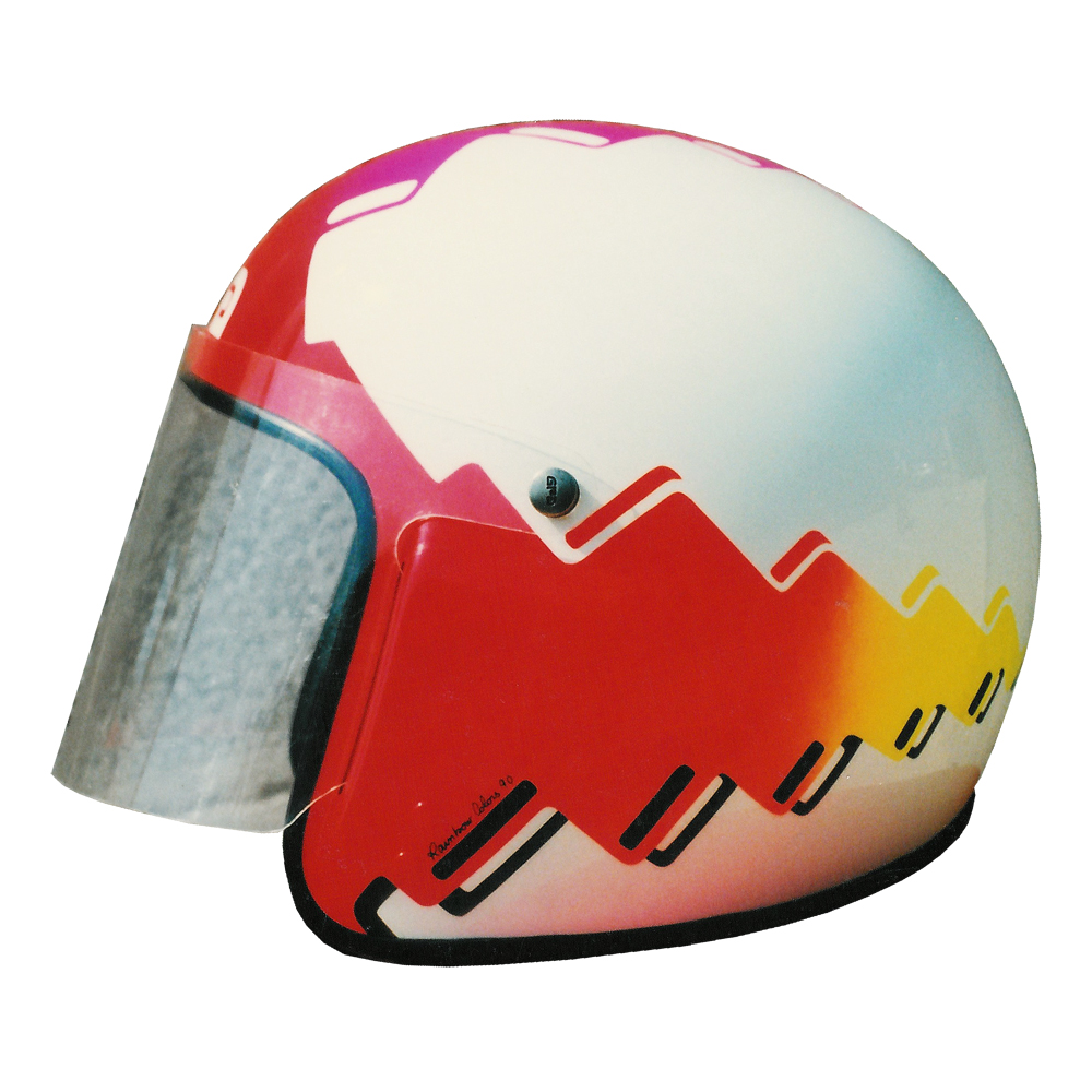 Tourisme 1991 Joël DUFEIL Casque GPA G4, crée et peint par Christian Roux / Rainbow Colors en 1991 pour Joël Dufeil. Précédent Suivant