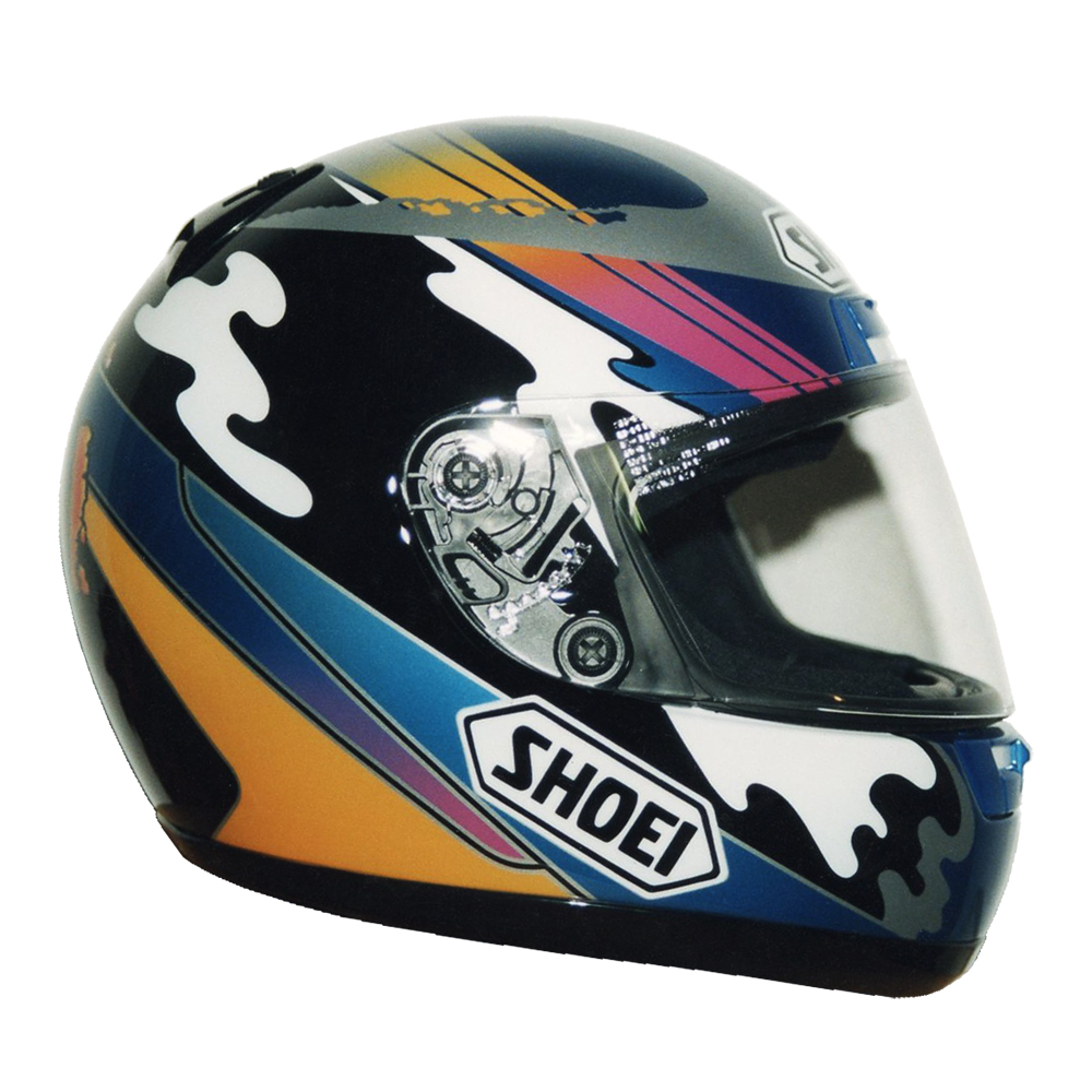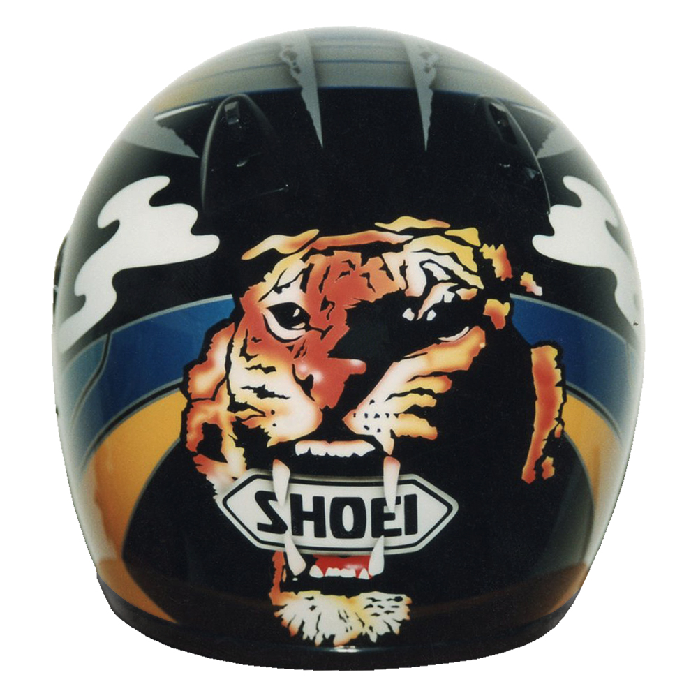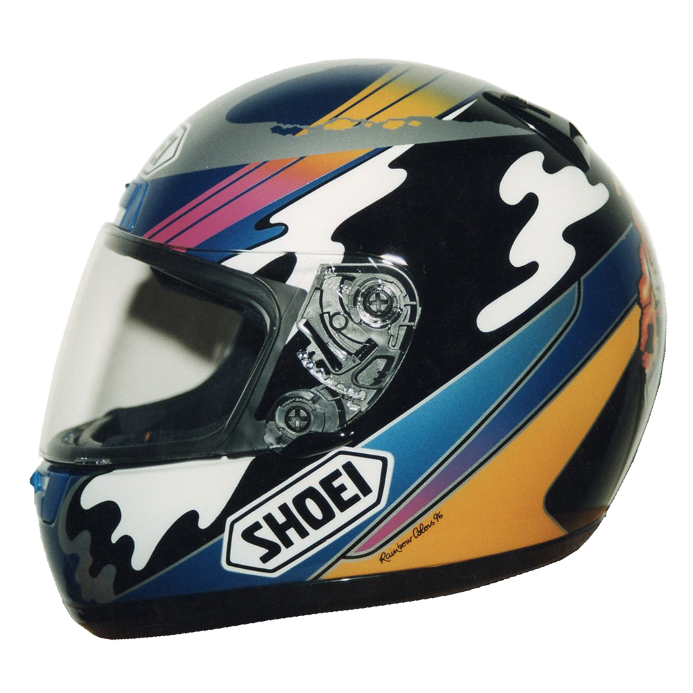 Tourisme 1996 Yves MARKEVICINTE Casque Shoei X8 R, peint par Christian Roux / Rainbow Colors en 1996 pour Yves Markevicinte. Précédent Suivant