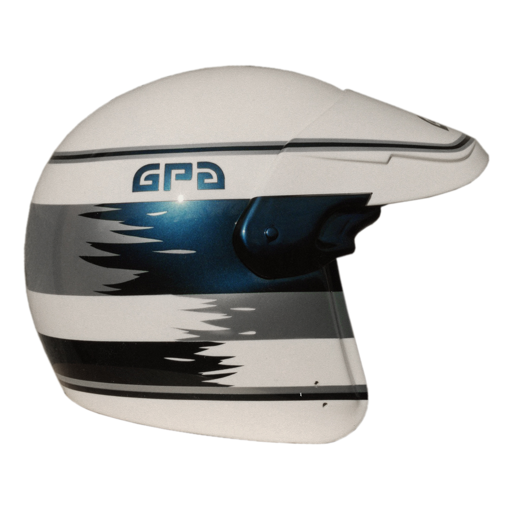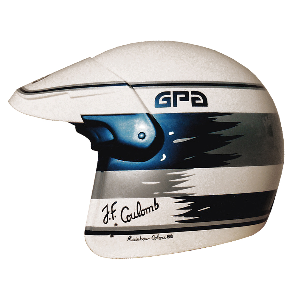 Tourisme 1988 Jean François COULOMB Casque GPA G4, peint par Christian Roux / Rainbow Colors en 1988 pour Jean François Coulomb. Précédent Suivant