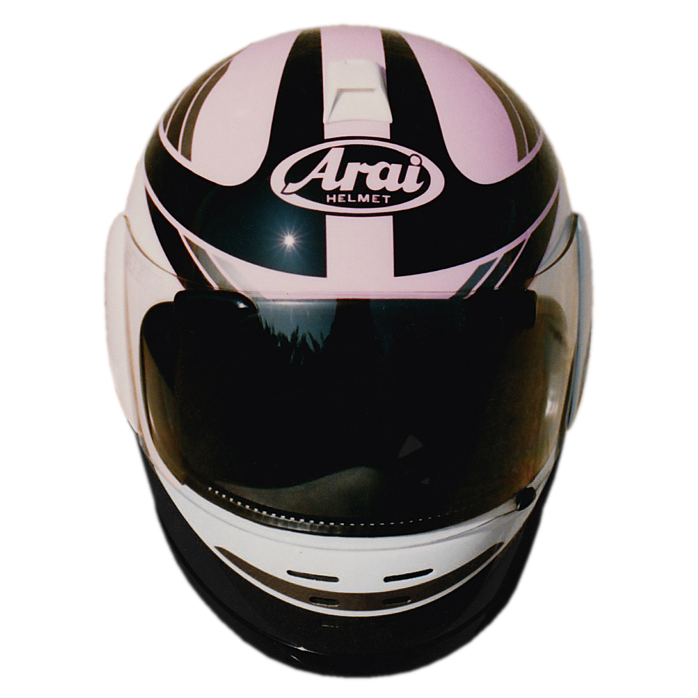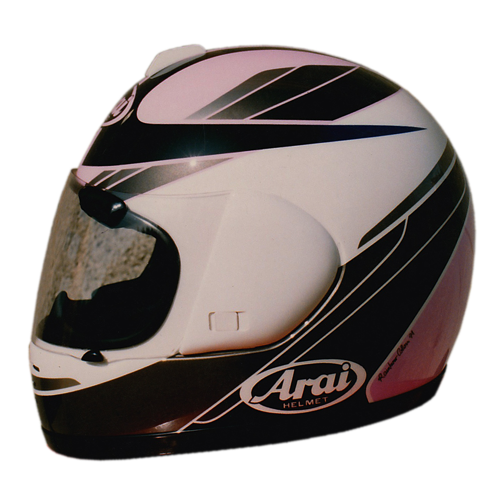 Tourisme 1991 Eric CÉLIS #2 Casque Arai Rapide, peint par Christian Roux / Rainbow Colors en 1991 pour Eric Célis, journaliste essayeur pour le magazine Moto Revue. Précédent Suivant