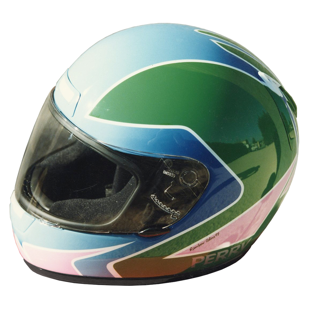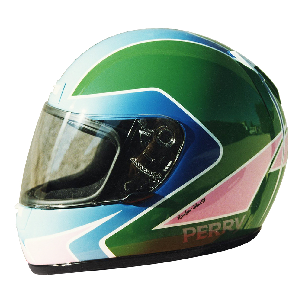 Tourisme 1997 Perry TENOUDJI Casque Shoei X 8 R, crée et peint par Christian Roux / Rainbow Colors en 1997 pour Perry Tenoudji. Précédent Suivant
