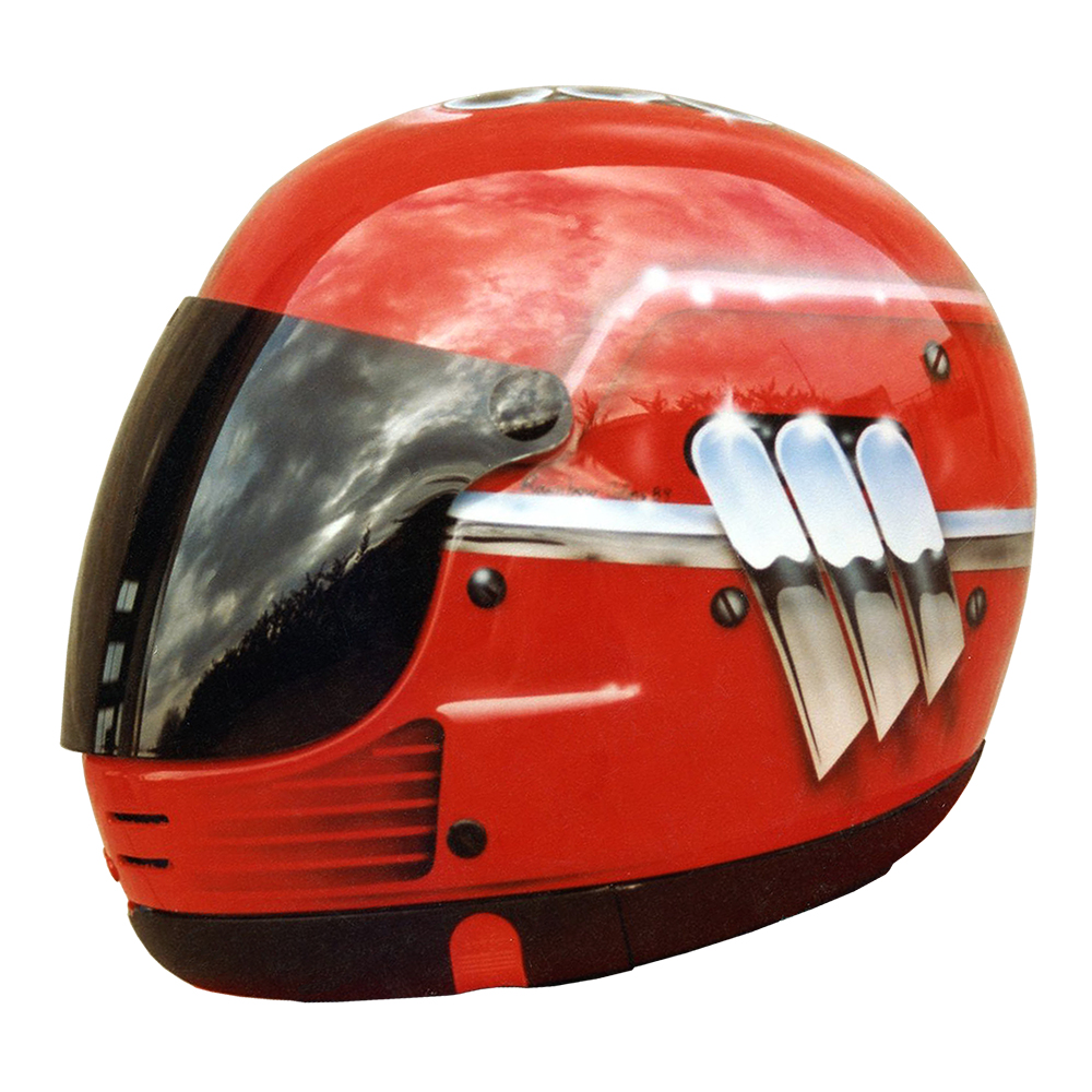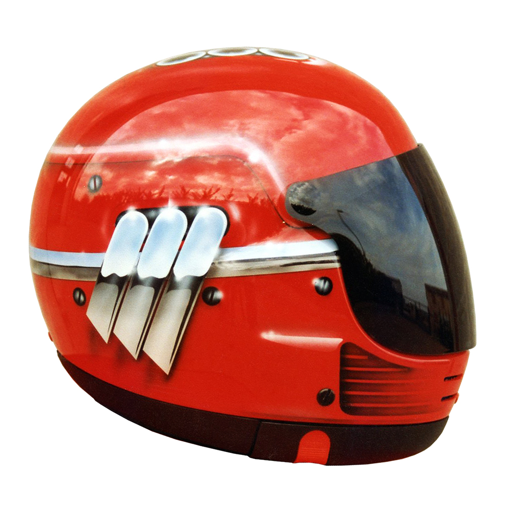 Tourisme 1989 Hubert GOBIN DAUDÉ Casque GPA SJ Moto Fibre, crée et peint par Christian Roux / Rainbow Colors en 1989 pour Hubert Gobin Daudé. Précédent Suivant