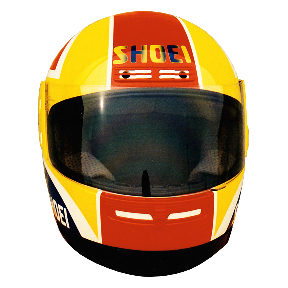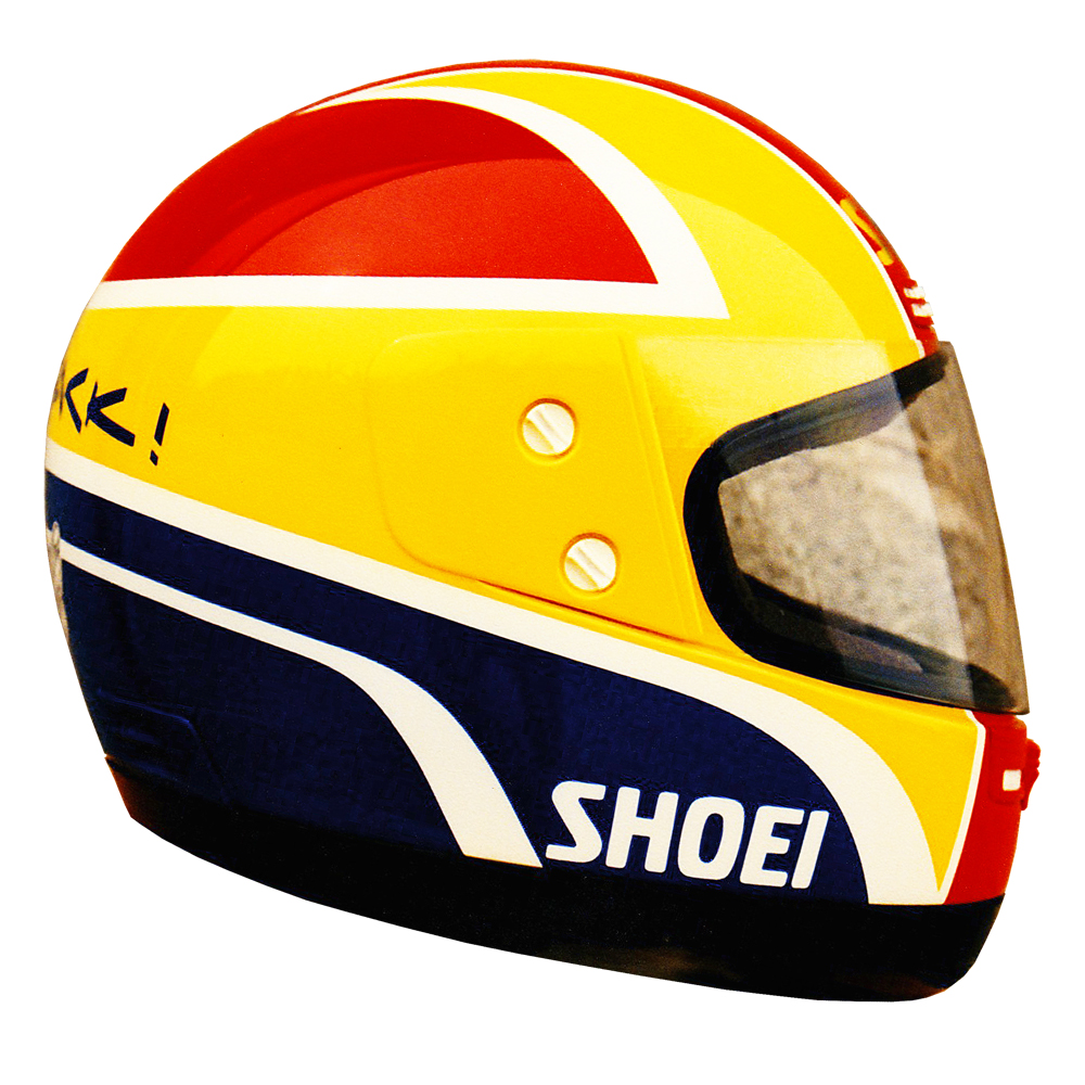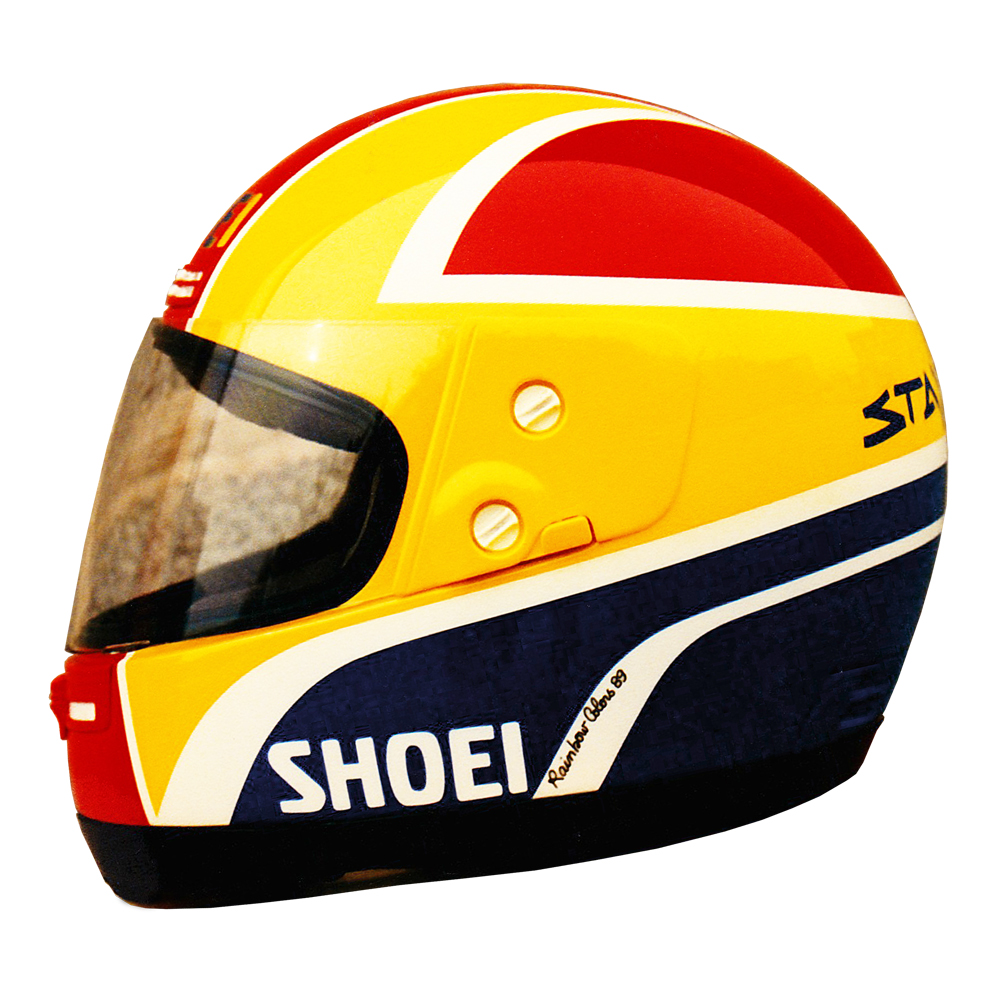 Tourisme 1989 Philippe GORCE Casque Shoei GRV, crée et peint par Christian Roux / Rainbow Colors en 1989 pour Philippe Gorce, rédacteur Moto Revue. Précédent Suivant