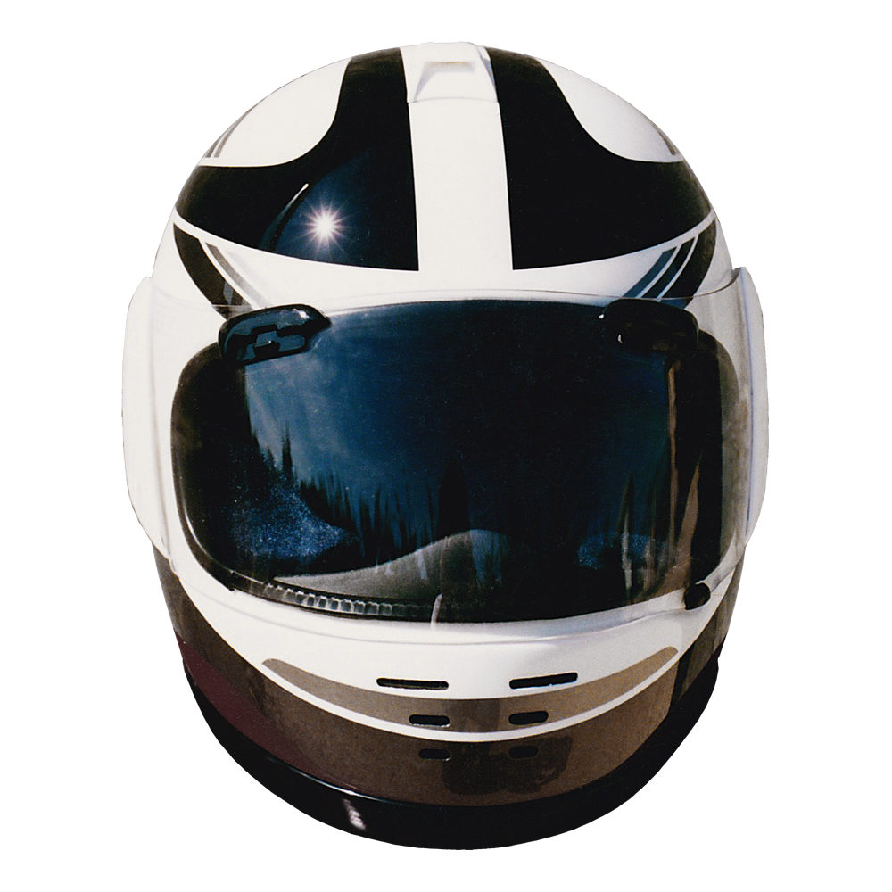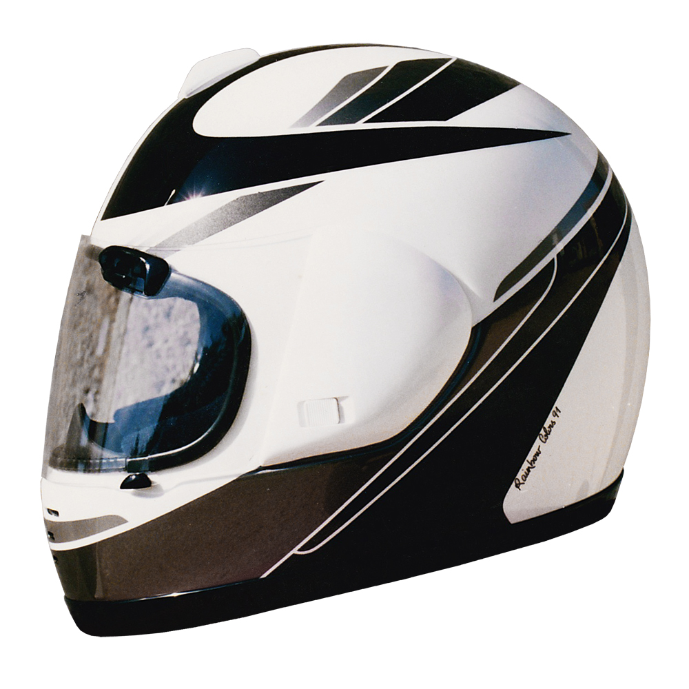 Tourisme 1991 Eric CÉLIS #1 Casque Arai Rapide, peint par Christian Roux / Rainbow Colors en 1991 pour Eric Célis, journaliste essayeur pour le magazine Moto Revue. Précédent Suivant