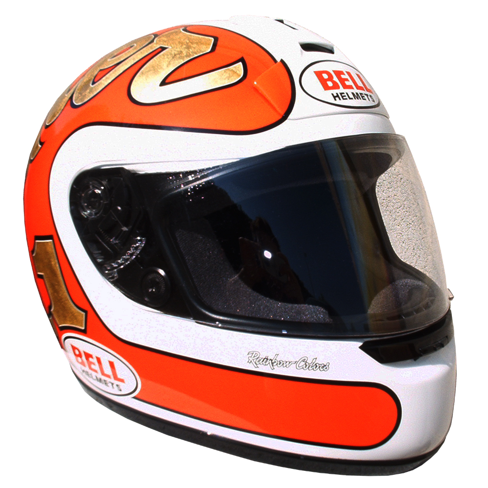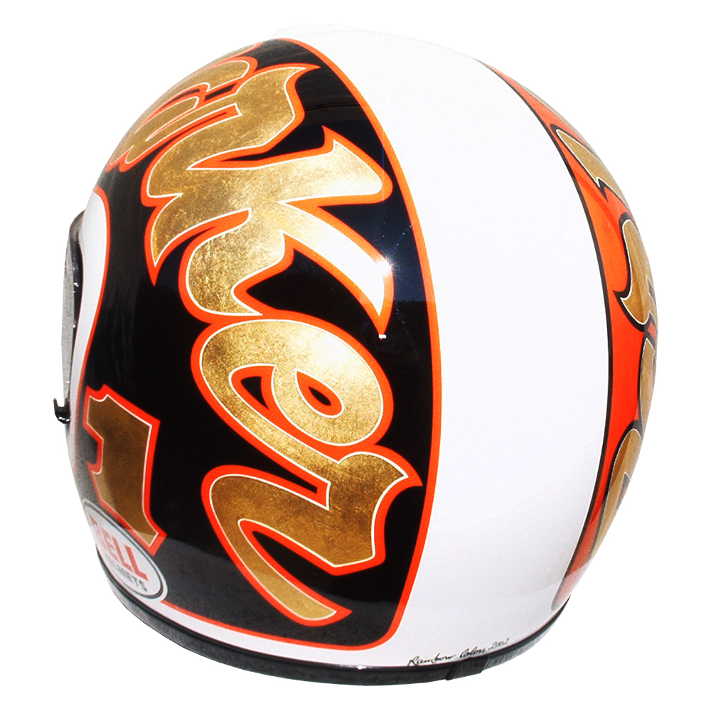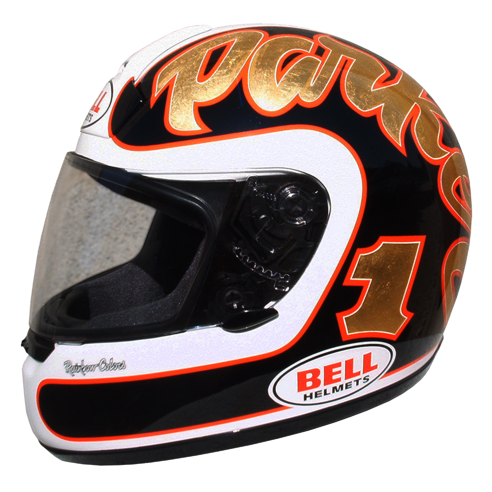 Tourisme 2002 Didier CATHELAIN Scott PARKER Replica Casque Shoei XR 900, peint par Christian Roux / Rainbow Colors en 2002 pour Didier Cathelain, d'aprés le casque de Scott Parker. Précédent Suivant
