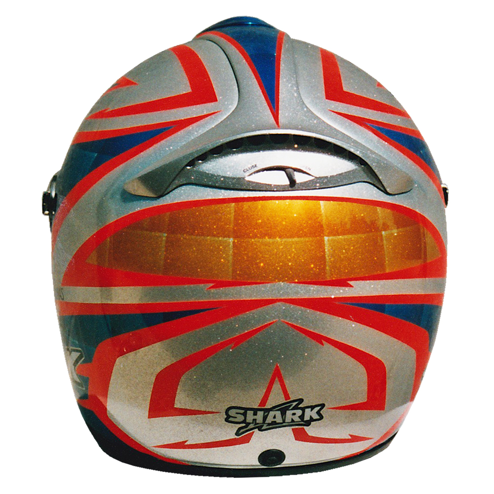 Tourisme 2005 Yannick DALMAS Casque Shark RSR, crée et peint par Christian Roux / Rainbow Colors en 2005 pour Yannick Dalmas. Précédent Suivant