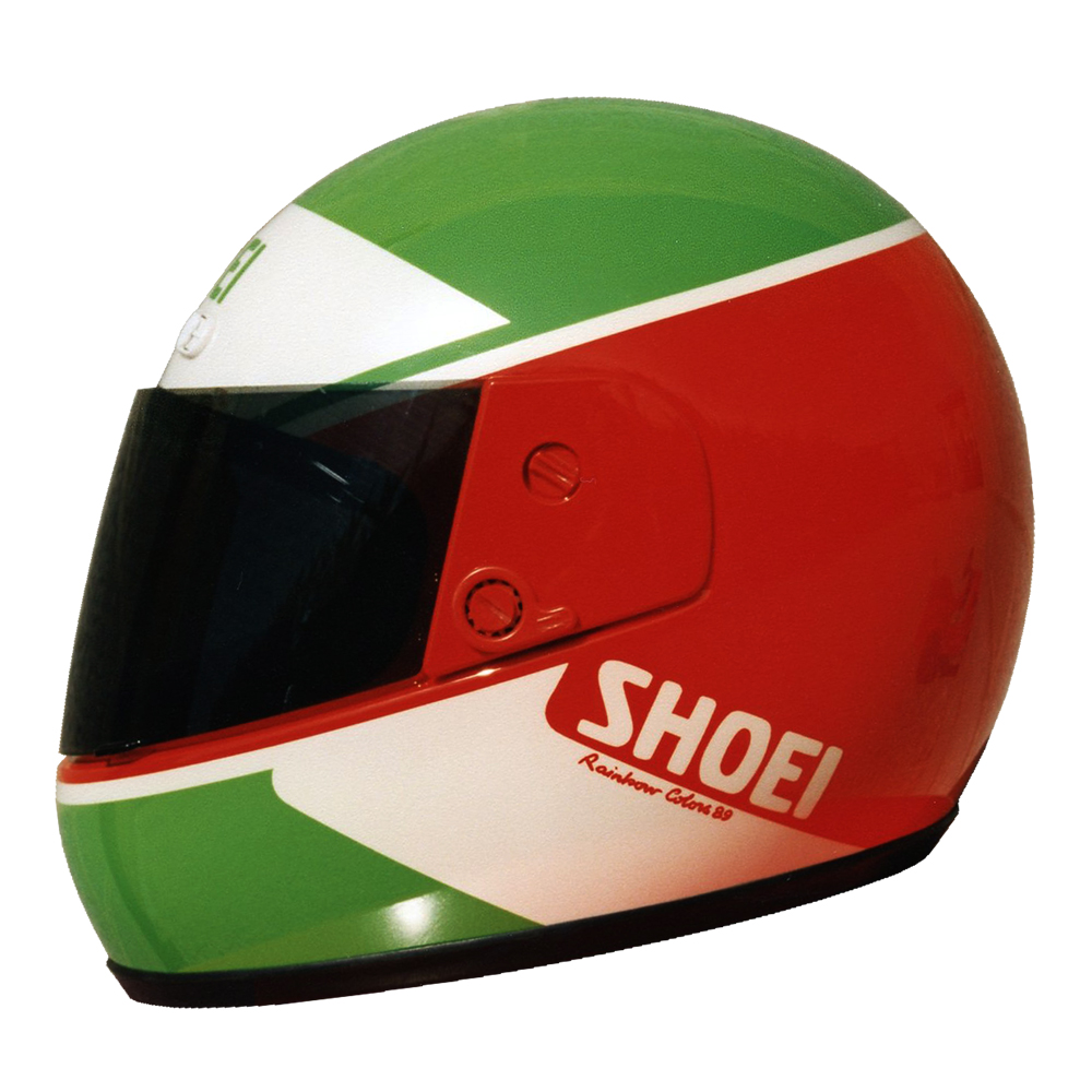 Tourisme 1989 Gilles ABRAHAMI Casque Shoei RF-105V, crée et peint par Christian Roux / Rainbow Colors en 1989 pour Gilles Abrahami. Précédent Suivant