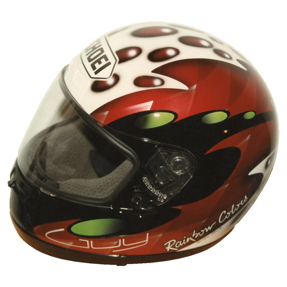 Tourisme 1996 Guy KELLER Casque Shoei RF 700, crée et peint par Christian Roux / Rainbow Colors en 1996 pour les 50 ans de Guy Keller. Précédent Suivant