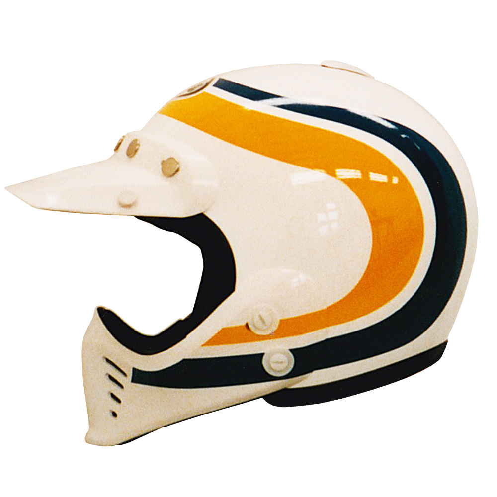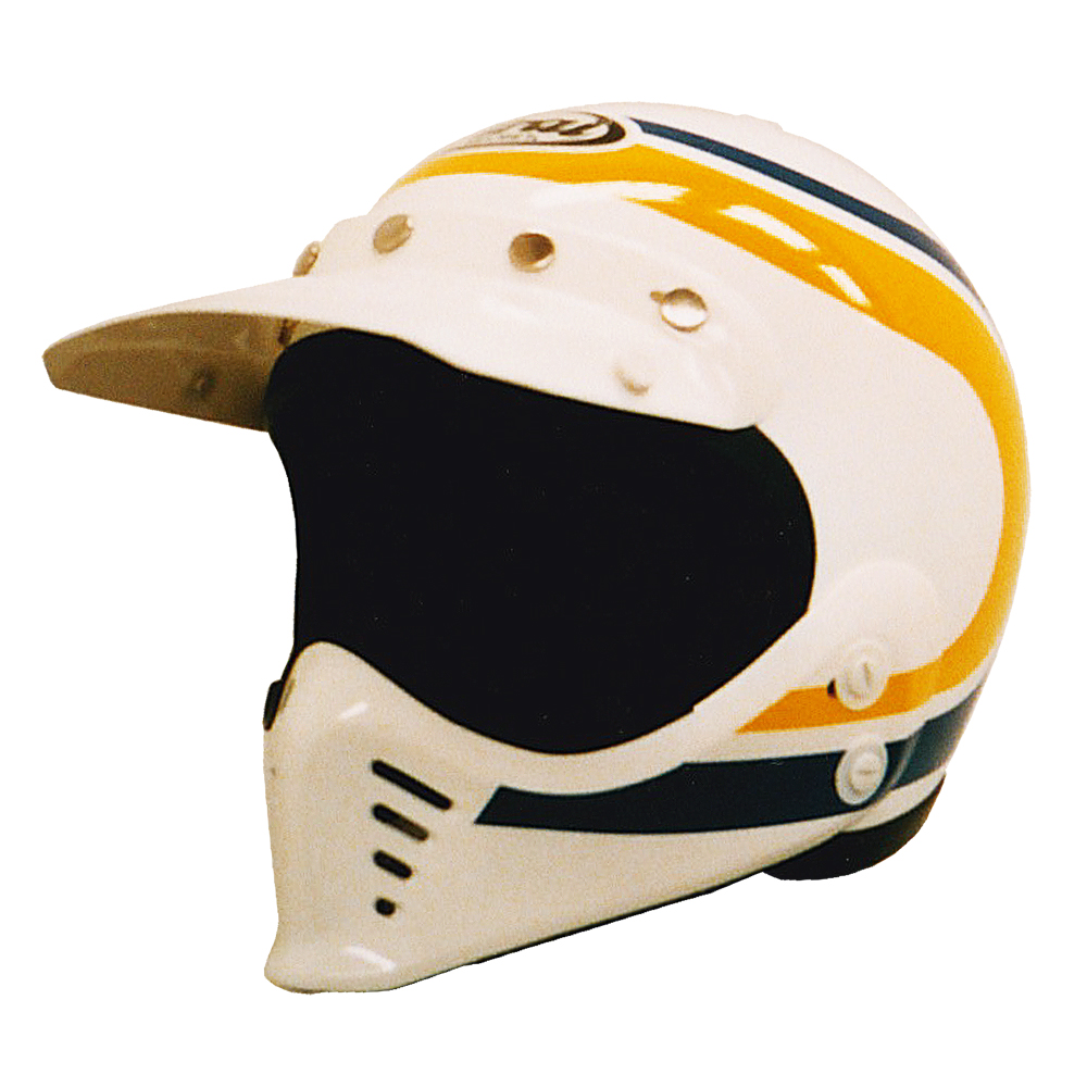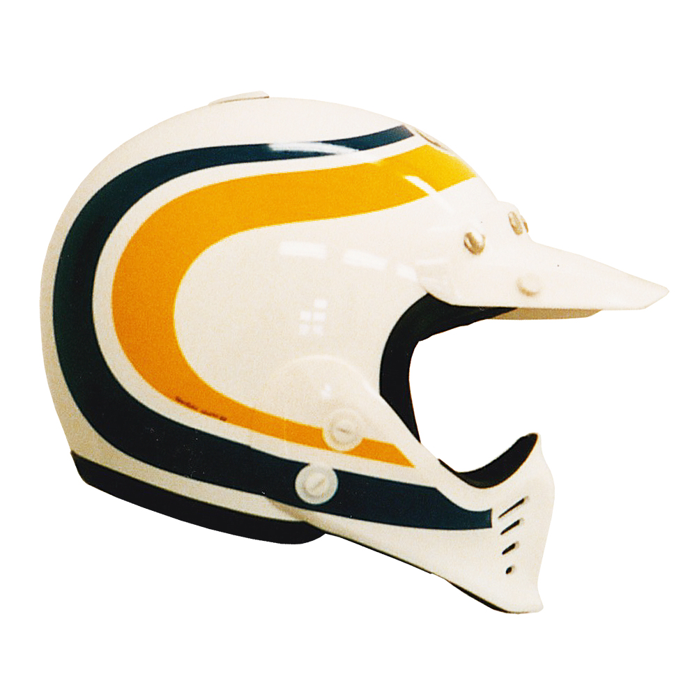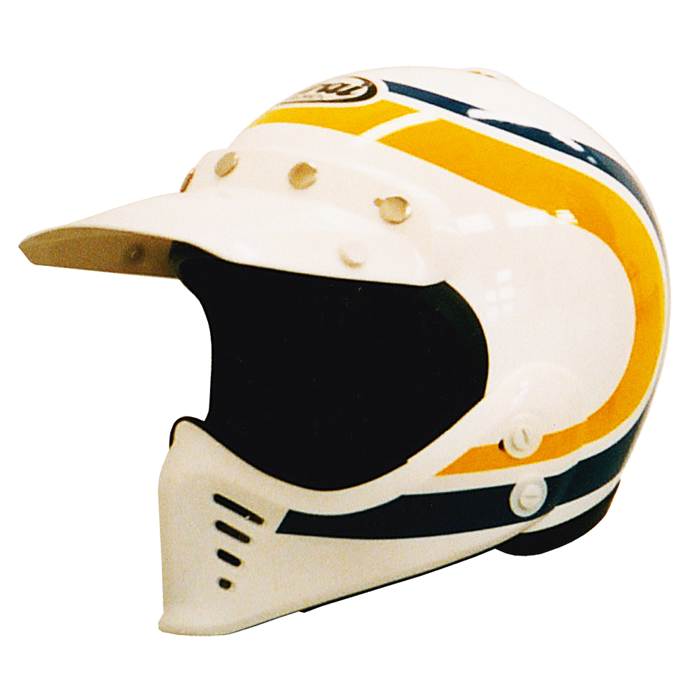 Tout Terrain 1985 Eric ALLAIRE Casque Arai MX, crée et peint par Christian Roux / Rainbow Colors en 1985 pour Eric Allaire. Précédent Suivant