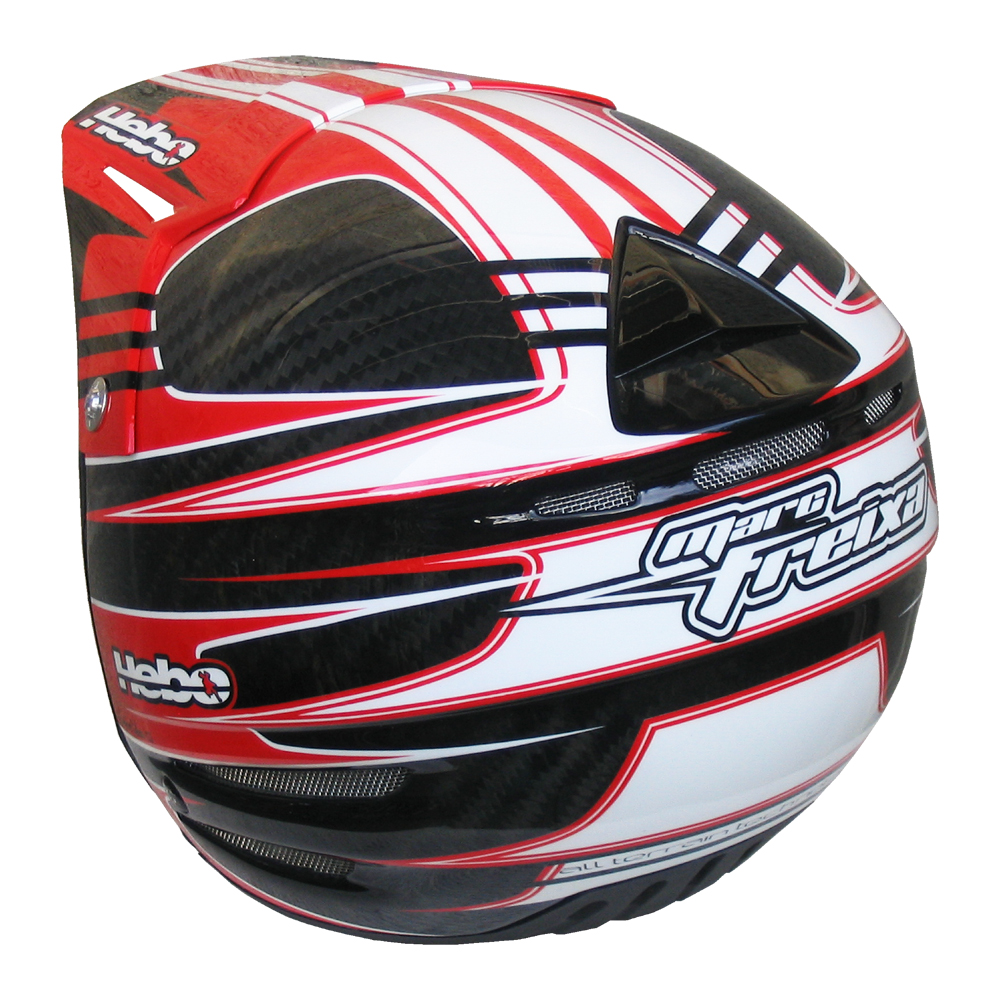 Tout Terrain 2007 Marc FREIXA #1 Casque Hebo Zone 2 Carbone, peint par Christian Roux / Rainbow Colors en 2007 pour Marc Freixa, Team Scorpa, Championnat du Monde de Trial. Précédent Suivant