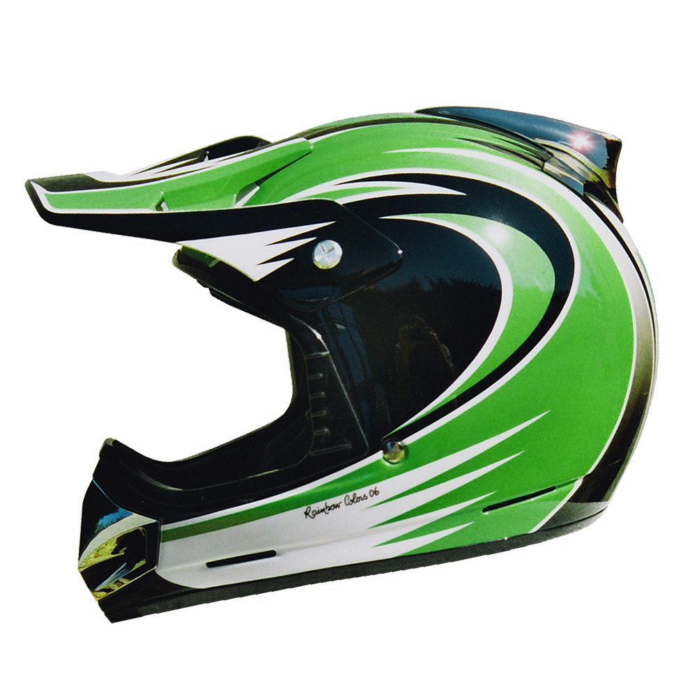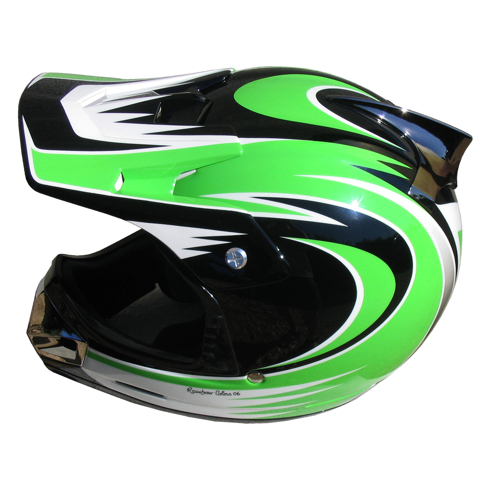 Tout Terrain 2006 Jacques BEGHIN Casque HJC MX, crée et peint par Christian Roux / Rainbow Colors en 2006 pour Jacques Beghin, Look Motard Kawasaki. Précédent Suivant