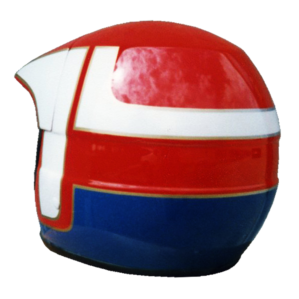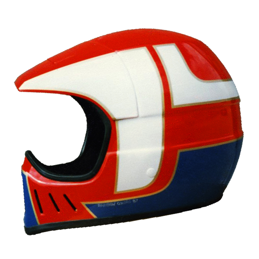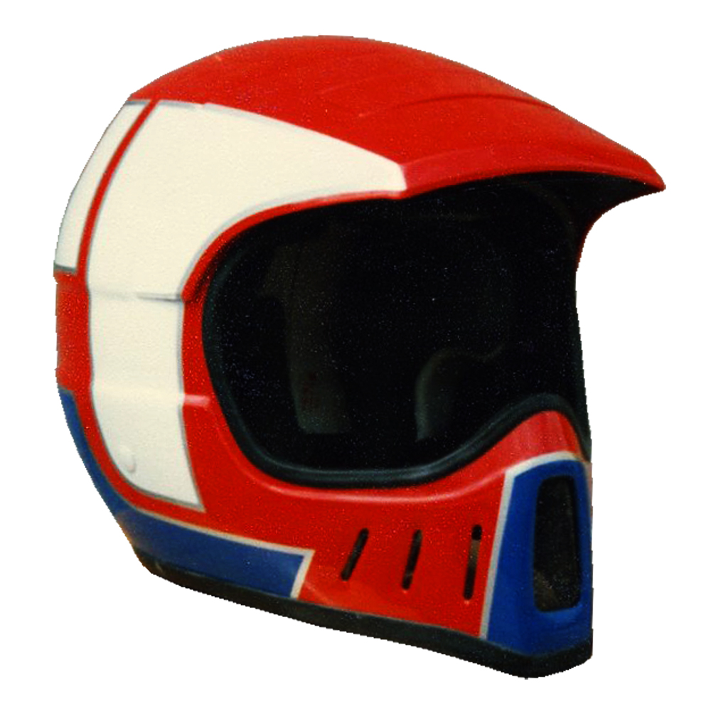 Tout Terrain 1987 Daniel THERIC #1 Casque JT ALS-2, crée et peint par Christian Roux / Rainbow Colors en 1987 pour Daniel Theric, Cadre Rouge Aix en Provence. Précédent Suivant