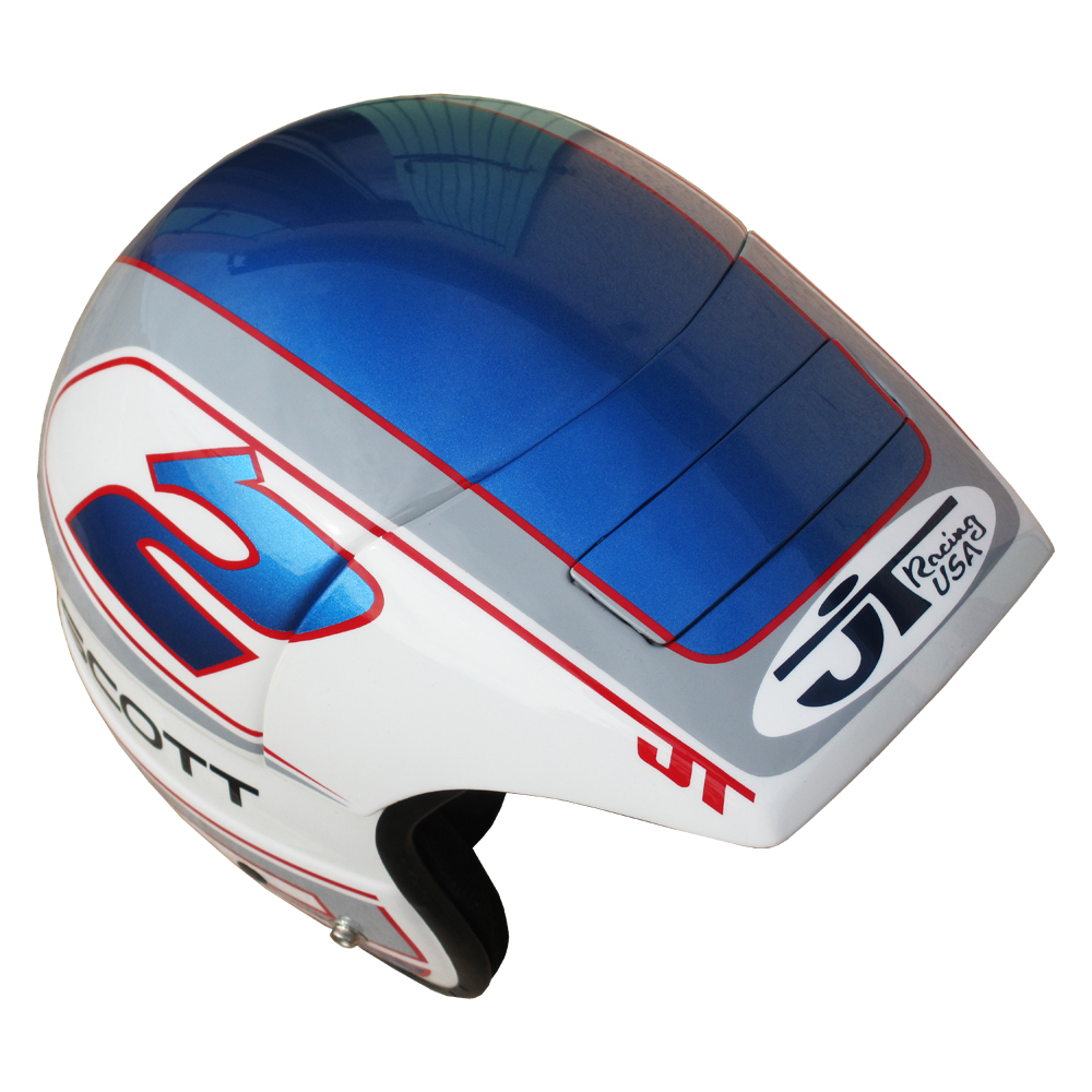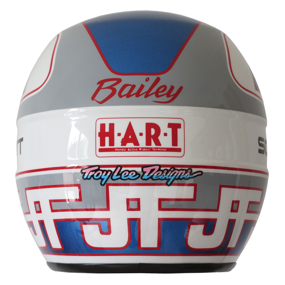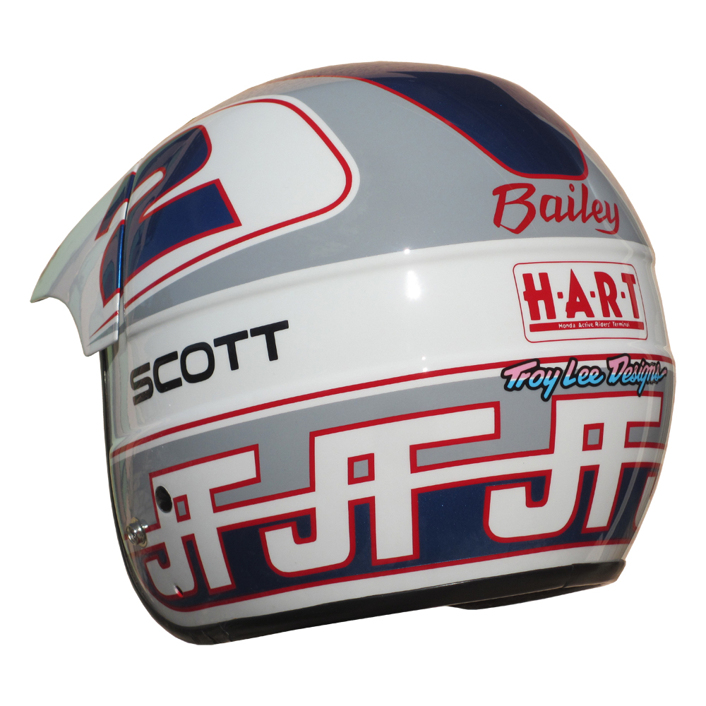 Tout Terrain 2023 David BAILEY Réplica 1988 Casque JT ALS-1, peint par Christian Roux / Rainbow Colors en 2023, réplique du casque de David Bailey, Saison 1988. Précédent Suivant