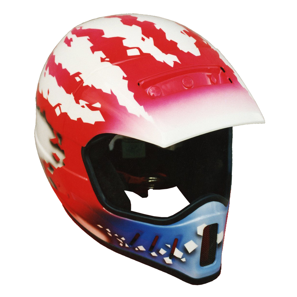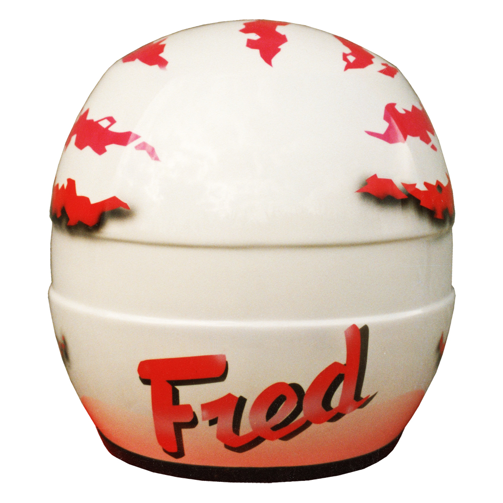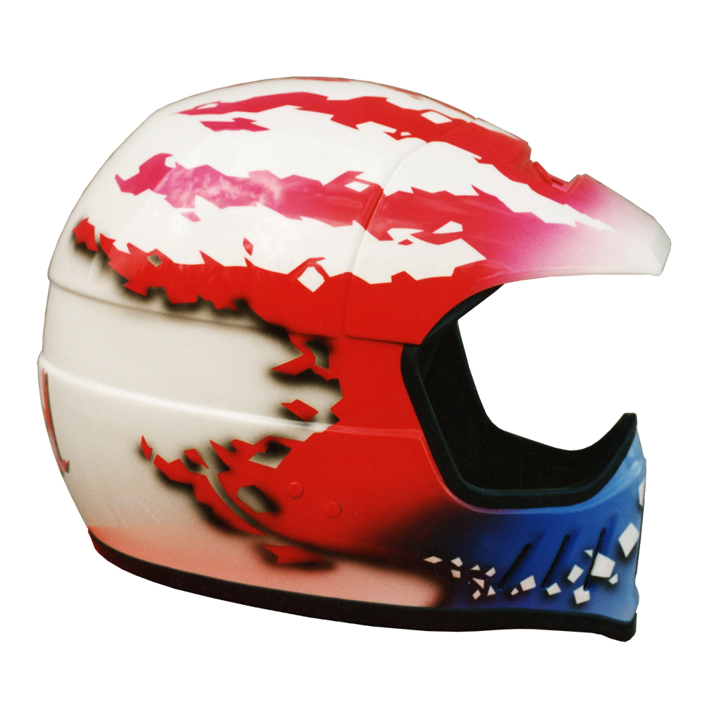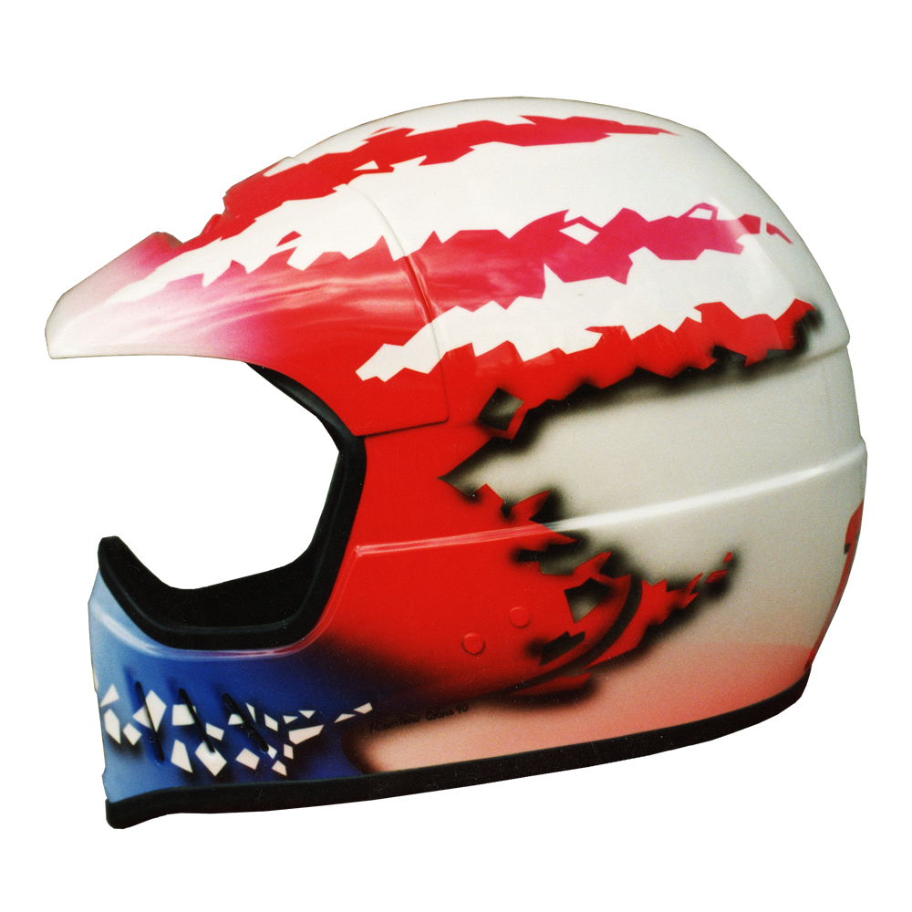 Tout Terrain 1990 Fred Casque JT ALS-2, peint par Christian Roux / Rainbow Colors en 1990 pour Fred. Précédent Suivant