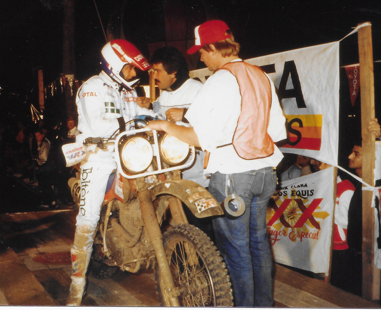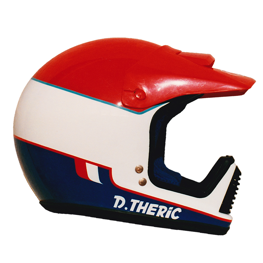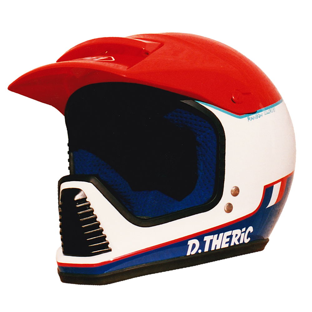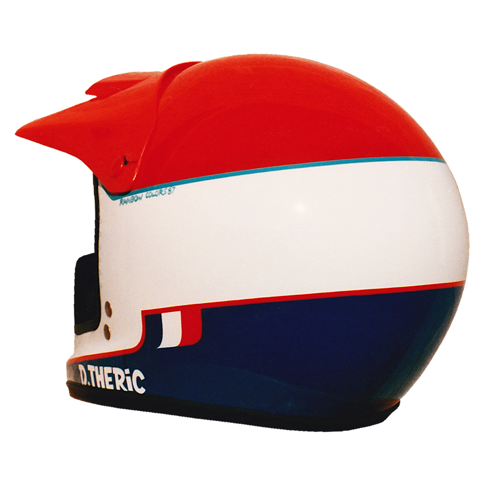 Tout Terrain 1987 Daniel THERIC #3 Casque Shoei VX 3 A, crée et peint par Christian Roux / Rainbow Colors en 1987 pour Daniel Theric, Cadre Rouge Aix en Provence. Précédent Suivant