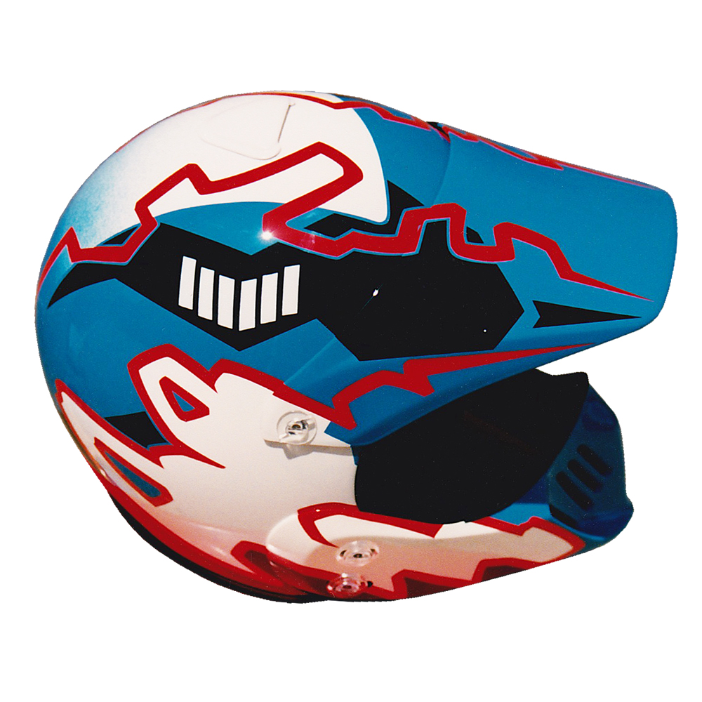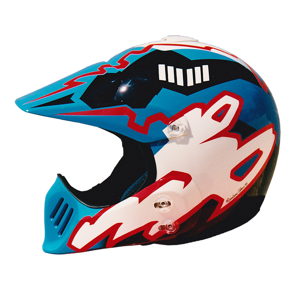 Tout Terrain 1995 Jacques BEGHIN Casque Arai MX, crée et peint par Christian Roux / Rainbow Colors en 1995 pour Jacques Beghin. Précédent Suivant