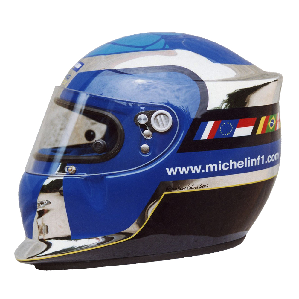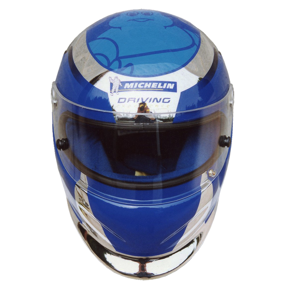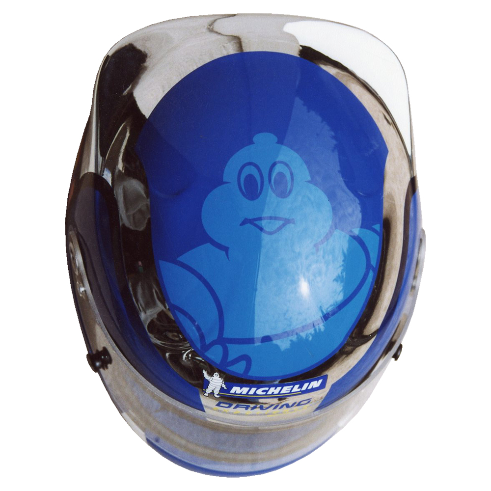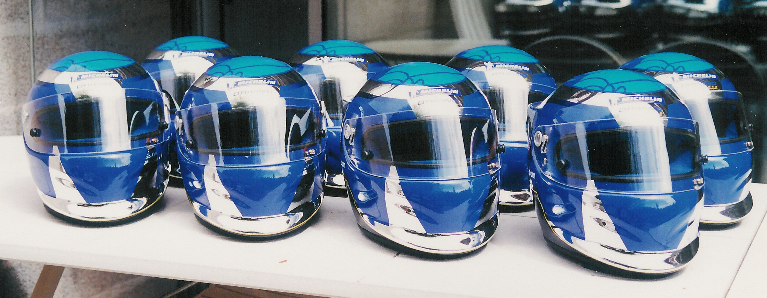 Promotion Publicité 2002 MICHELIN DRIVING EXPÉRIENCE Casques Bieffe Air Concept, crées et peints par Christian Roux / Rainbow Colors en 2002, pour Oreca, gestionnaire du Michelin Driving Expérience. Précédent Suivant