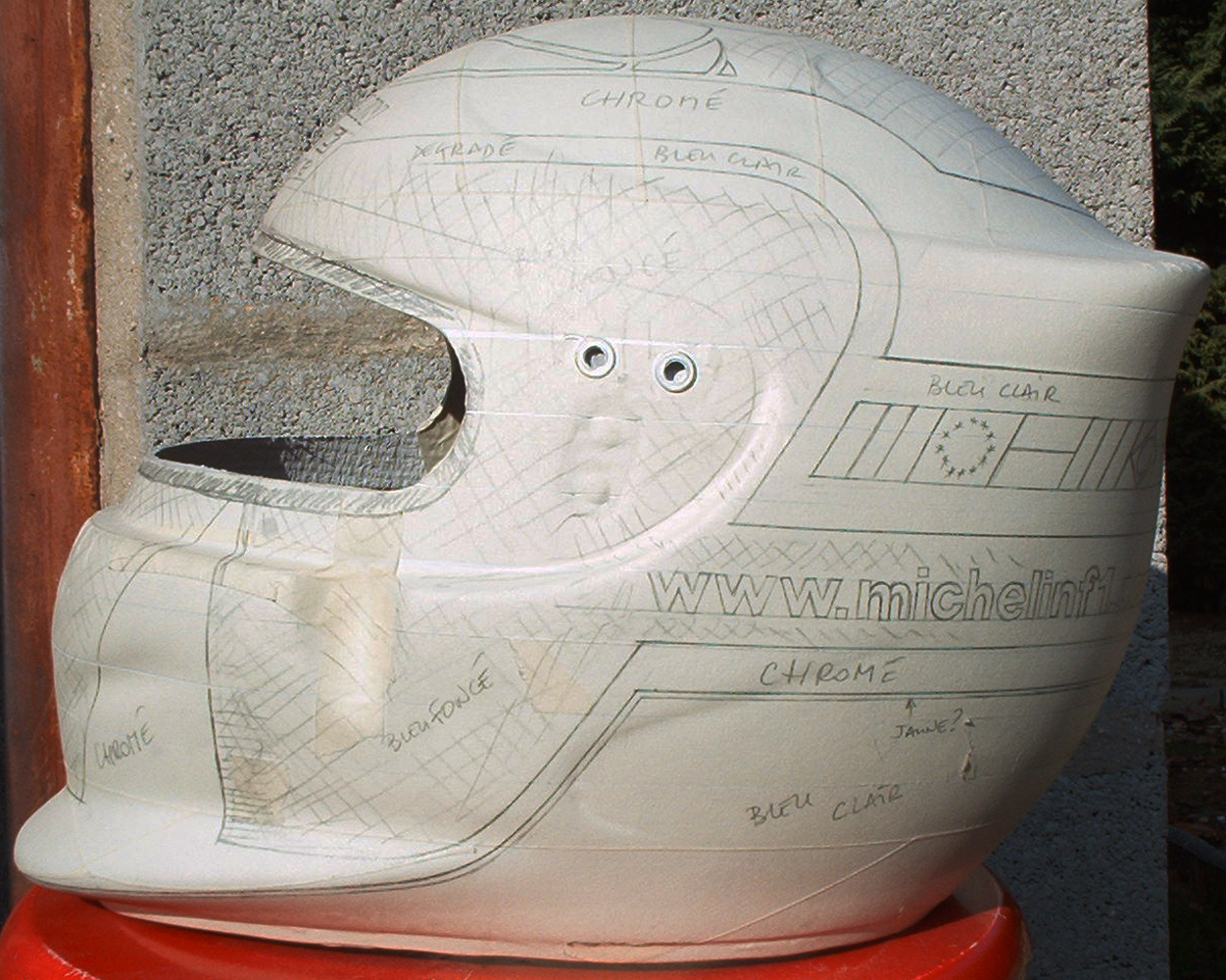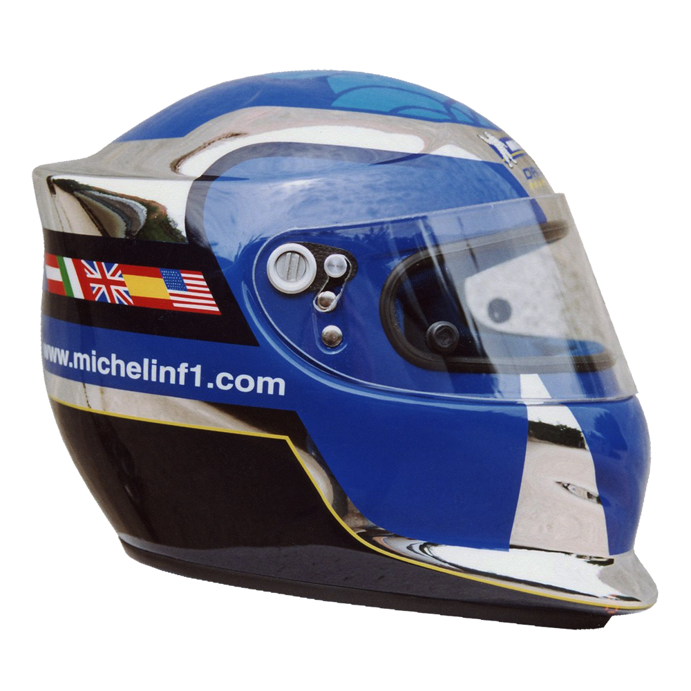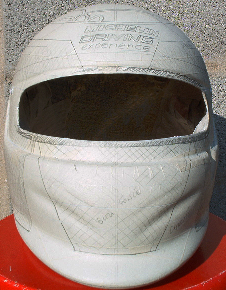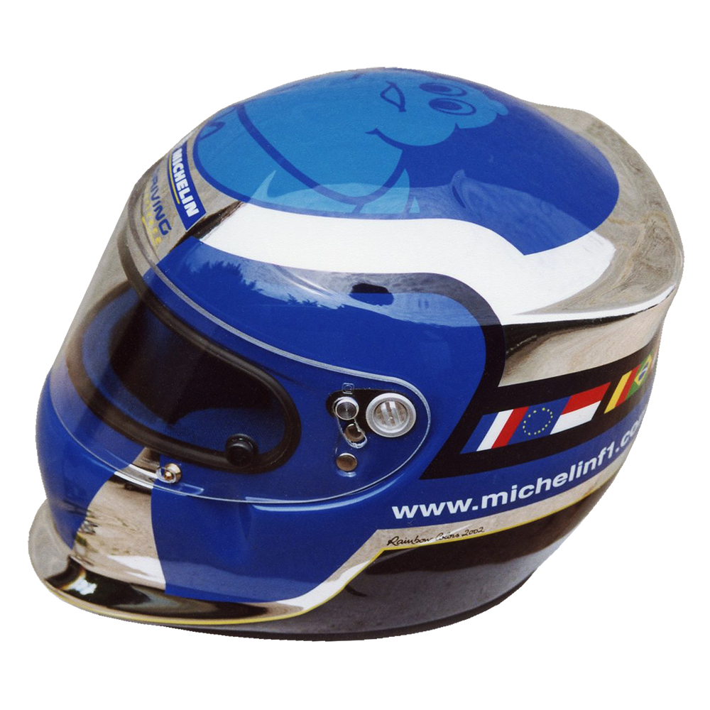 Promotion Publicité 2002 MICHELIN DRIVING EXPÉRIENCE Casques Bieffe Air Concept, crées et peints par Christian Roux / Rainbow Colors en 2002, pour Oreca, gestionnaire du Michelin Driving Expérience. Précédent Suivant