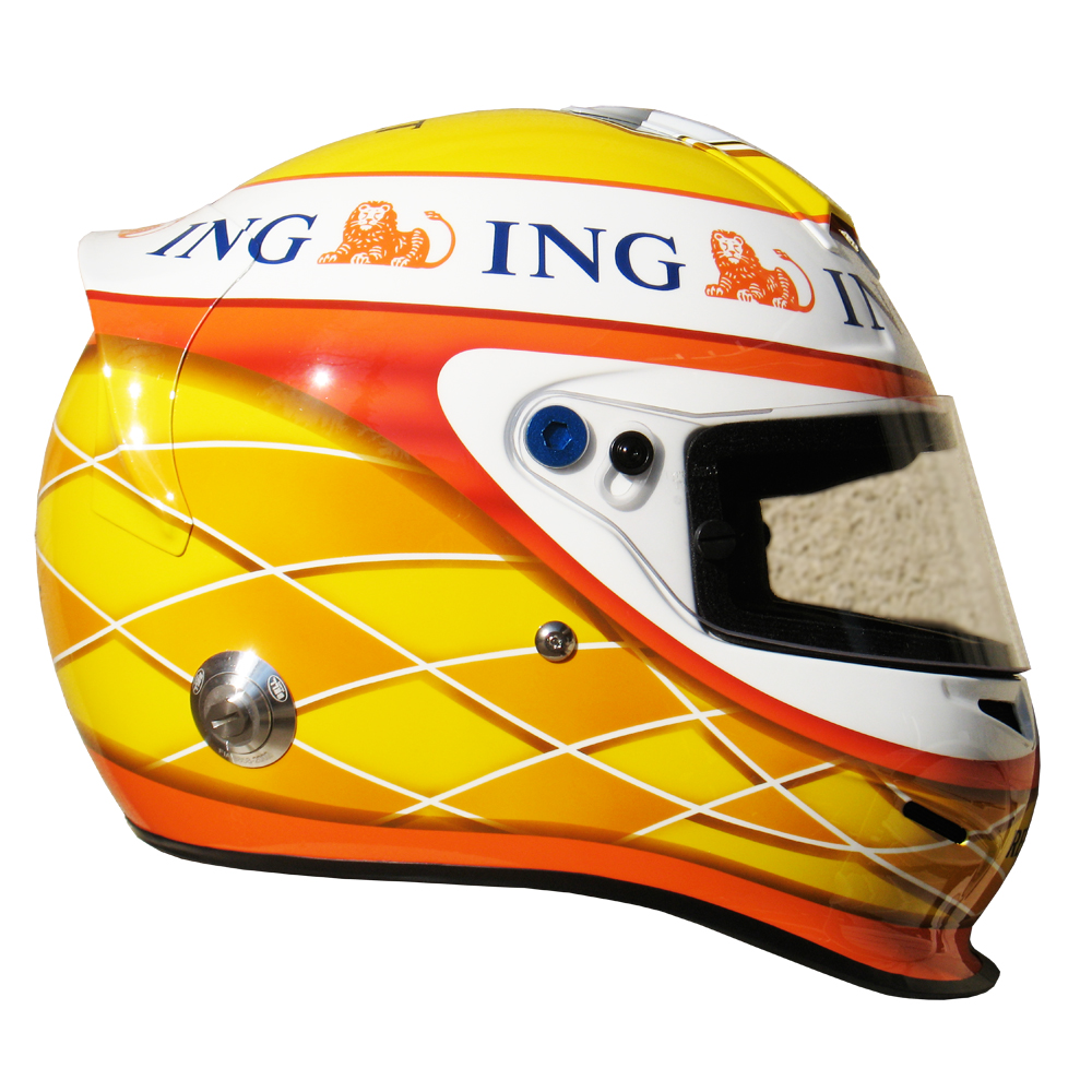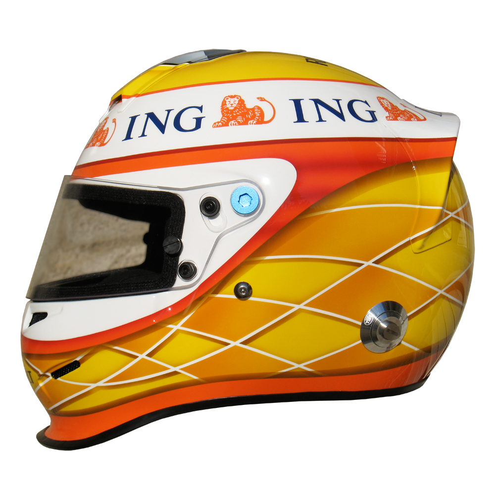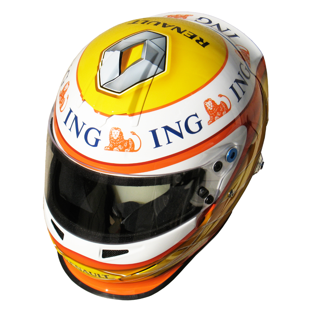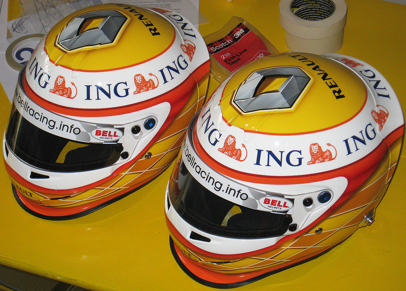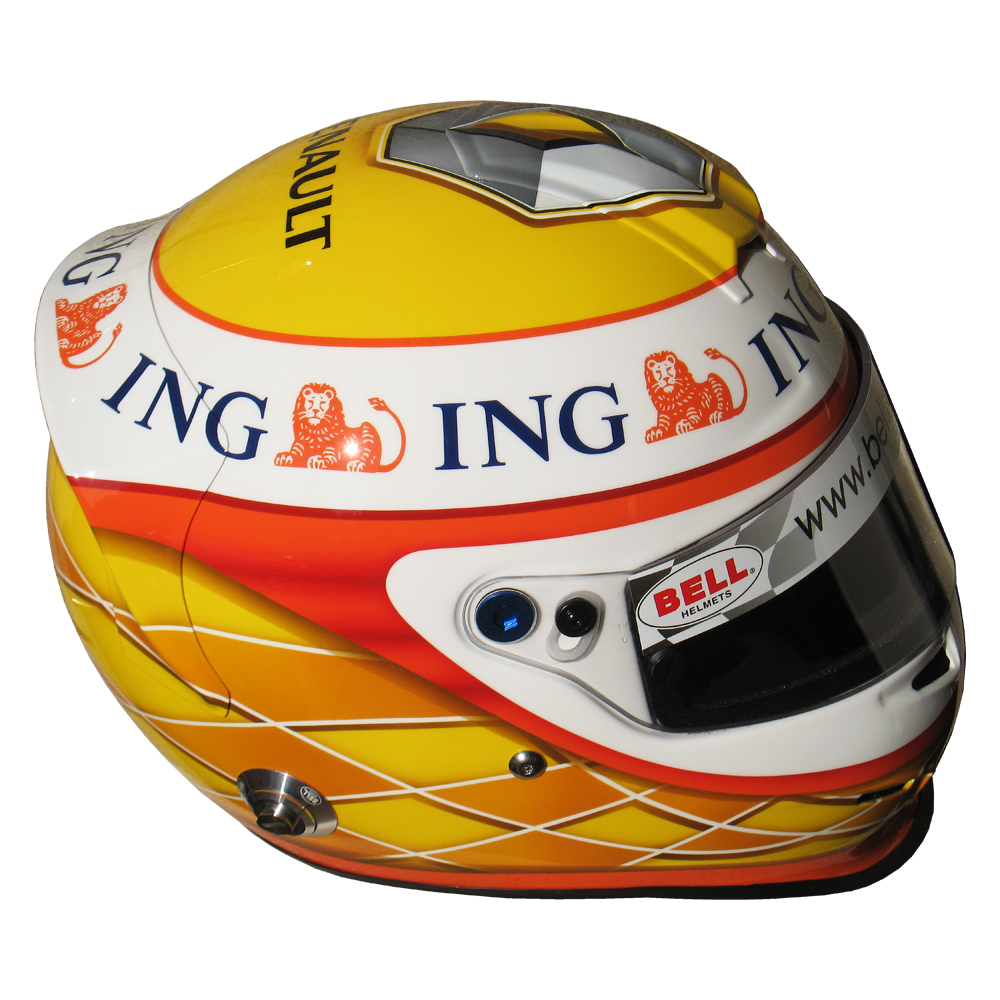 Promotion Publicité 2009 Noir Citron Renault Ing Casque auto Bell RS3, peint par Christian Roux / Rainbow Colors en 2009 pour l'agence de communication Noir Citron pour un spot publicitaire Renault ING. Précédent Suivant