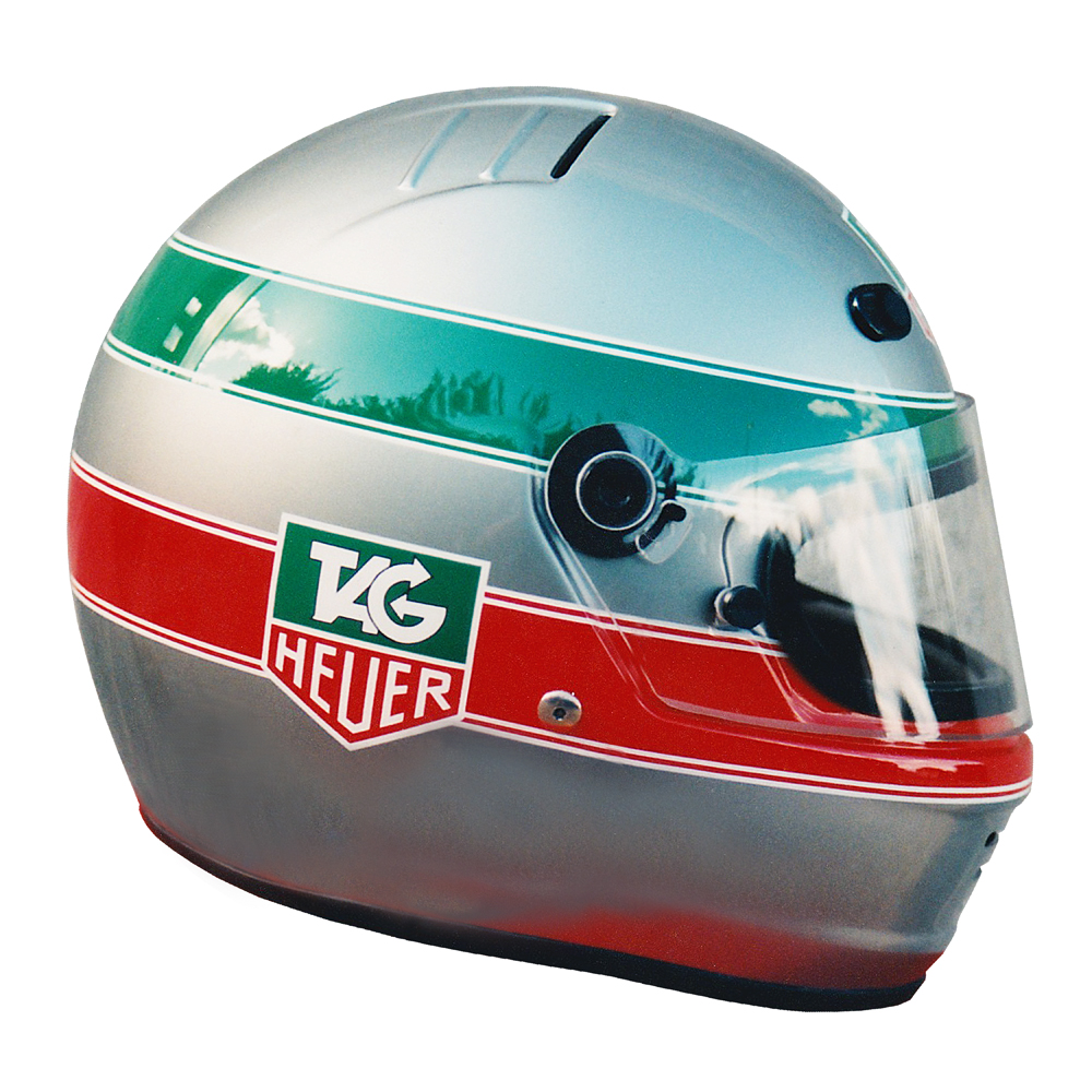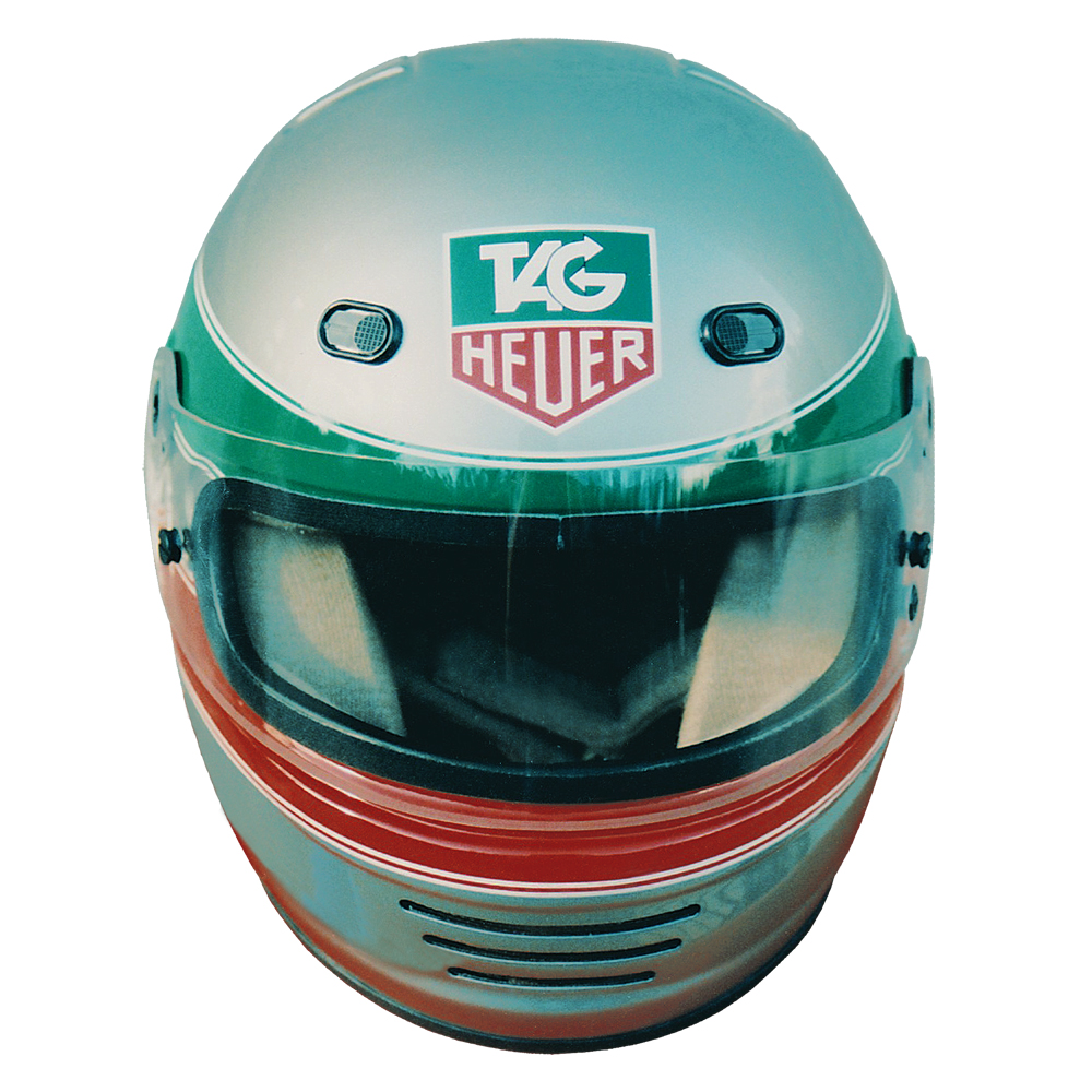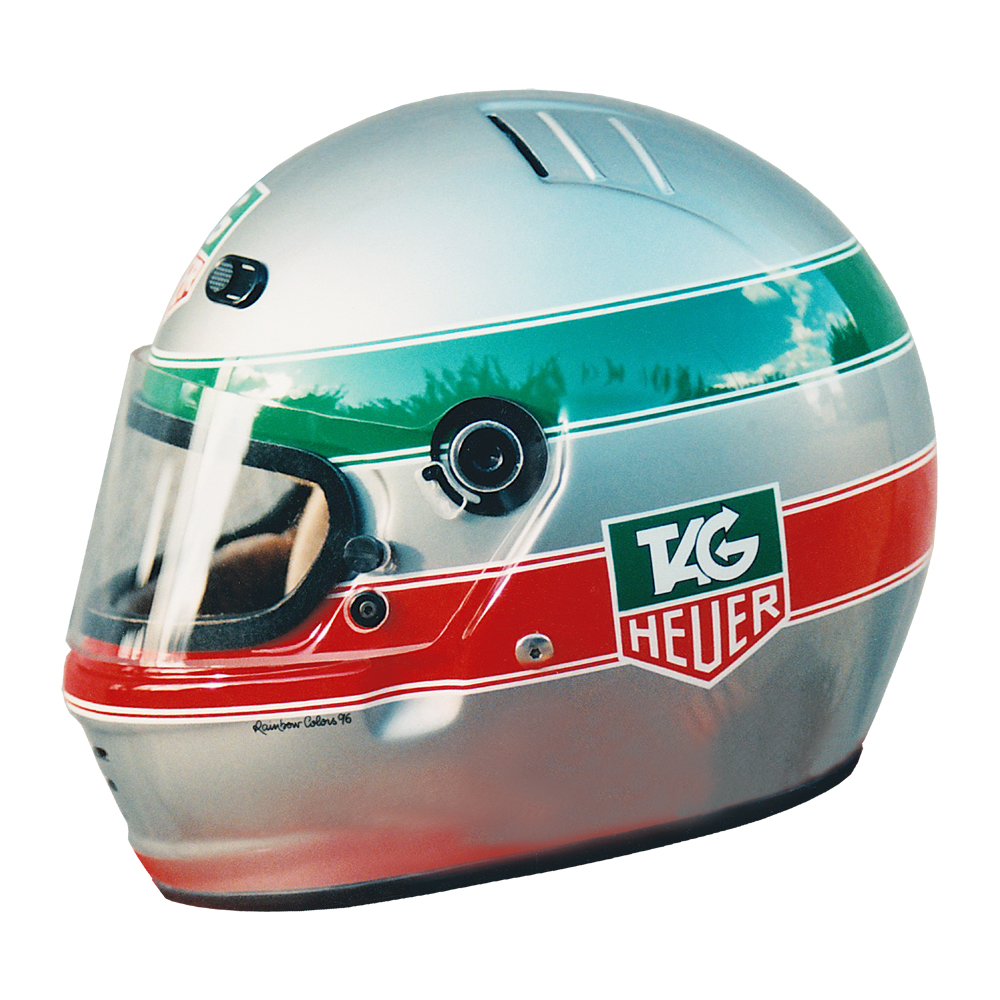 Promotion Publicité 1996 TAG HEUER Promotion Casque auto Bell Sport II, peint par Christian Roux / Rainbow Colors en 1996, commande de M. Dauchy pour la promotion de la marque Tag Heuer. Précédent Suivant