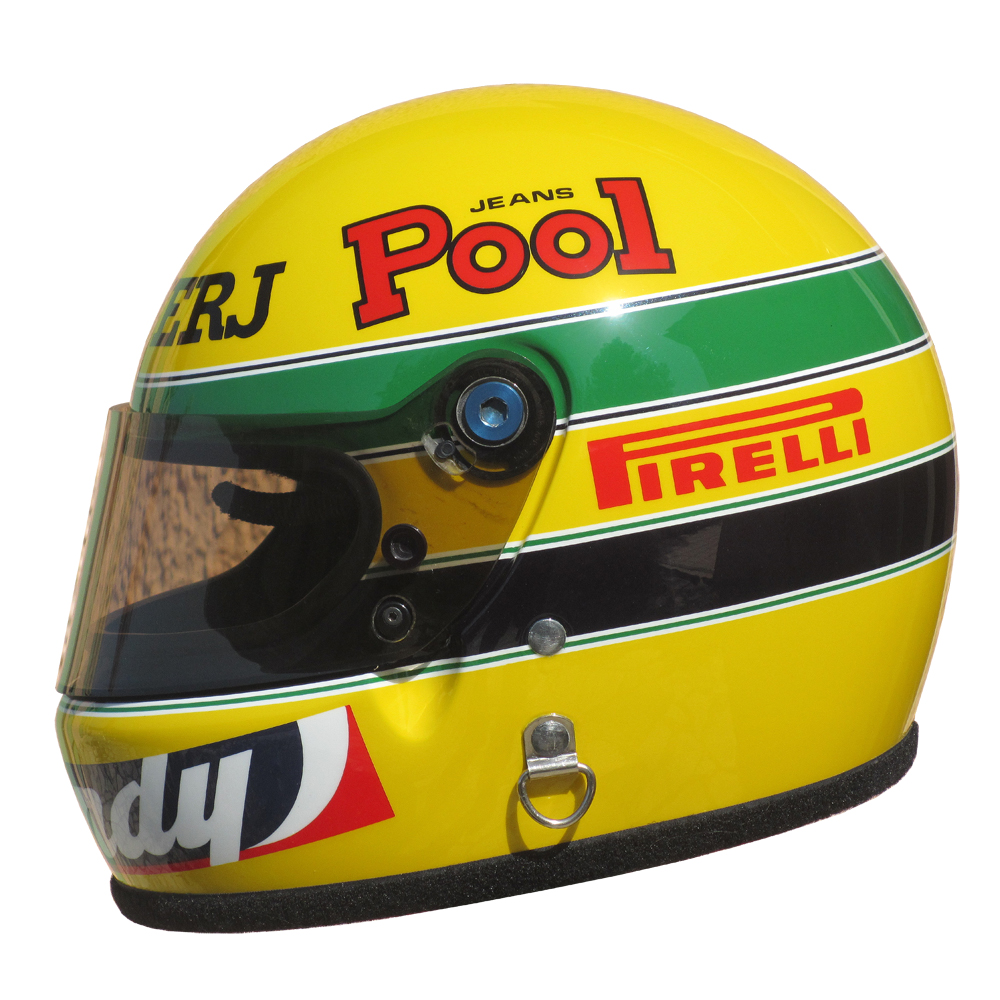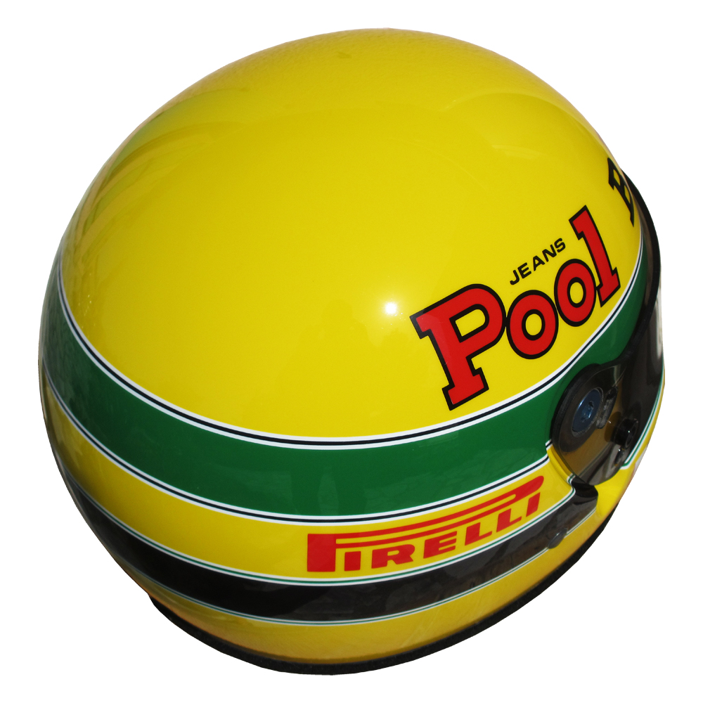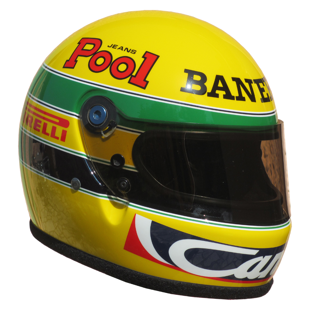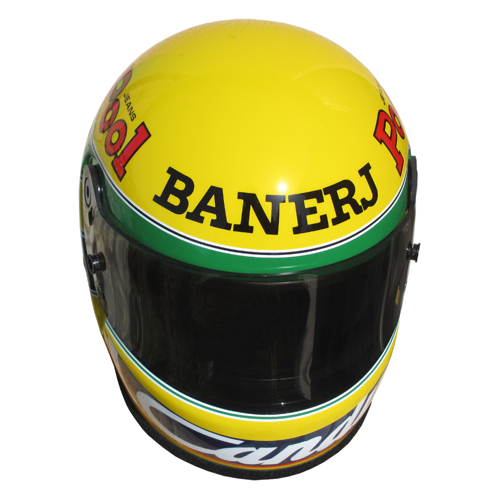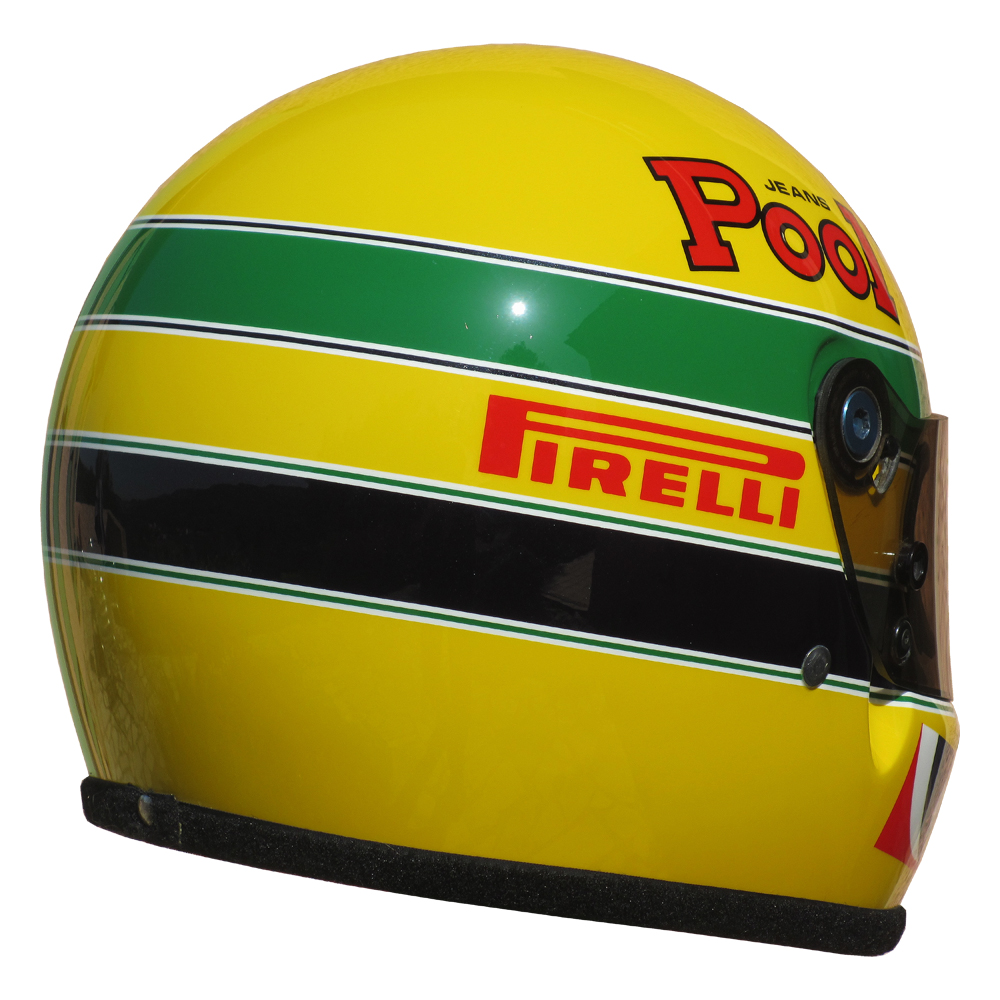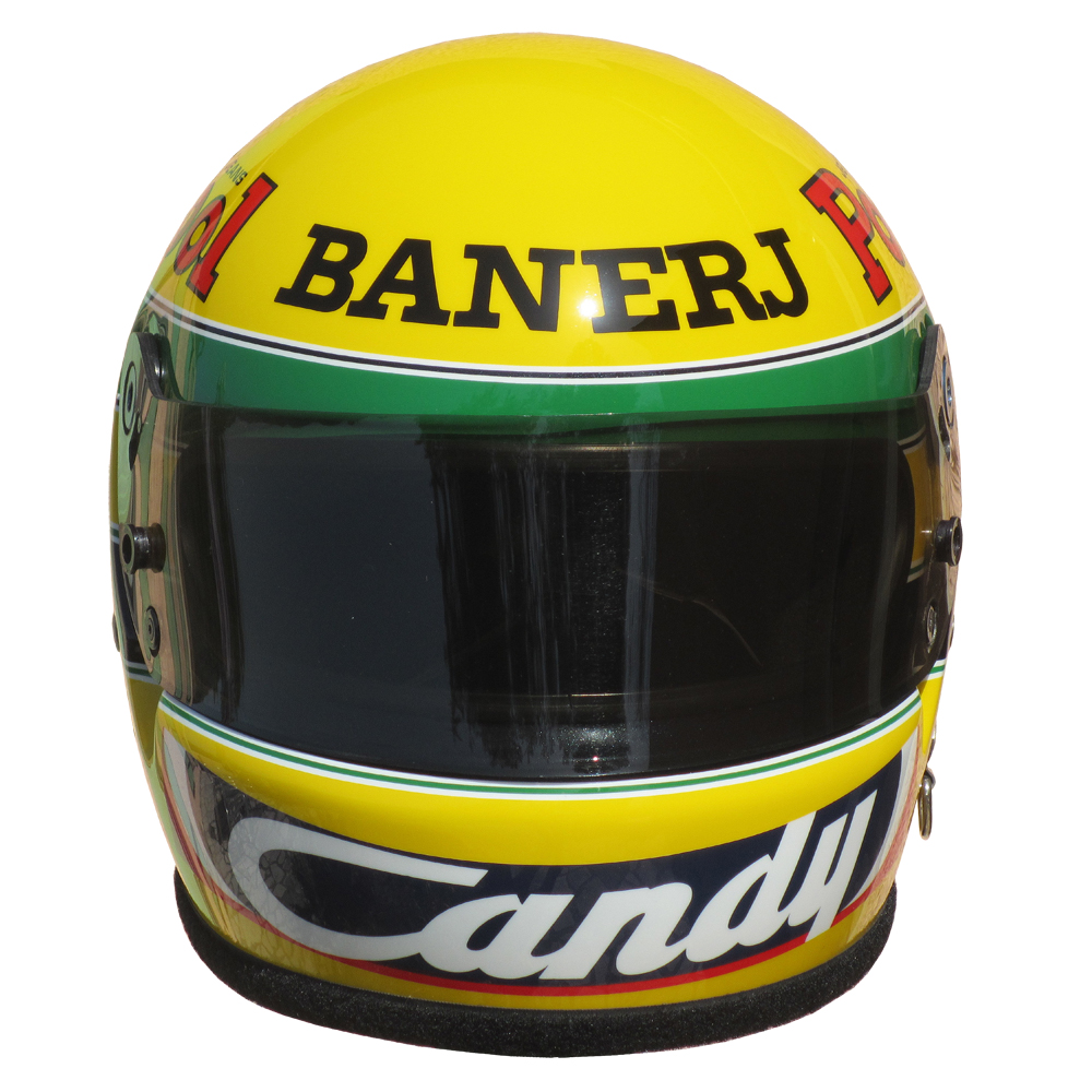 Promotion Publicité 1984 Ayrton SENNA TOLEMAN Casque Bell XFM-1, peint par Christian Roux / Rainbow Colors, réplique Ayrton Senna 1984 écurie Toleman, objet publicitaire. Précédent