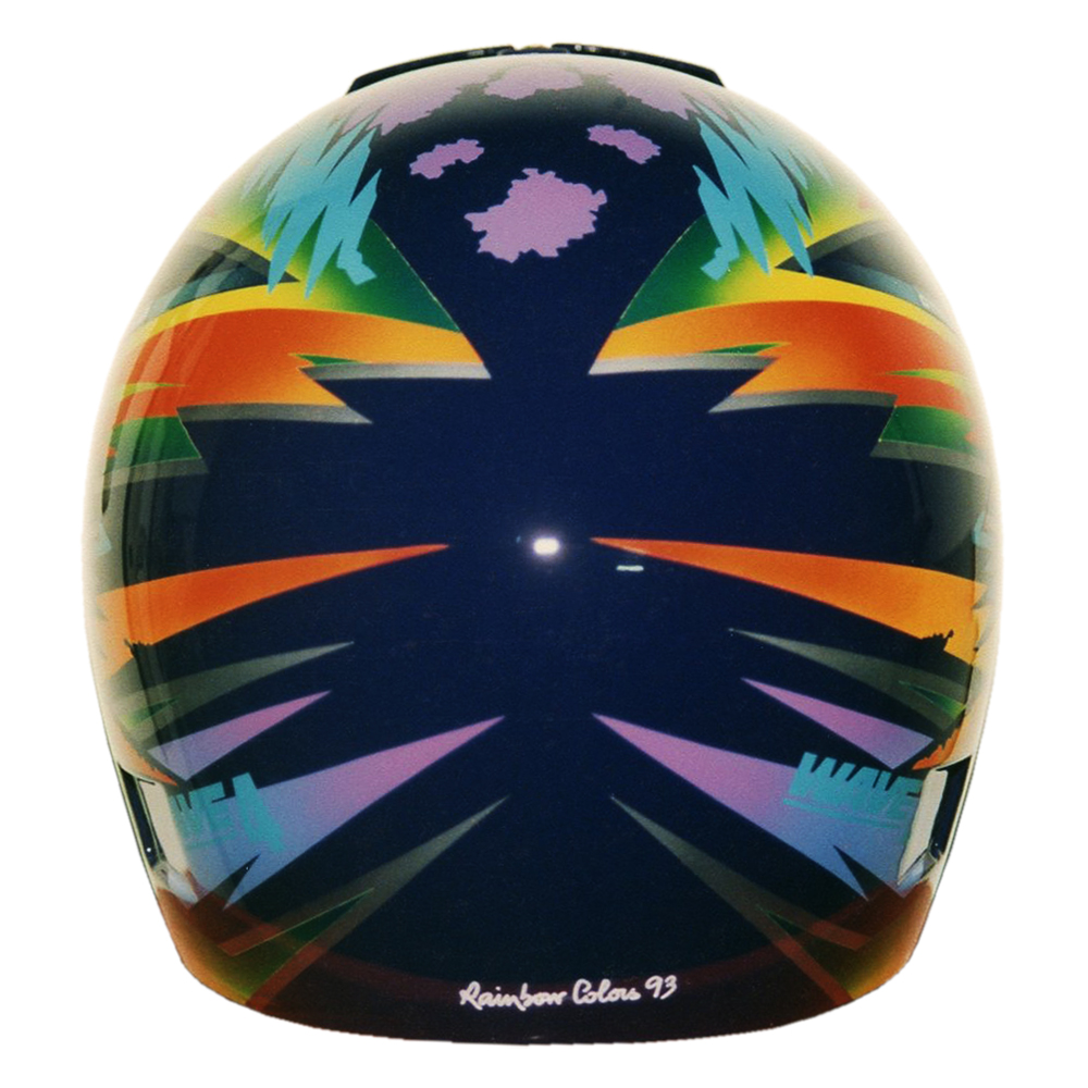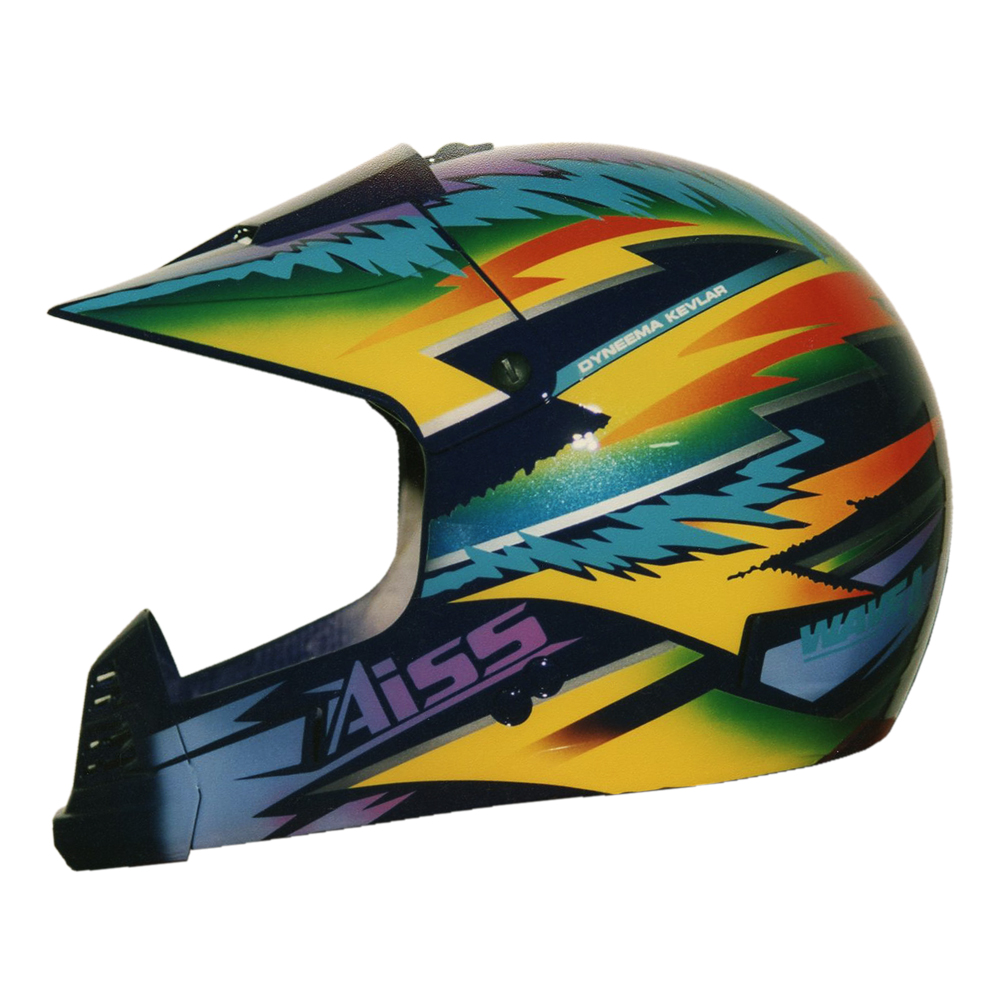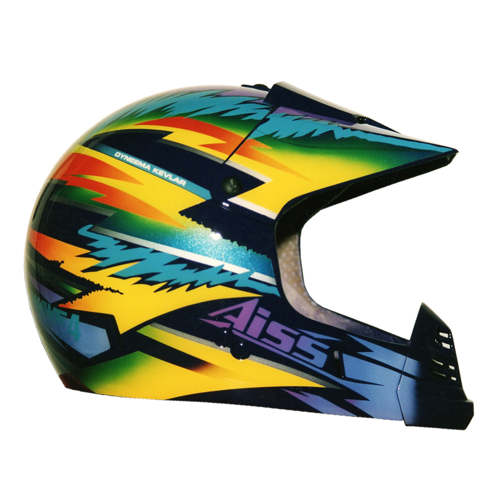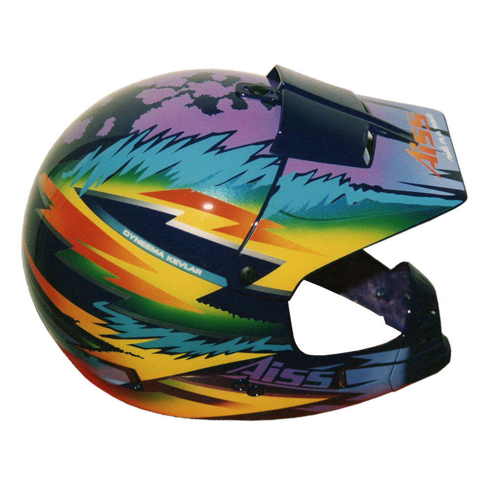 Prototype Série 1993 AISS Cross Bleu Casque Aiss Cross, peint par Christian Roux / Rainbow Colors en 1993 pour la marque Aiss. Précédent Suivant