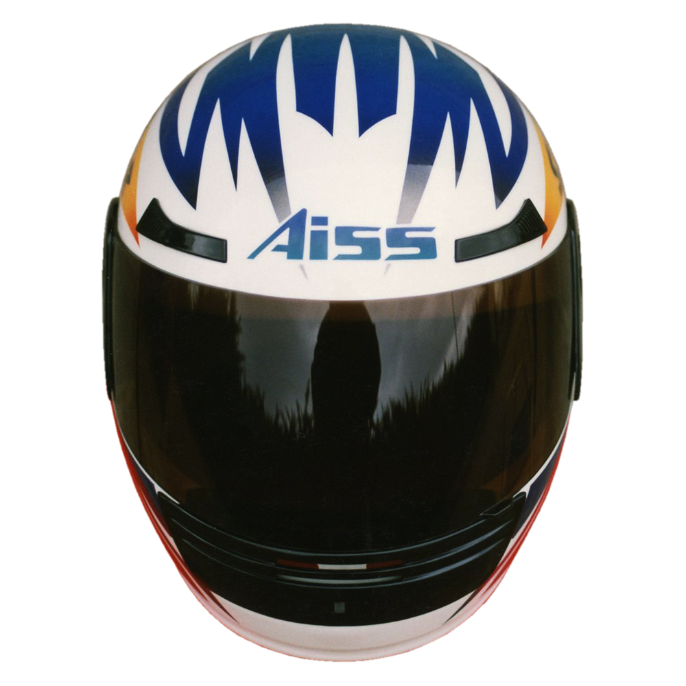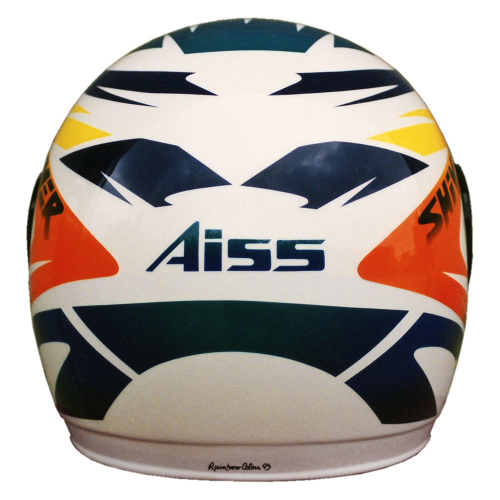 Prototype Série 1993 AISS Shiver Blanc Casque Aiss, peint par Christian Roux / Rainbow Colors en 1993 pour la marque Aiss. Précédent Suivant