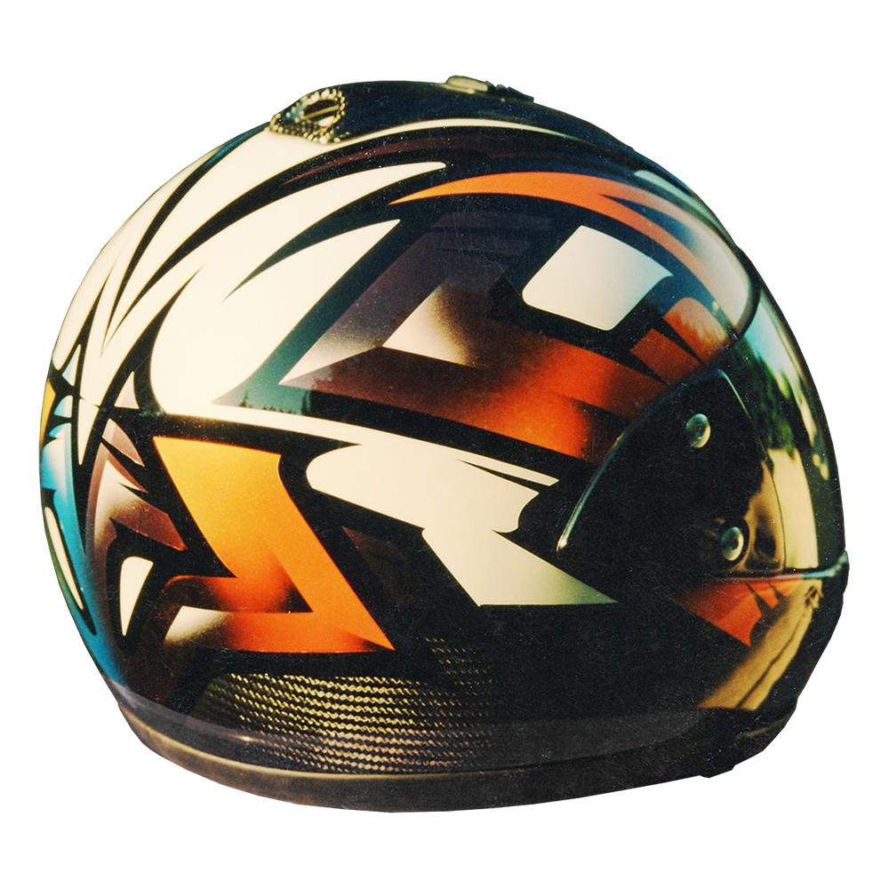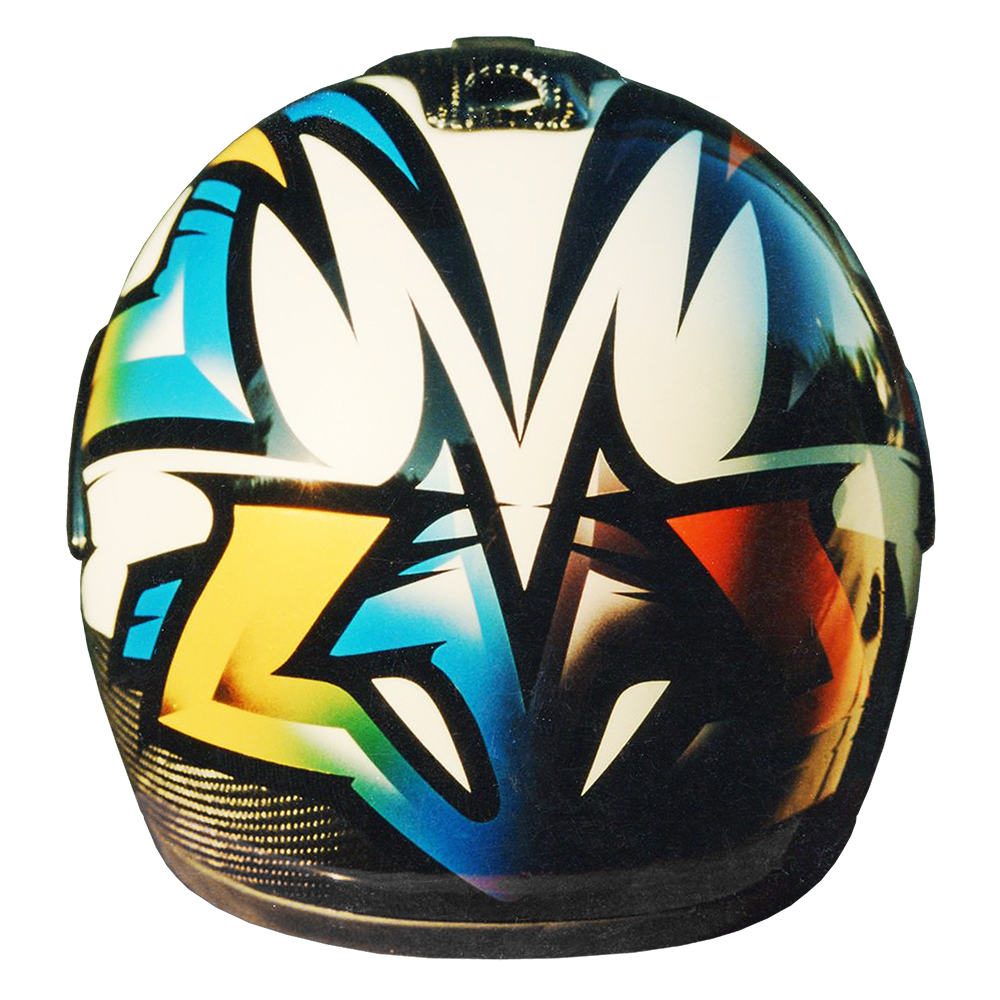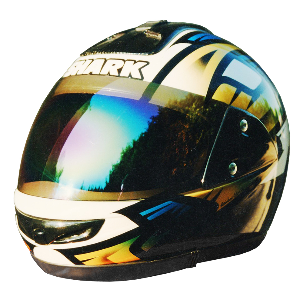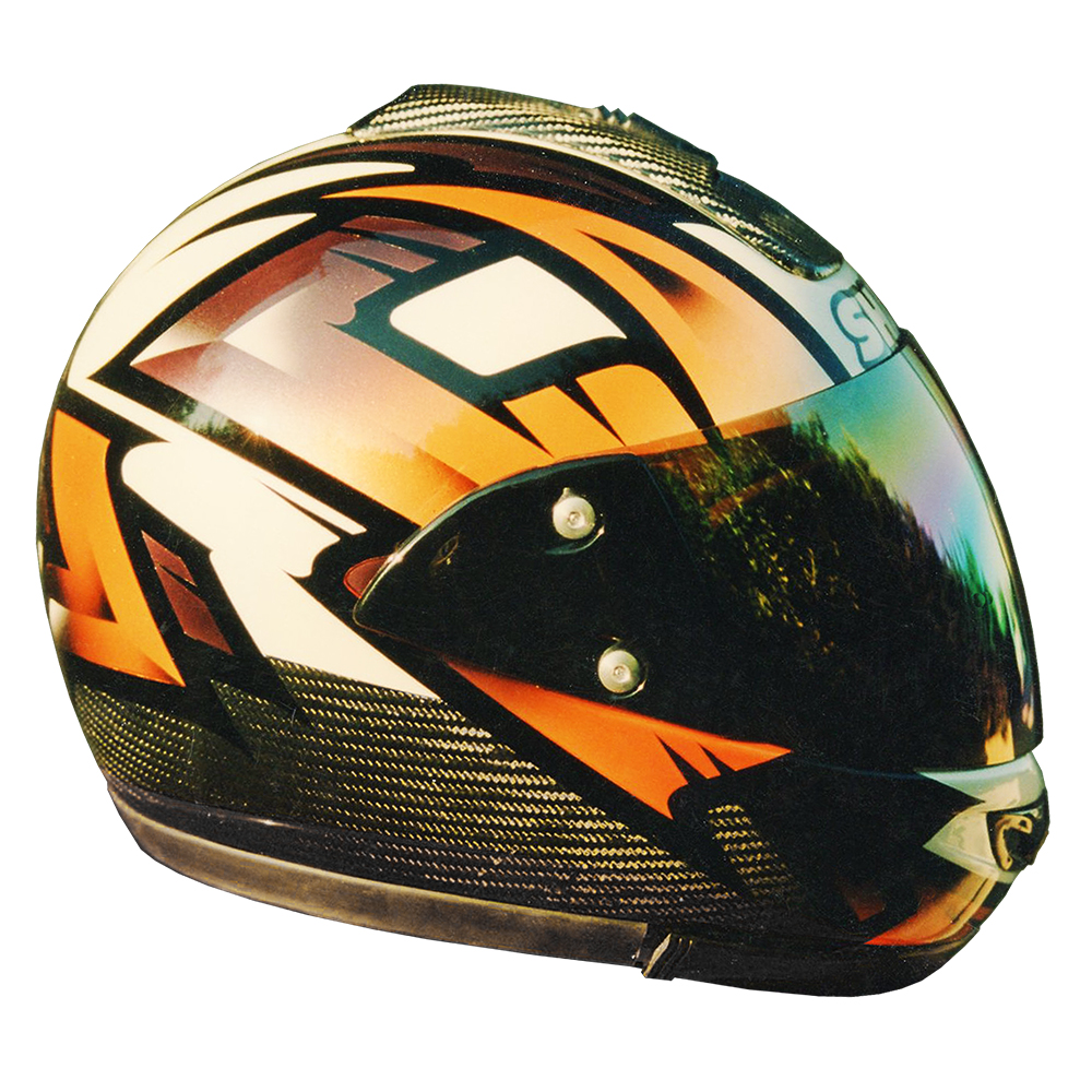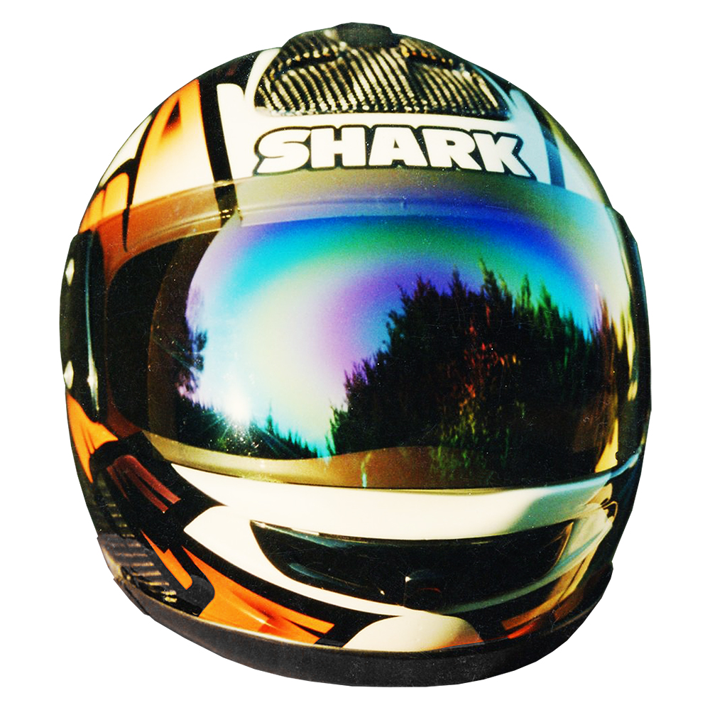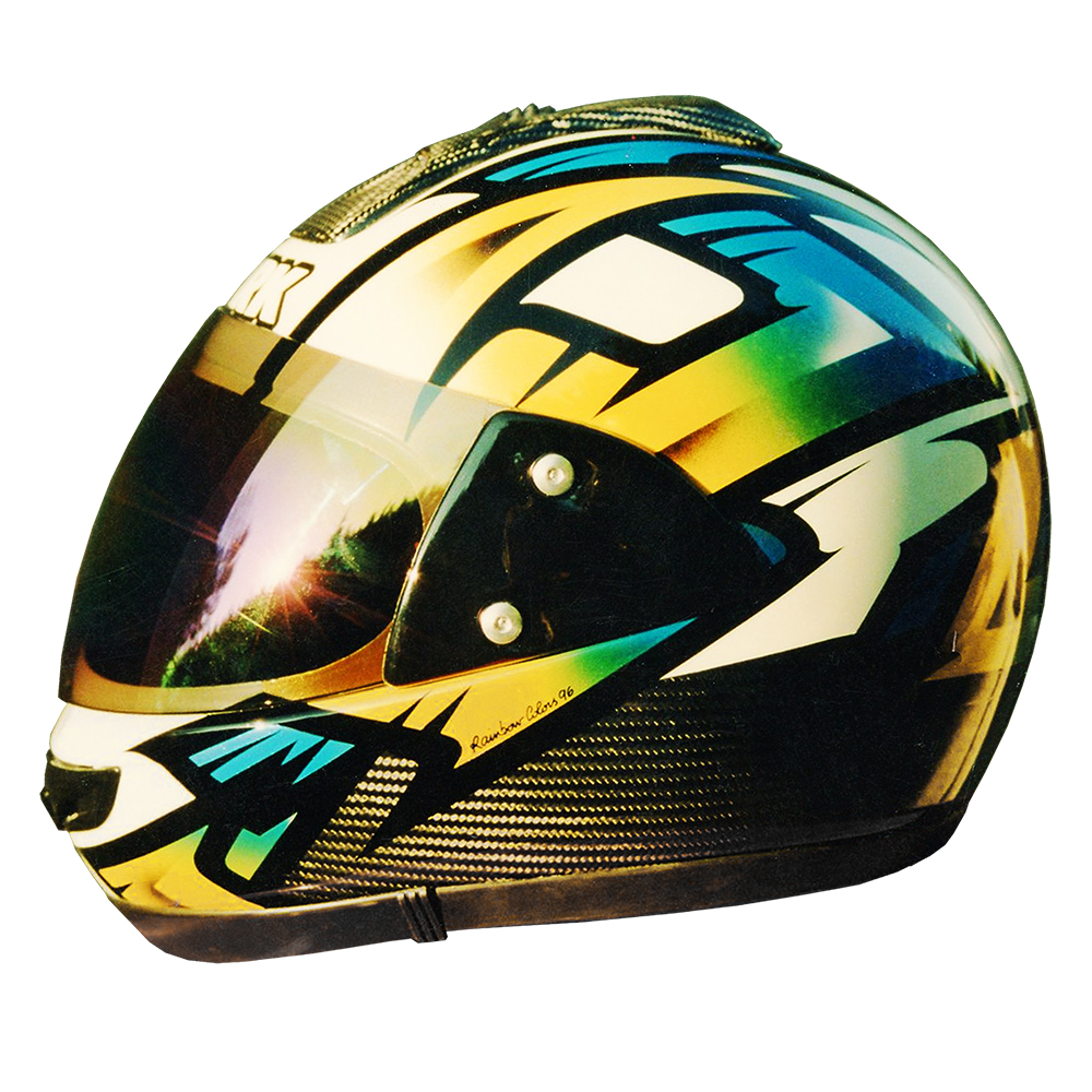 Prototype Série 1996 Shark Ultra #1 Casque Shark XRC Carbon, crée et peint par Christian Roux / Rainbow Colors en 1996 pour la marque Shark. Précédent Suivant